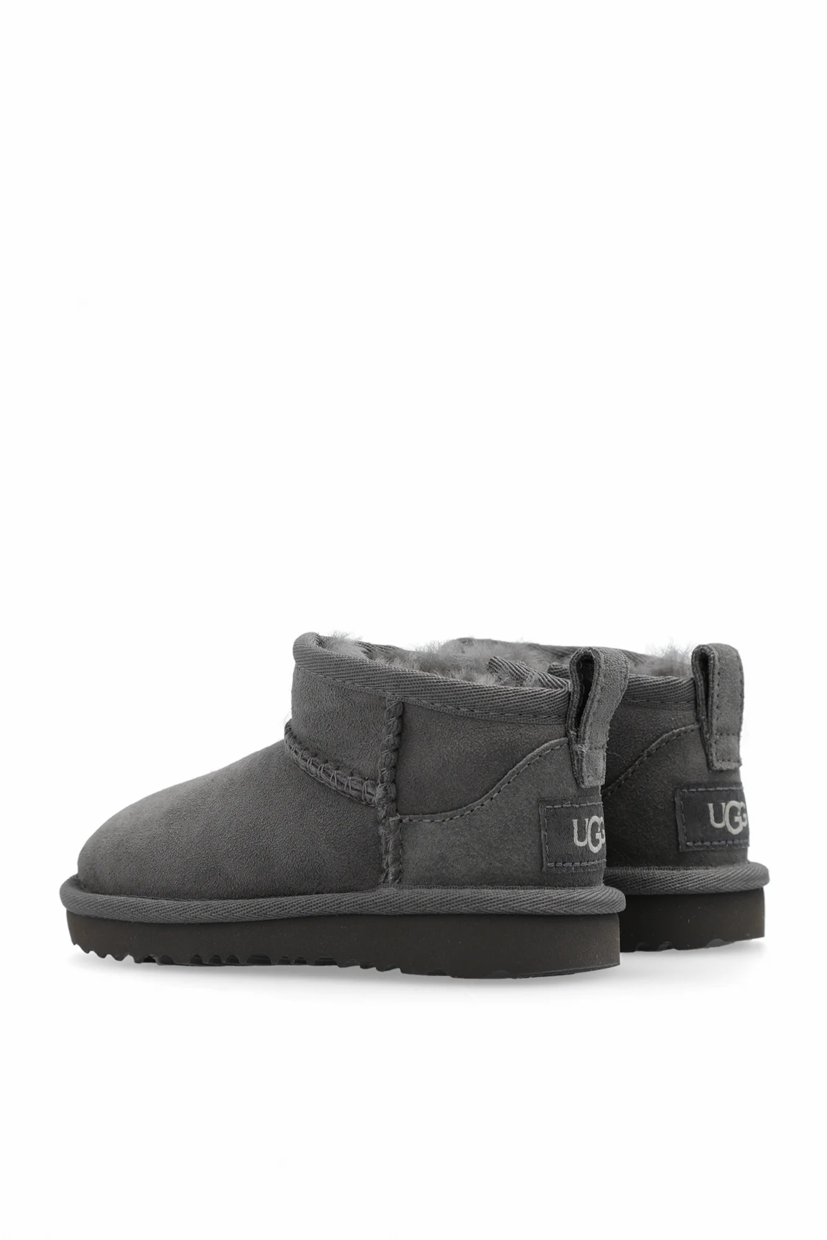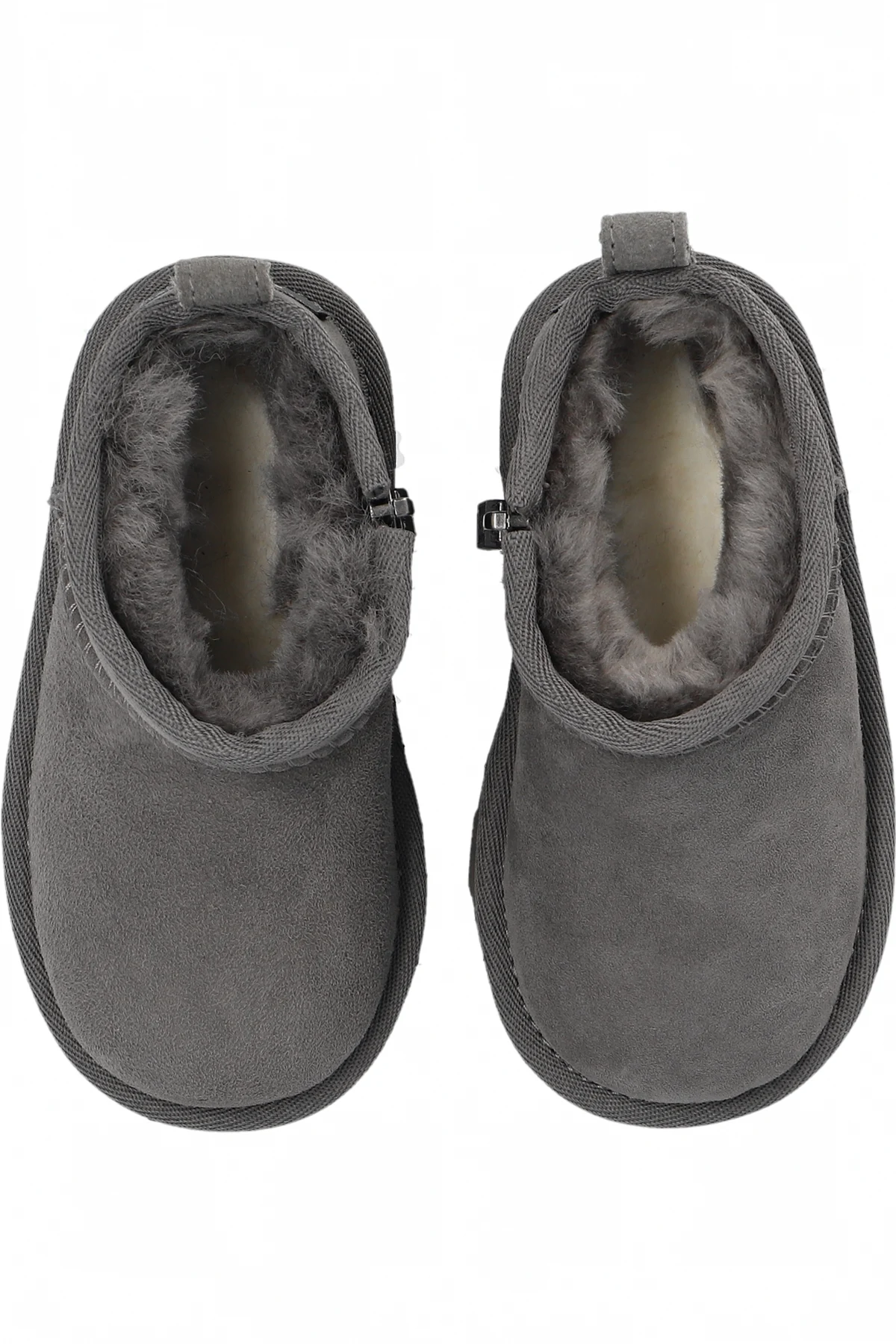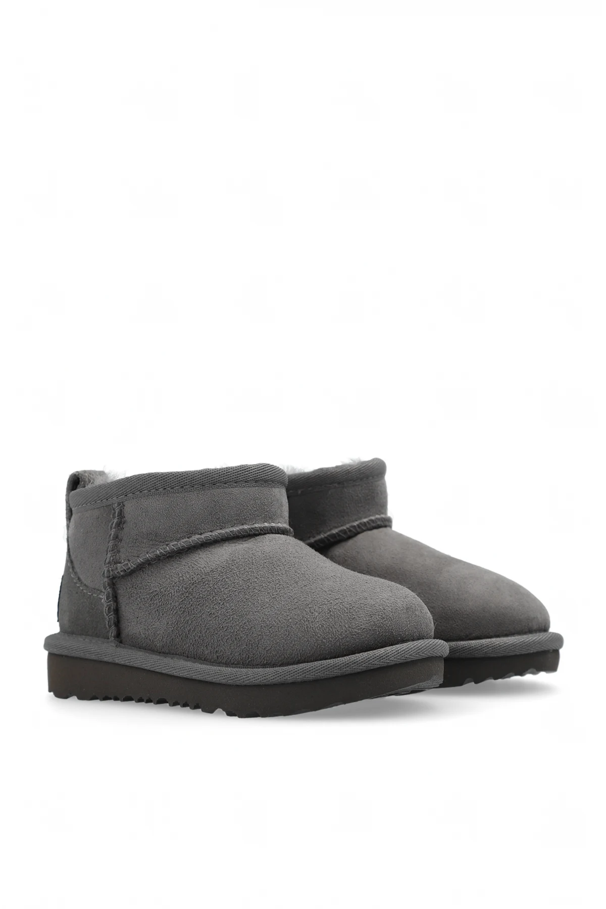 Grey ‘T Classic Ultra Mini’ snow boots from UGG Kids. Crafted from suede, this pair features a zip fastening, UGGplush™ lining made from wool and recycled materials, logo patch at the back and a grey EVA sole.