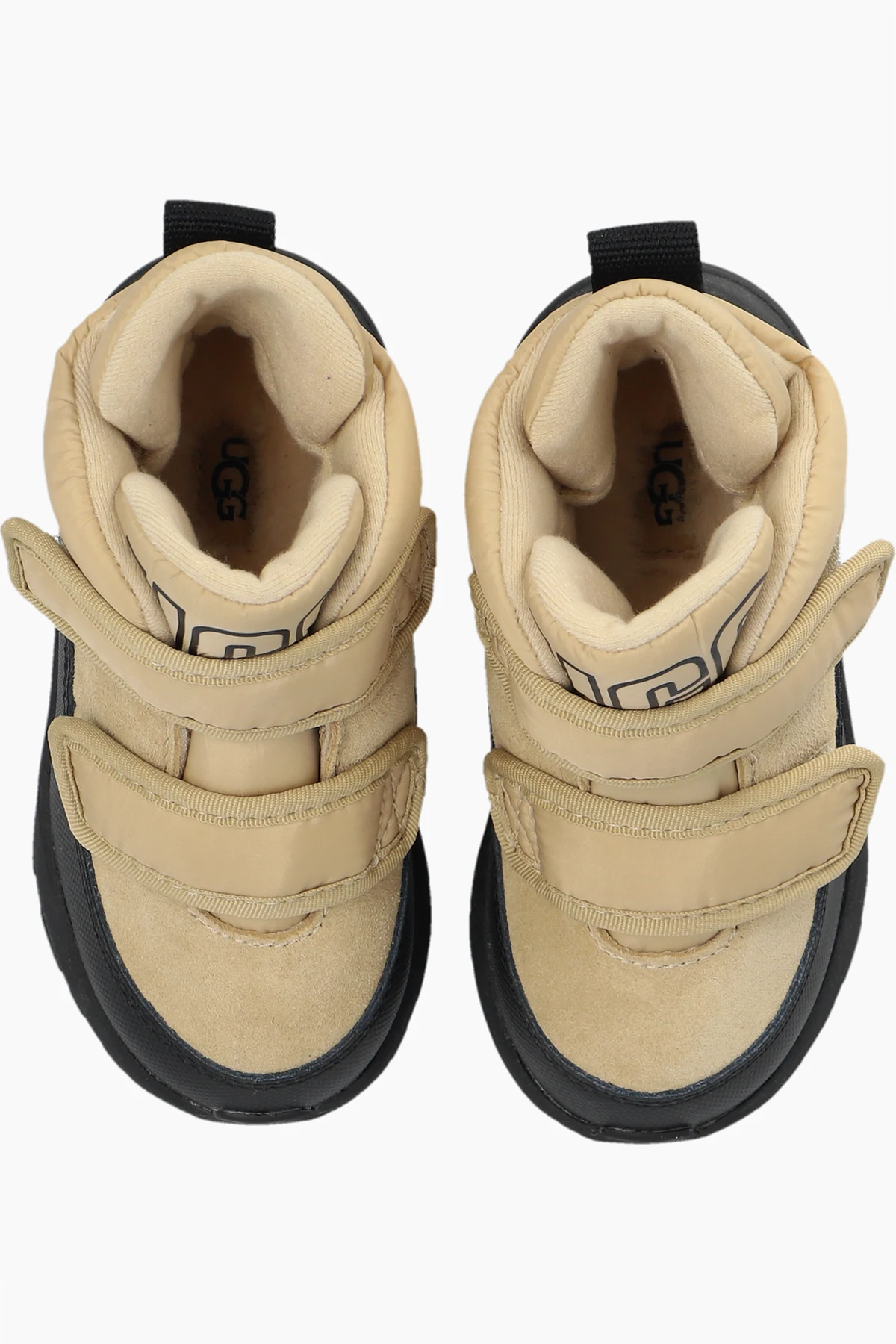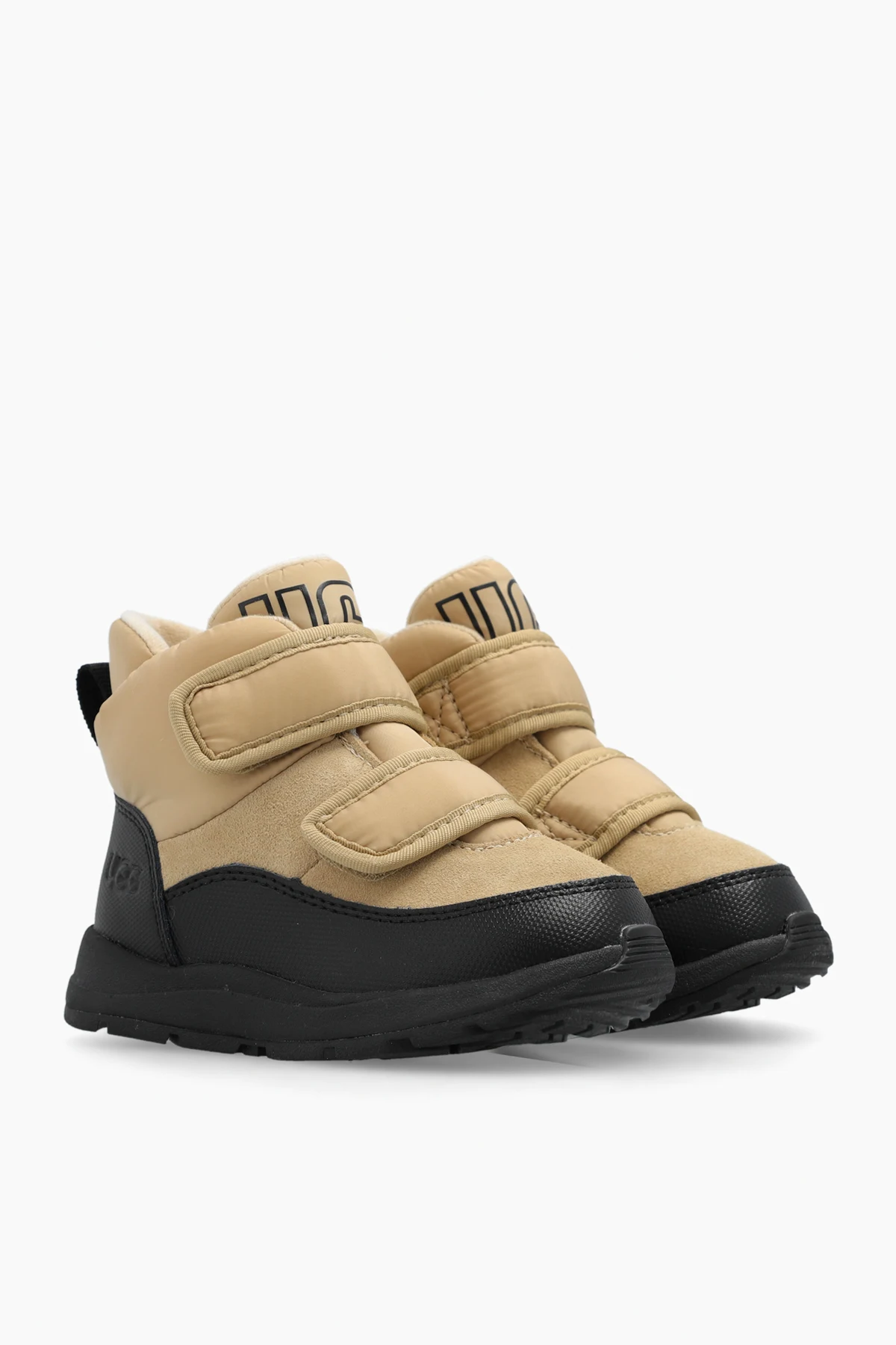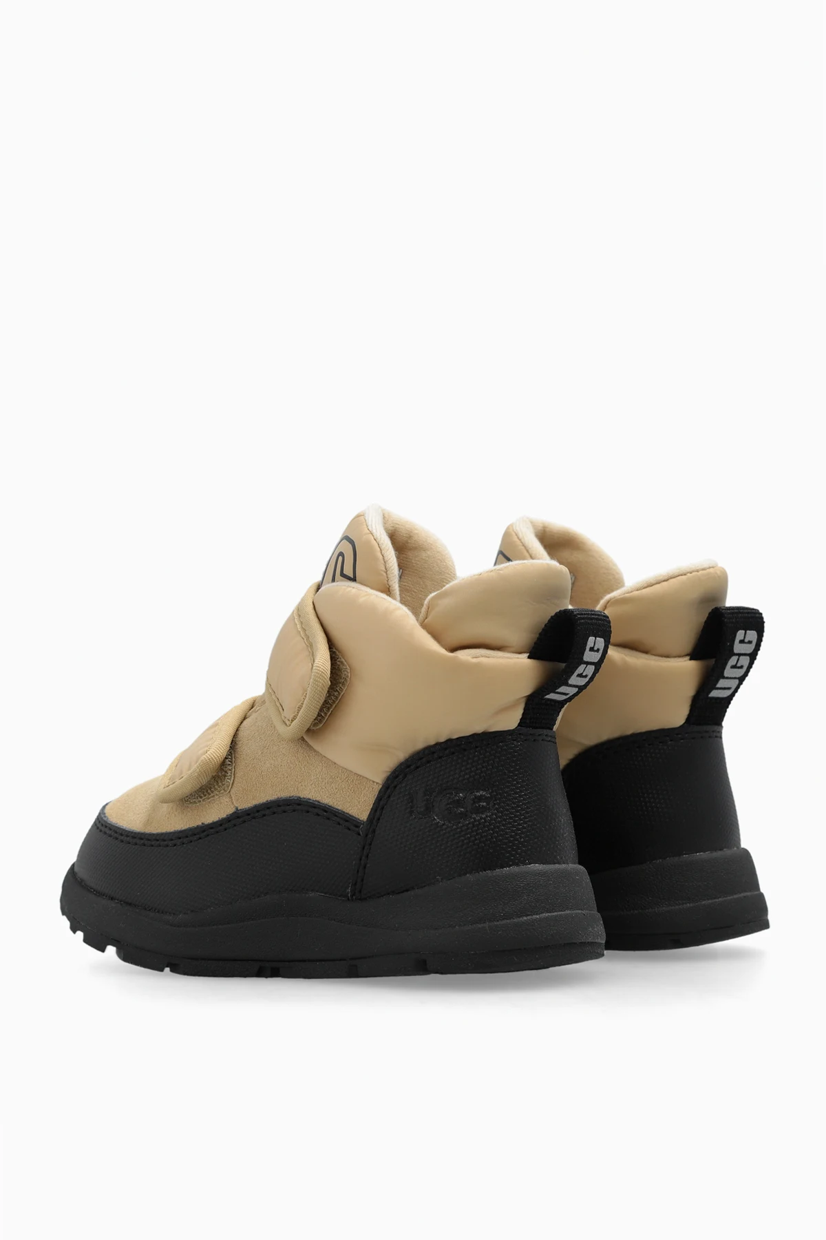 Beige and black ‘T Yose Puffer’ snow boots from UGG Kids. Made of waterproof leather with seam-sealed construction, this model sits on a black rubber sole and features 3M Thinsulate™ insulation, velcro closures, a sheep leather lining and a heel counter with a logo. Cold-weather rated to -20C.