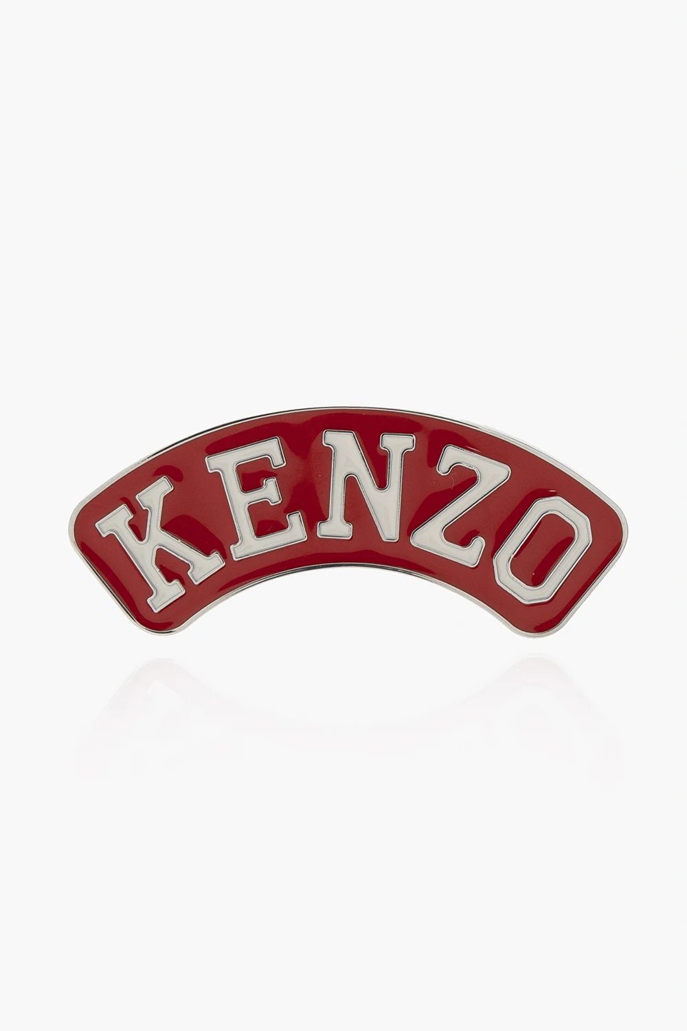 3-pack of metal pins from Kenzo. Two pins are decorated with a red, white and navy logo, one pin decorated with an elephant head detail.