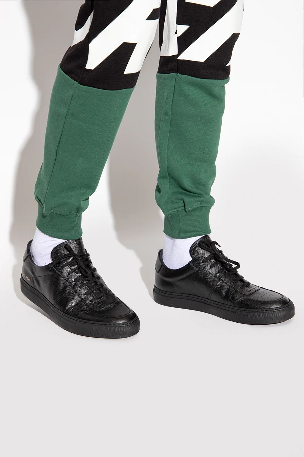 Black ‘Bball Low Bumpy’ sneakers from Common Projects. Crafted from leather, this lace-up pair features a gold-tone print and black rubber sole. Comes with swappable shoelaces.