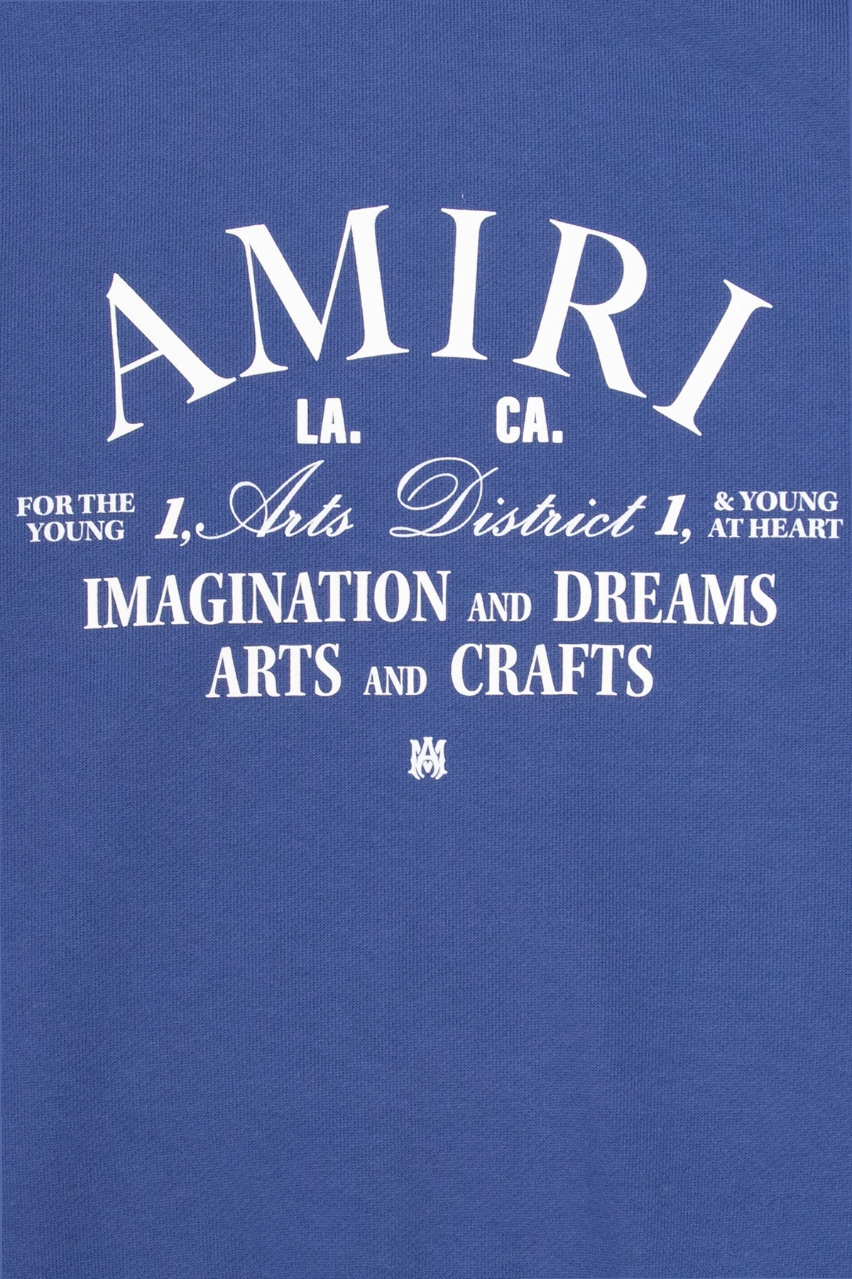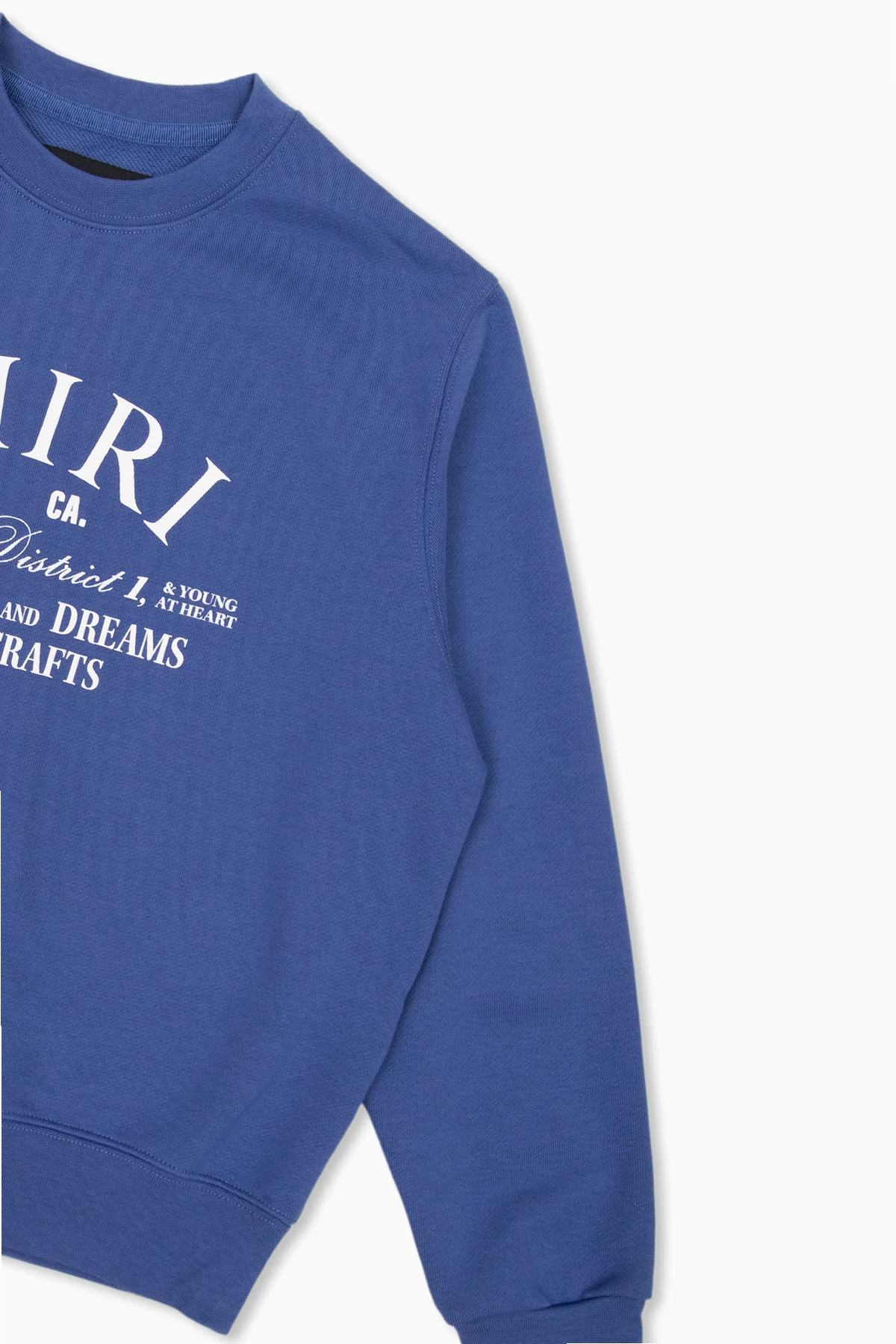 Blue crewneck sweatshirt from Amiri Kids. Made of cotton, this style features a white graphic print with the brand's logo, long sleeves and ribbing on the collar, bottom hem and cuffs.