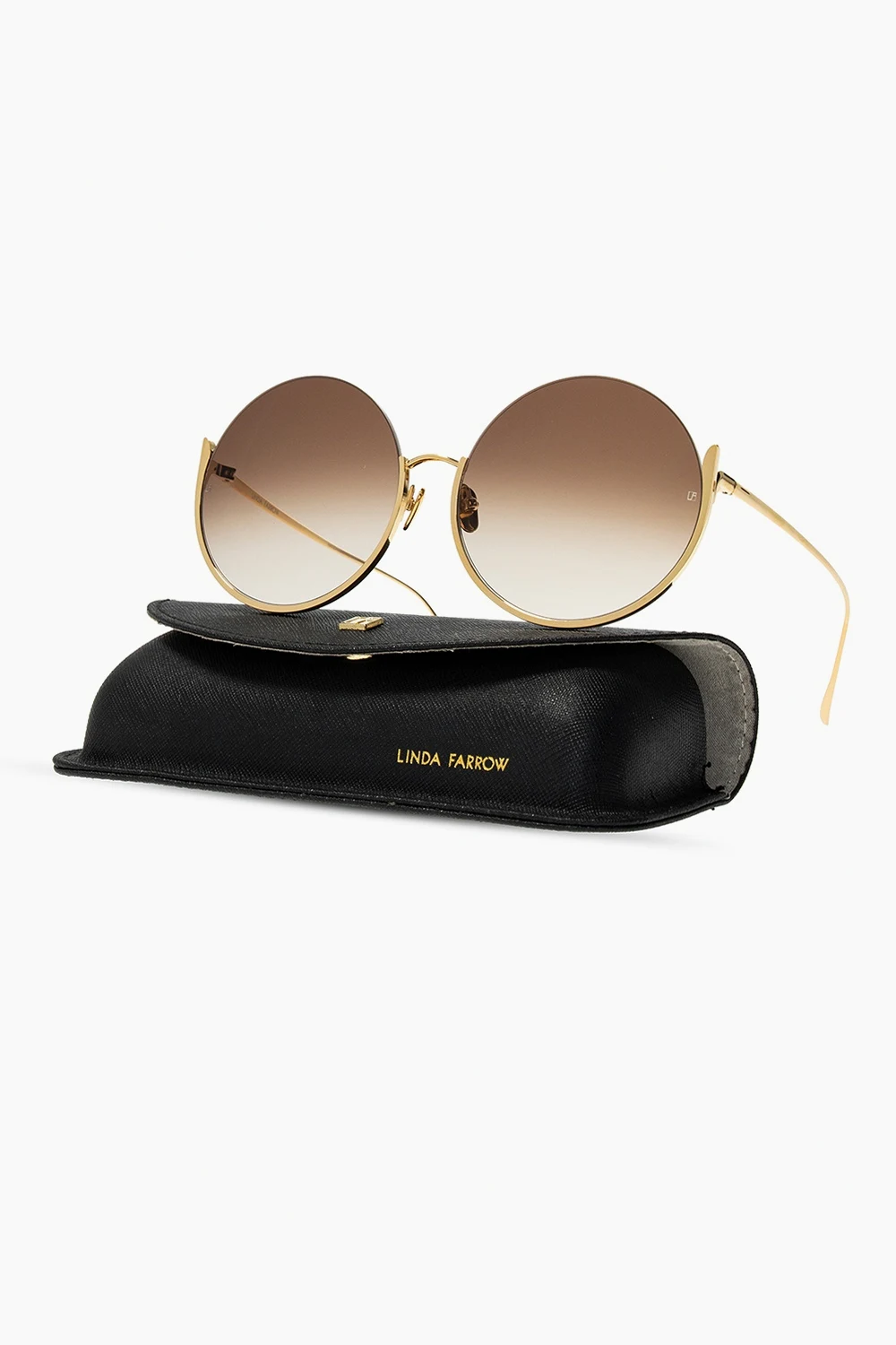 Gold-tone ‘Olivia’ sunglasses from Linda Farrow. Printed with the designer's logo, this pair employs certified brown lenses which ensure 100% UVA and UVB protection. This item comes with a protective case which fastens via magnetic snap-buttons.