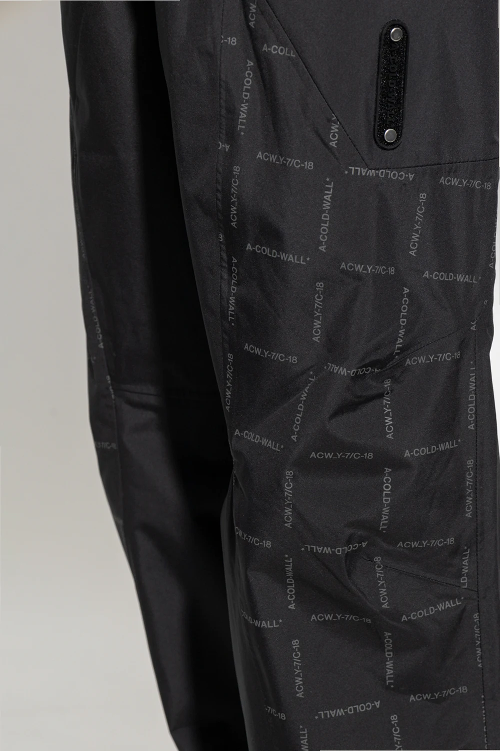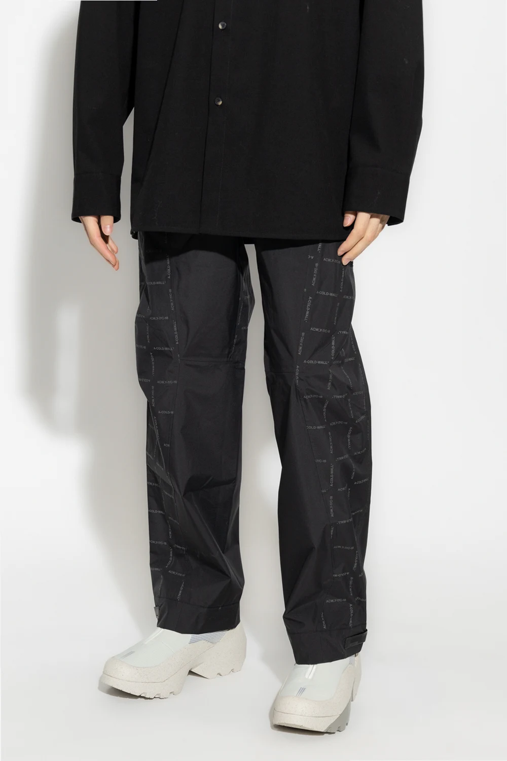 Black trousers from A-COLD-WALL*. Fastened with a zip and snaps, this tapered leg pair features a logo print and multiple pockets.