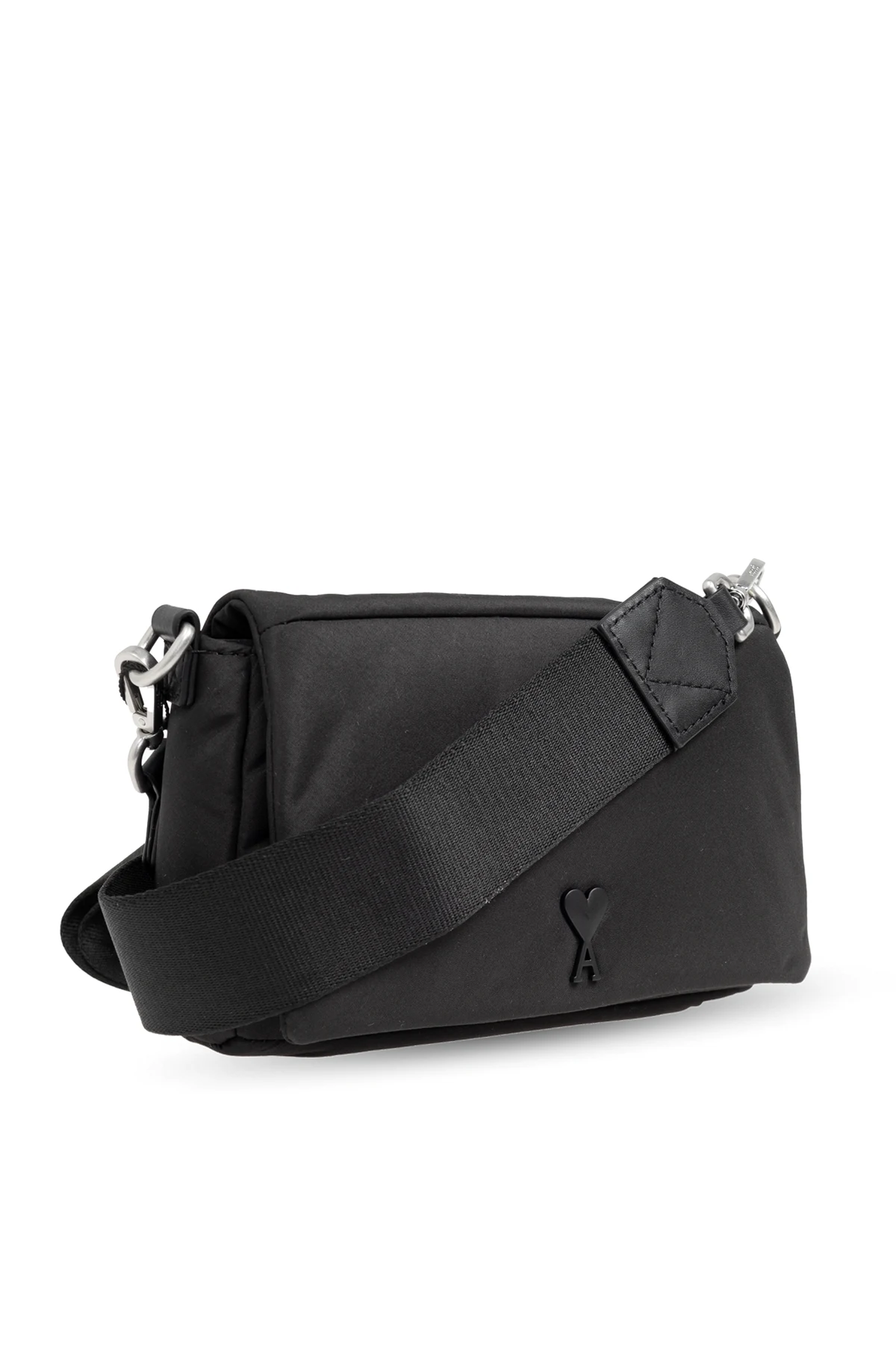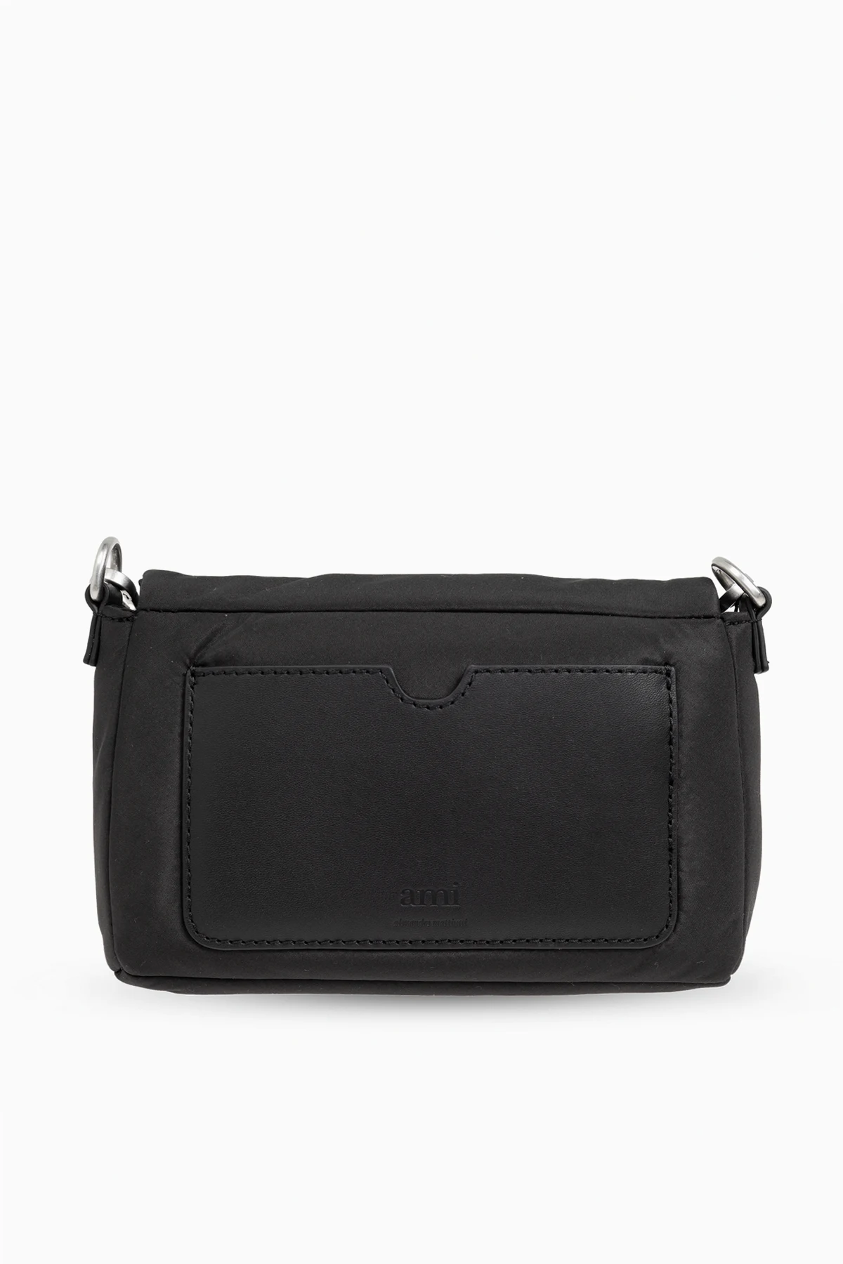 Wir präsentieren die schwarze Umhängetasche aus der exklusiven Modekollektion der Marke AMI Alexandre Mattiussi . Dieses rechteckige, kompakte Accessoire mit abgerundeten Kanten ist ein Ausdruck von Eleganz und minimalistischem Stil, der für die Pariser Nonchalance charakteristisch ist.
