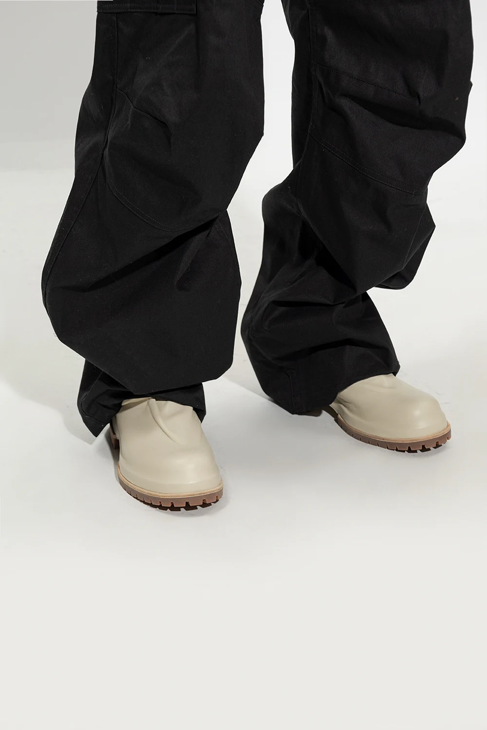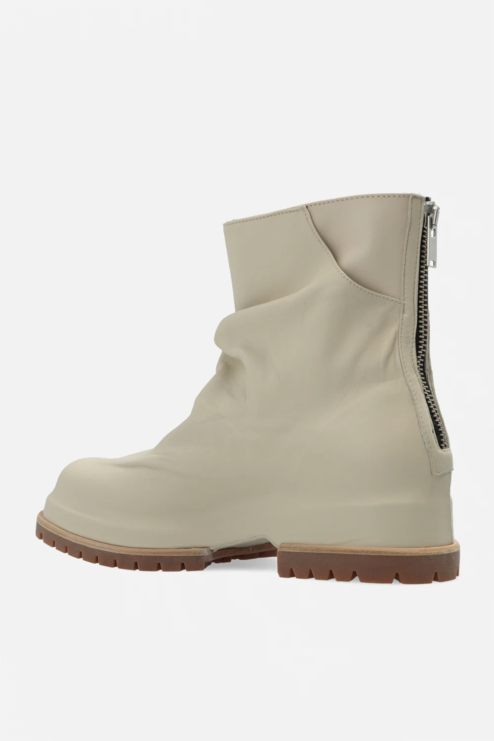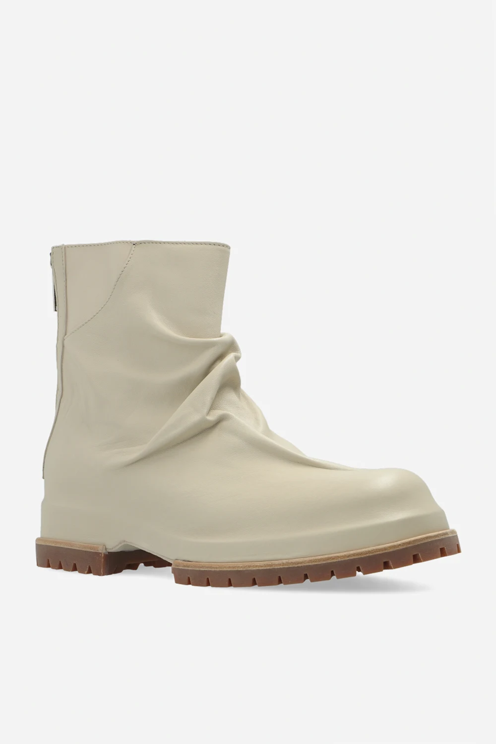 Cream ankle boots from 424. Crafted from leather, this pair features a back zip fastening, decorative draped details and brown rubber sole.
