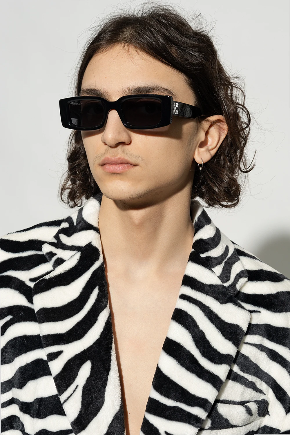 Black ‘Arthur’ sunglasses from Off-White. This pair features rectangular lenses, the brand's signature arrows motif in white and grey lenses with 100% UV protection. Comes with a case.