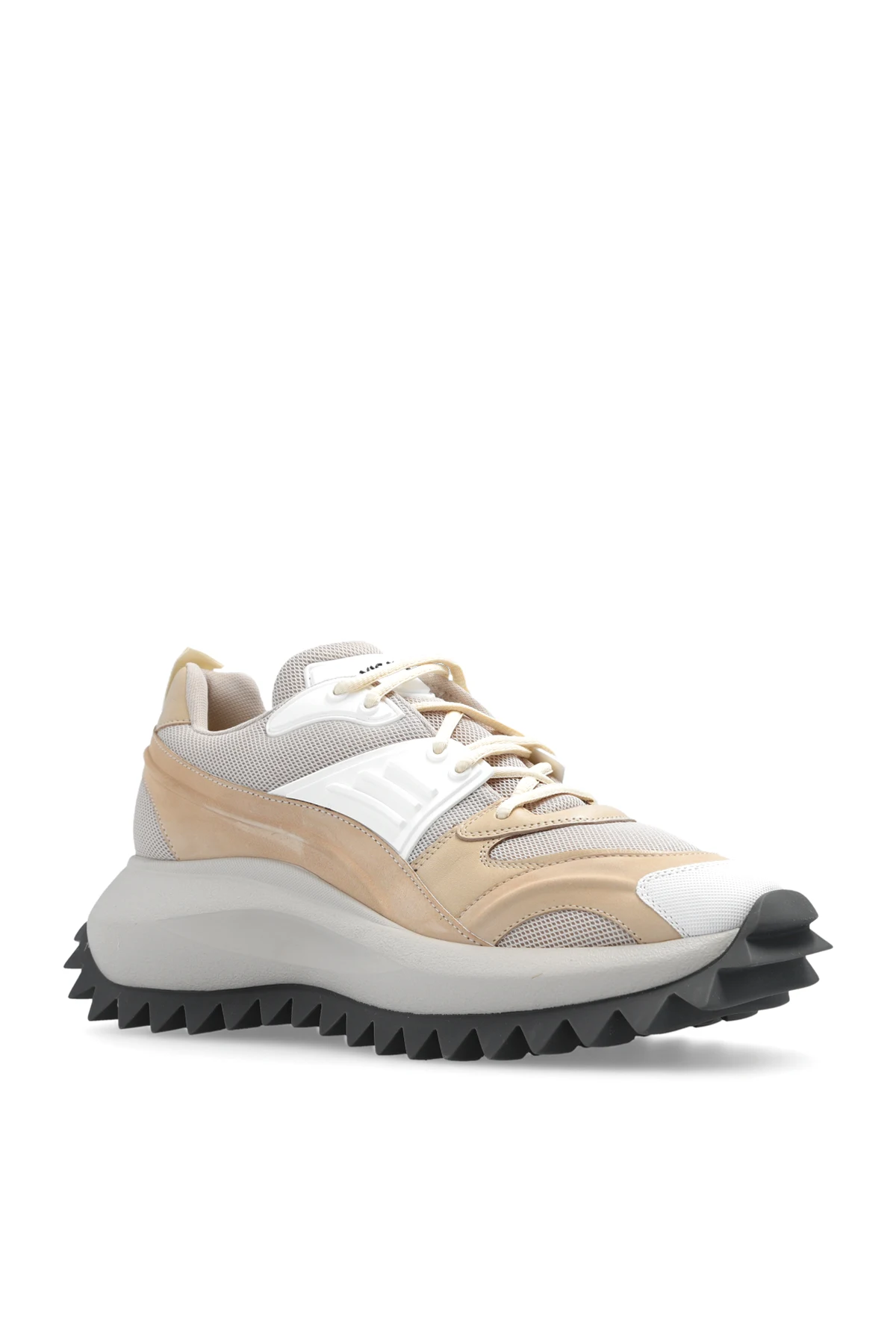 Beige and white sneakers from Vic Matie. Crafted from fabric, leather and rubber, this lace-up model sits on a beige and black EXTRALIGHT® tread rubber sole and showcases the brand's logo.