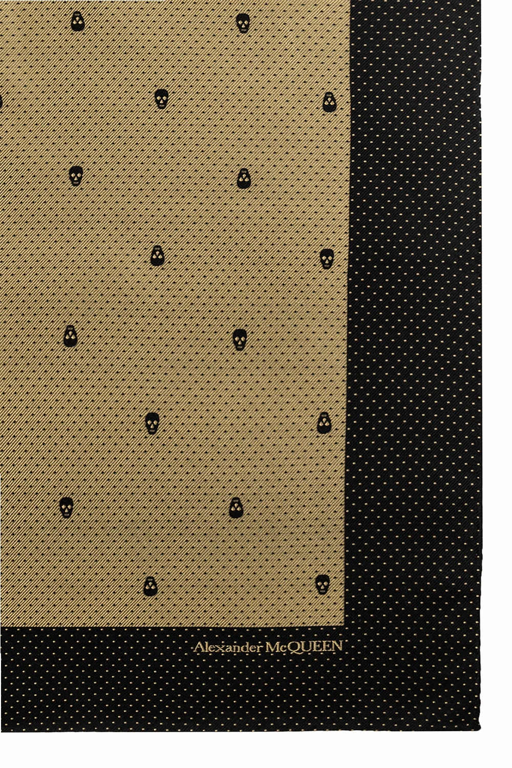 Black and beige pocket square from Alexander McQueen. Crafted from silk, this item showcases the brand's logo and the signature motif of the skeleton.