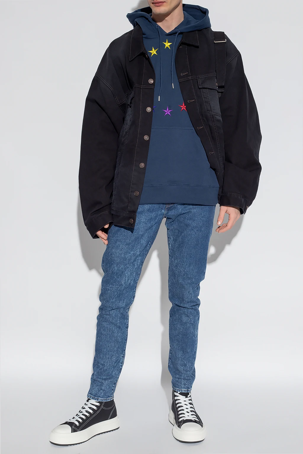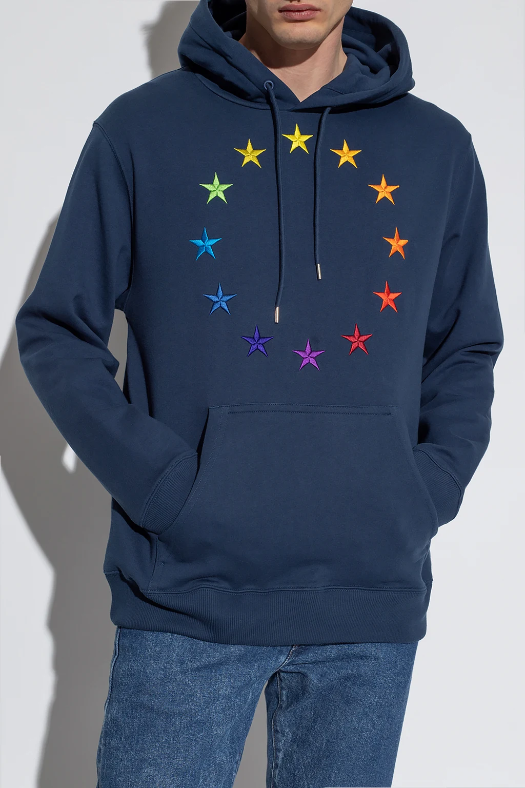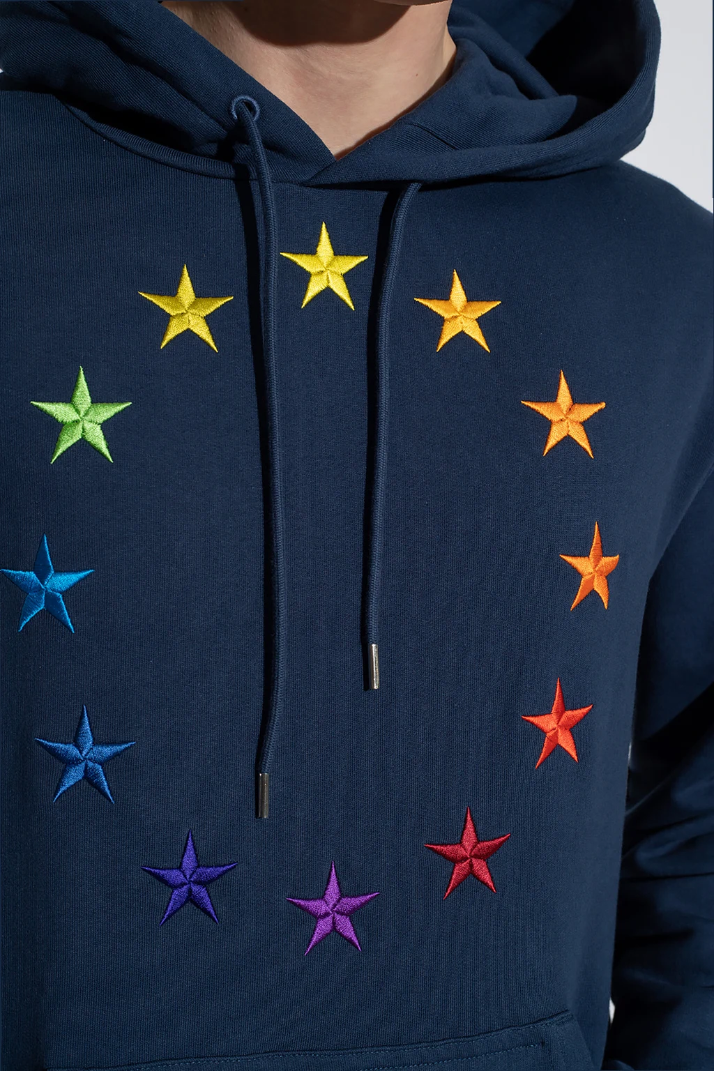 Dark blue sweatshirt with a drawcord-adjustable hood from Etudes. Crafted from organic cotton, this style features colourful graphic embroidery with a motif of stars on the front, a kangaroo pocket and an elasticated bottom hem and cuffs.