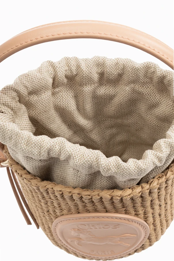 Auf der Vorderseite der Tasche befindet sich ein runder Aufnäher mit dem Chloé-Logo, einem eingeprägten Pferdemotiv und der Aufschrift "Chloé Paris", was ihr Charakter und Wiedererkennbarkeit verleiht. Das Innere der Tasche ist mit einem Leineneinsatz mit Kordelzug ausgestattet, der eine sichere Aufbewahrung des Inhalts gewährleistet. Zusätzlich verfügt die Tasche sowohl über einen Handgriff als auch über einen längeren Riemen, der ein bequemes Tragen über der Schulter ermöglicht.