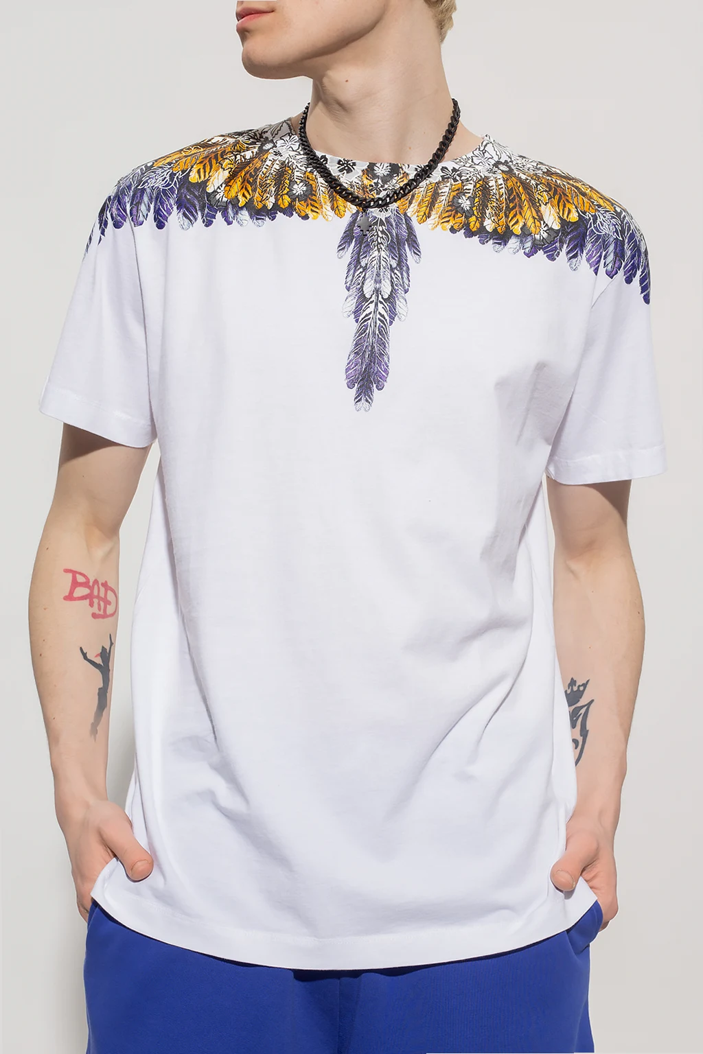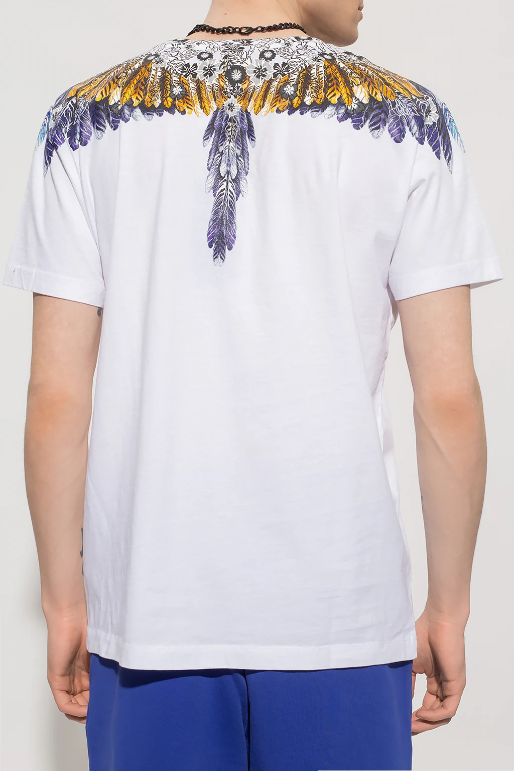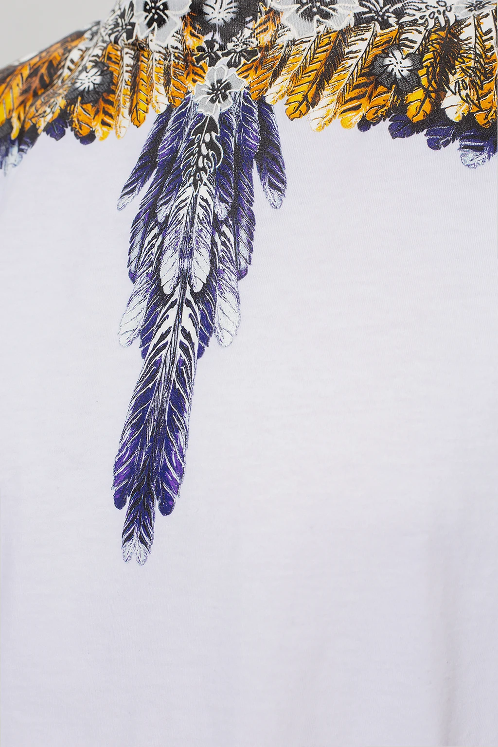 White T-shirt from Marcelo Burlon. Crafted from cotton, this short sleeve design features a multicolored wing print on the front and ribbed crewneck.