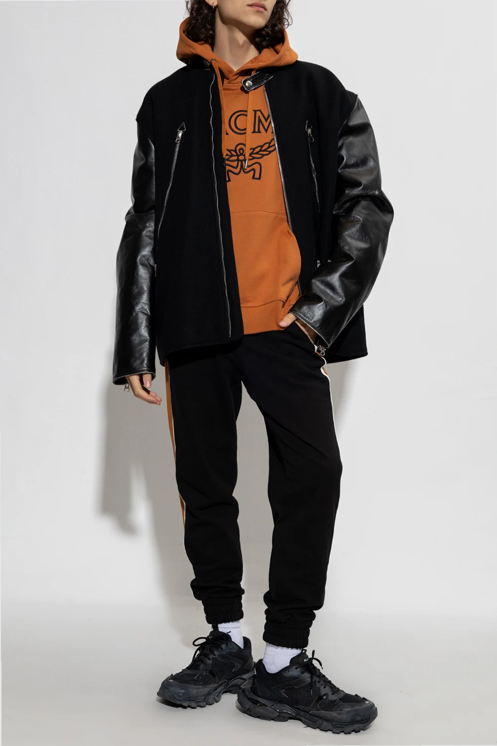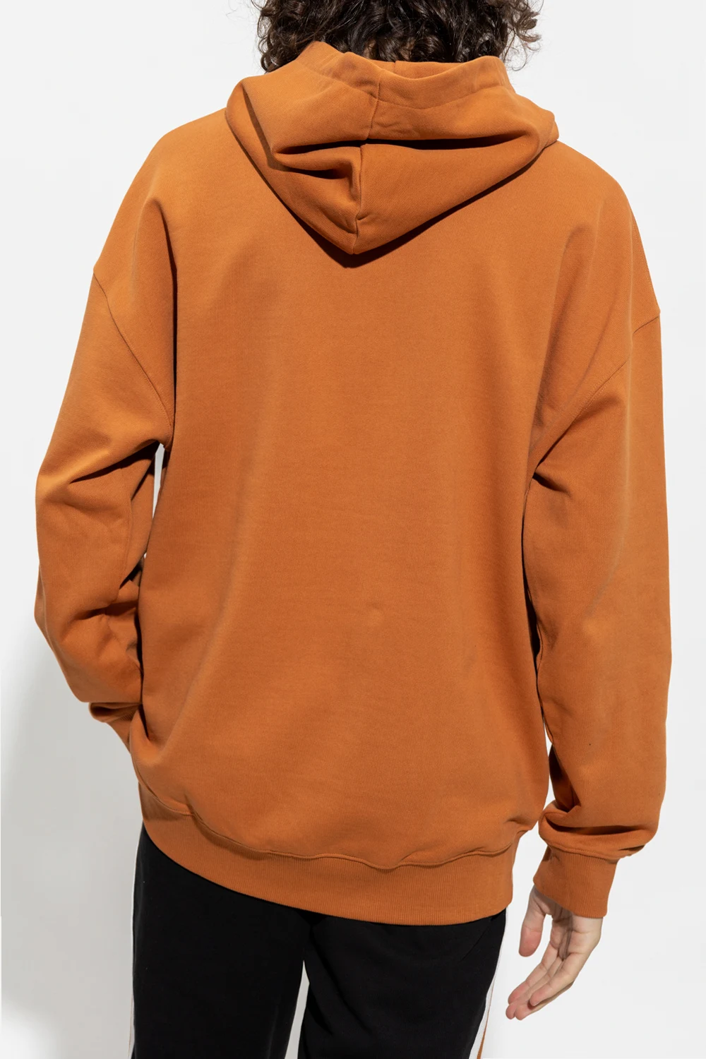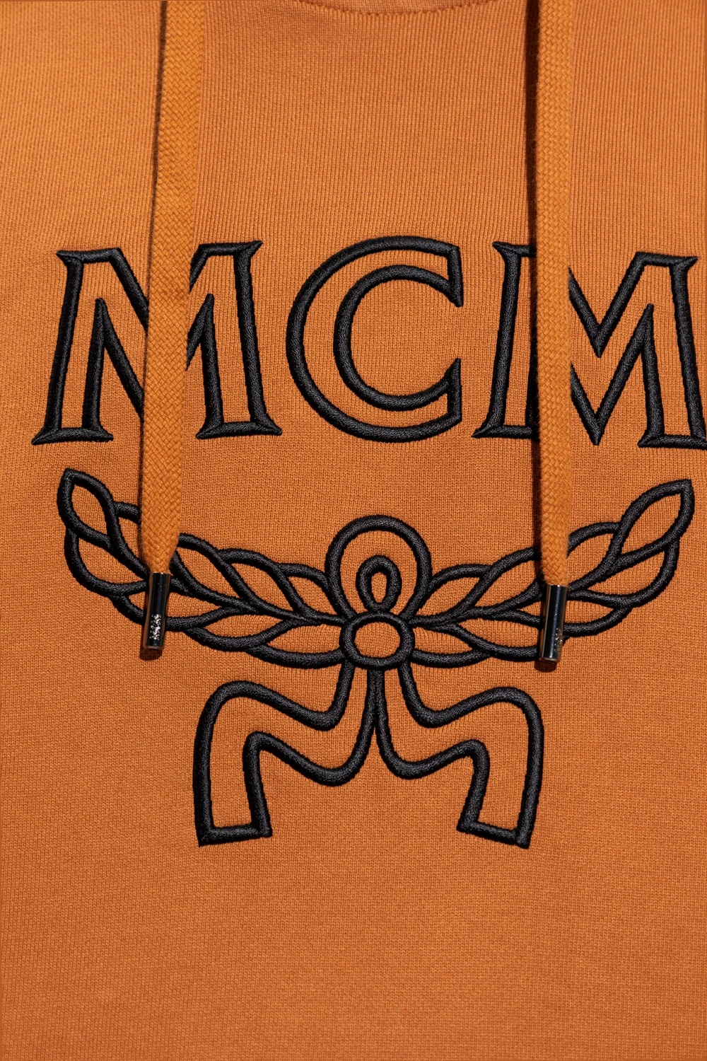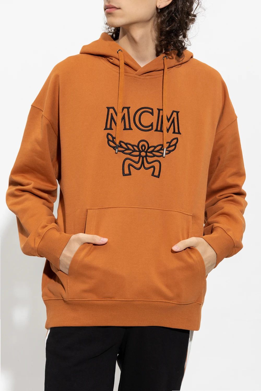 Brownish orange sweatshirt with a drawcord-adjustable hood from MCM. Crafted from organic cotton, this style features an embroidered black logo, a kangaroo pocket and a ribbed bottom hem and cuffs.