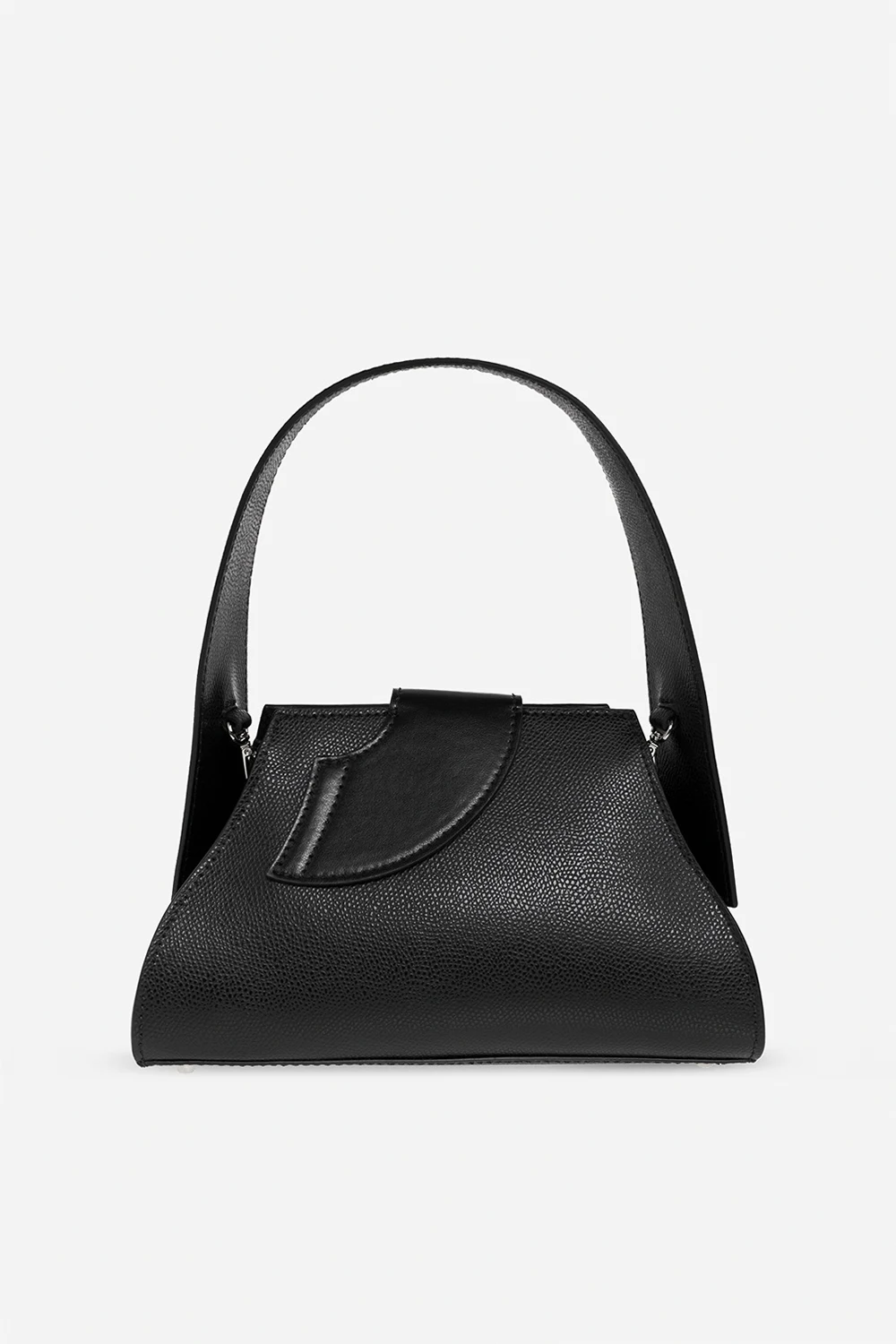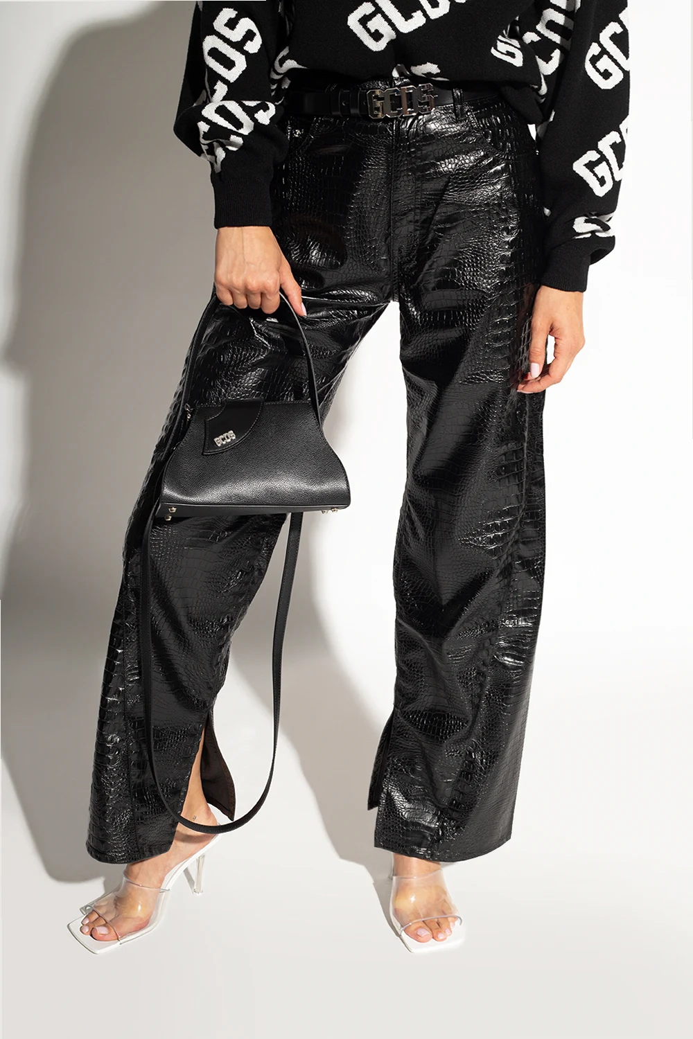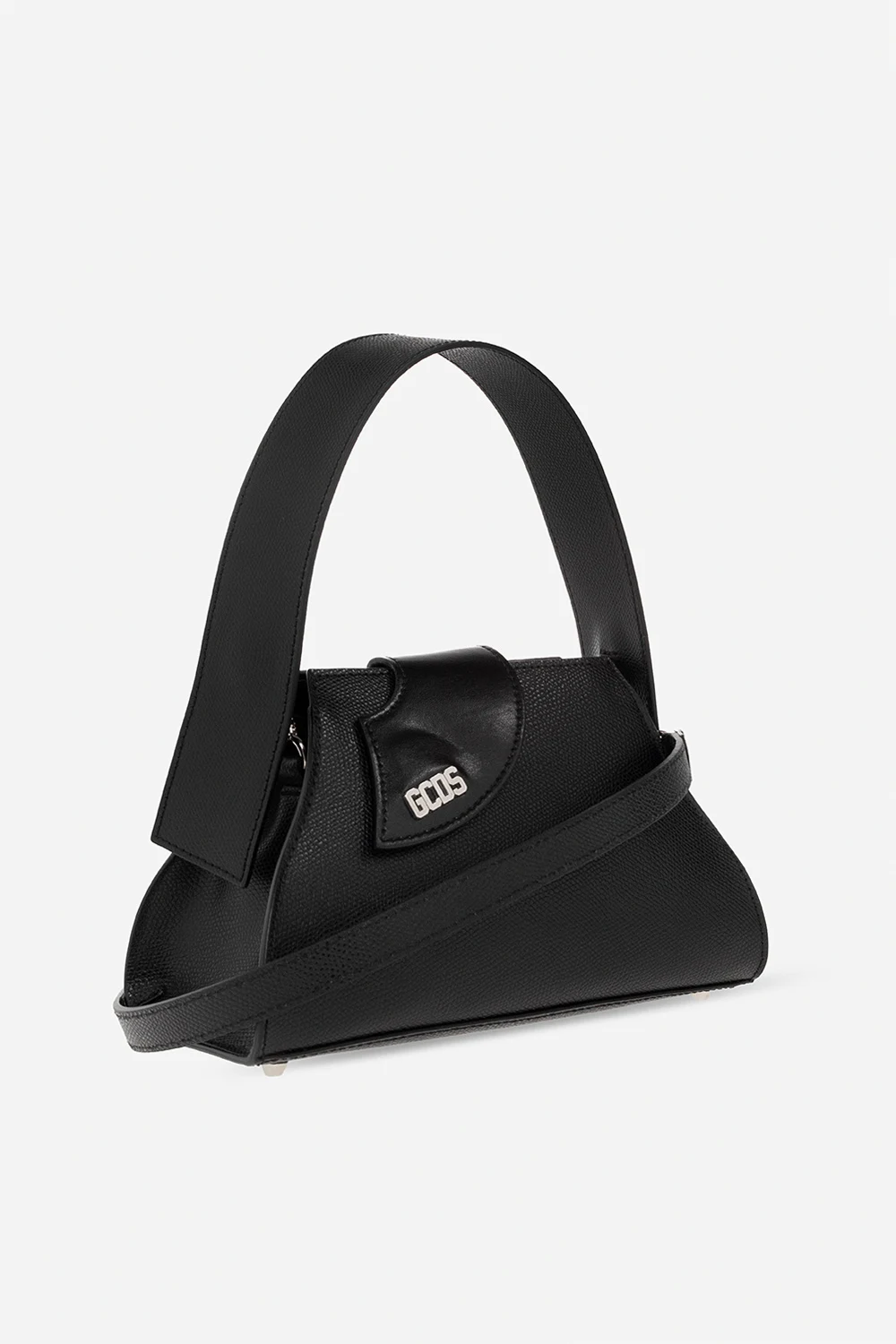 Black ‘Comma’ shoulder bag from GCDS. Crafted from calf leather, this design features a distinctive fastener with a metal logo plaque, a detachable half-round handle and shoulder strap, silver-tone metal hardware and one internal compartment with a card slot.