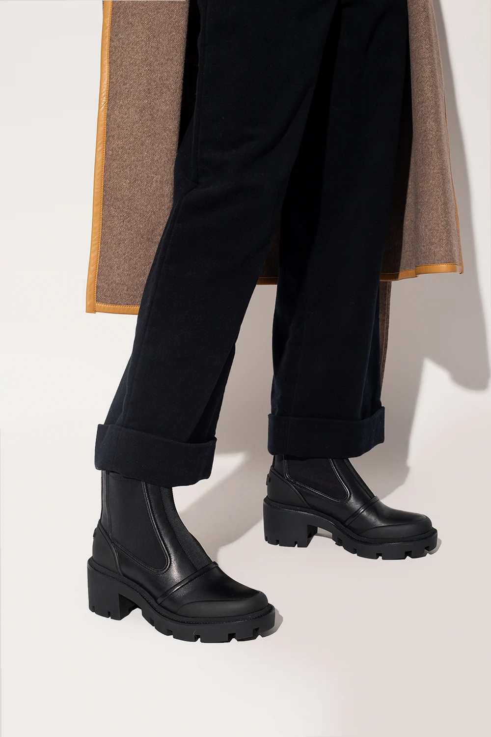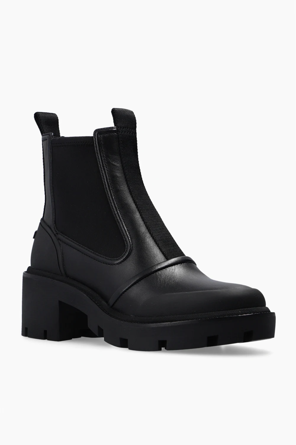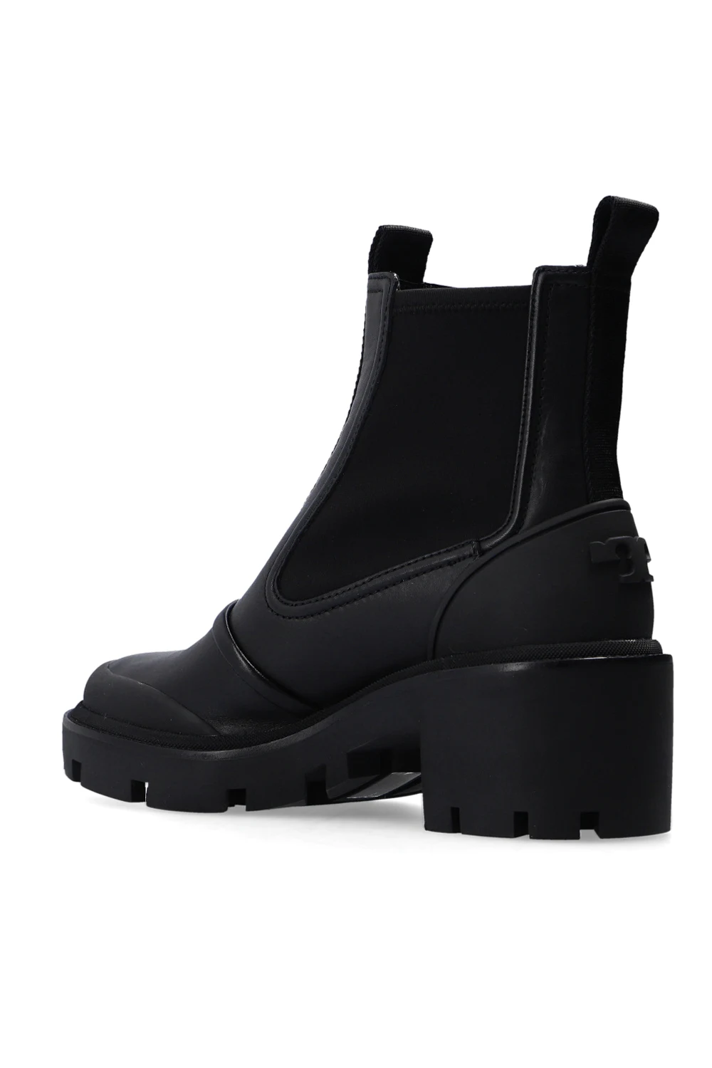 Black ‘Chelsea’ boots from Tory Burch. Trimmed with leather, this model features elastic side panels, a raised logo at the back and a black rubber sole.