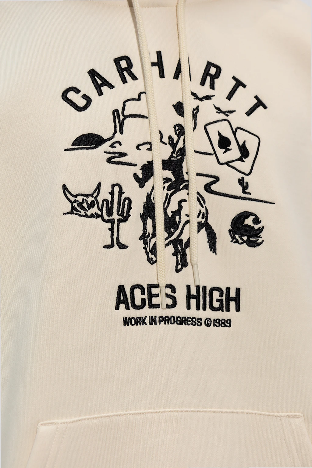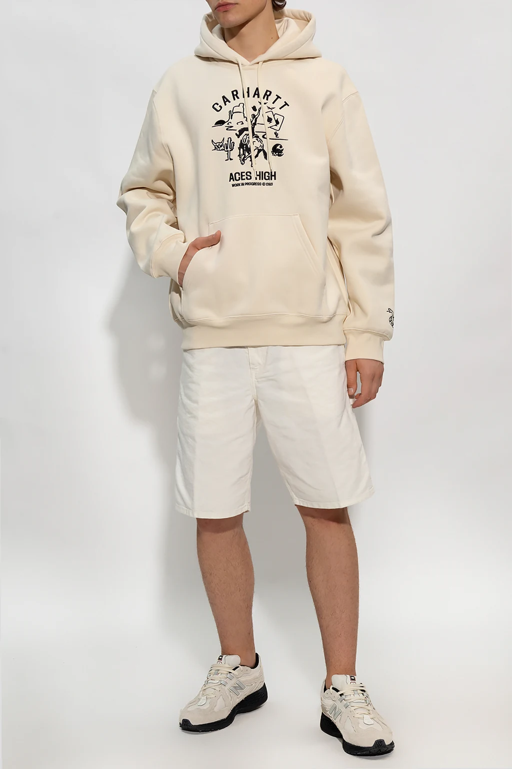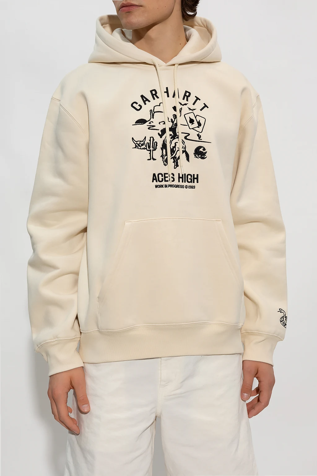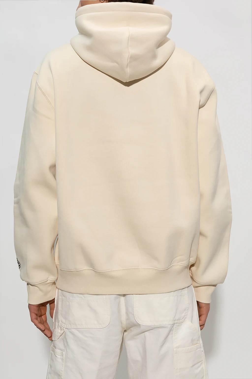 Cream hoodie from Carhartt WIP. Made of cotton, this design features a black logo embroidery, drawstring hood, slip pocket and ribbed trims at the hem and cuffs.