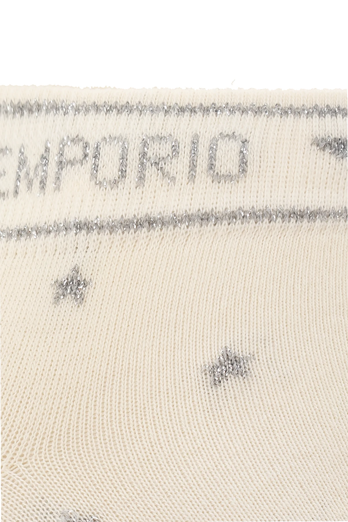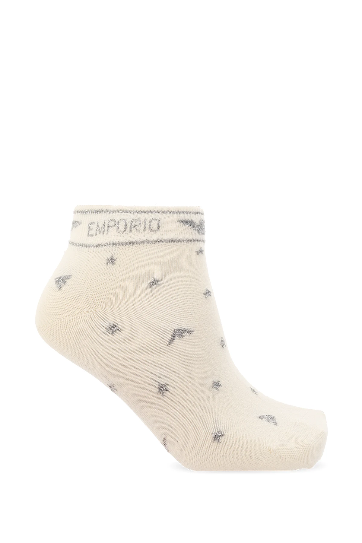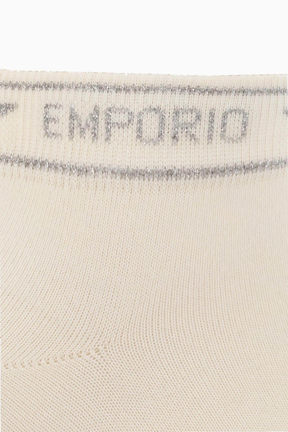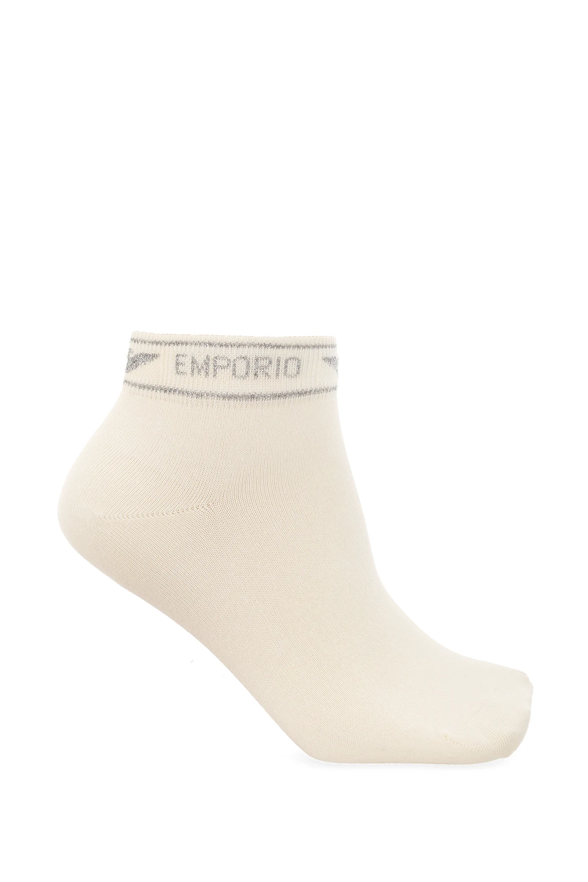 Cream socks two-pack from Emporio Armani. Made of cotton, each pair features shiny thread detailing and ribbed cuffs.