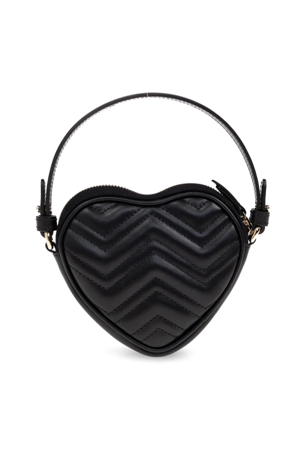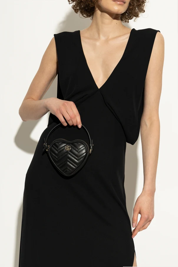 Die GG Marmont Mini Handtasche ist ein außergewöhnlicher Ausdruck raffinierten Stils, inspiriert von der klassischen Eleganz der Marke Gucci. Ihre einzigartige Herzform und das gesteppte Fischgrätmuster, betont durch präzise Nähte, verleihen dem Gesamtbild eine edle Tiefe. Gefertigt aus glattem, schwarzem Leder mit subtil matter Oberfläche, begeistert die Tasche durch ihre Weichheit und ihren edlen Charakter.