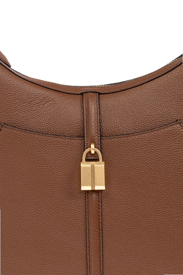 Das Herzstück des Designs bildet das elegante, goldfarbene Vorhängeschloss, das die Quintessenz der Raffinesse verkörpert. Perfekt gesetzte, dekorative Nähte sowie ein dezentes, geprägtes Designerlogo unterstreichen die Einzigartigkeit dieses Modells und machen es zur Essenz guten Geschmacks.