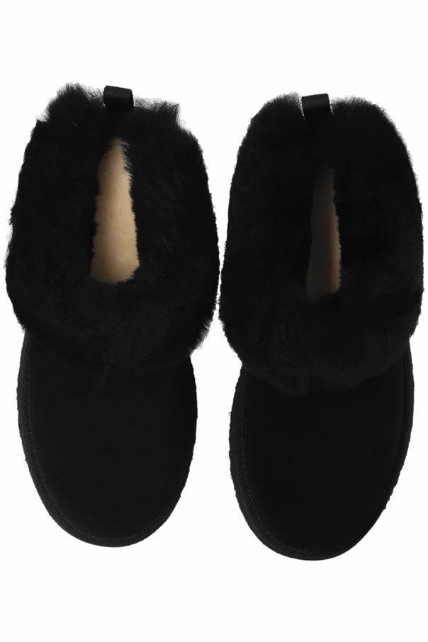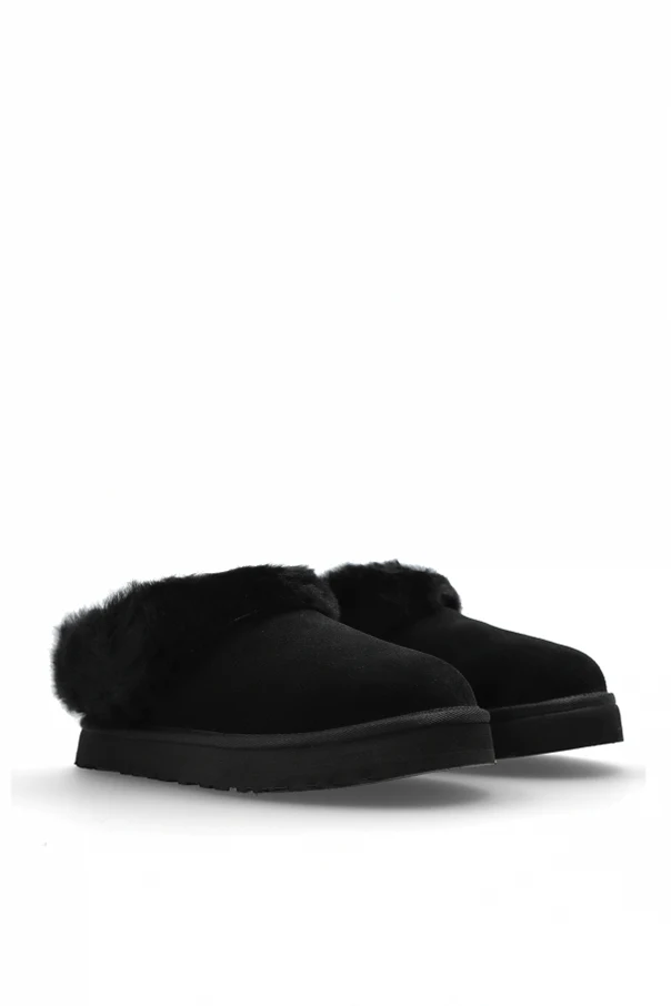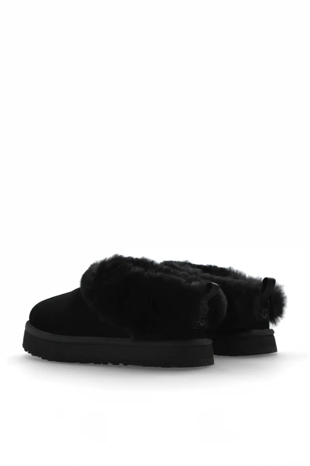 K TAZZELLE Schuhe , signiert von der renommierten Marke UGG Kids, verkörpern die Quintessenz moderner Eleganz und zeitlosen Komforts. Ihr niedriger, abgerundeter „Clog“-Schnitt verleiht ihnen einen dezenten Stil, der durch einheitliches, tiefes Schwarz unterstrichen wird. Das durchdacht gestaltete Obermaterial aus weichem Veloursleder ist von üppigem, zartem Fell umhüllt, das angenehme Wärme und unvergleichlichen Komfort bietet.