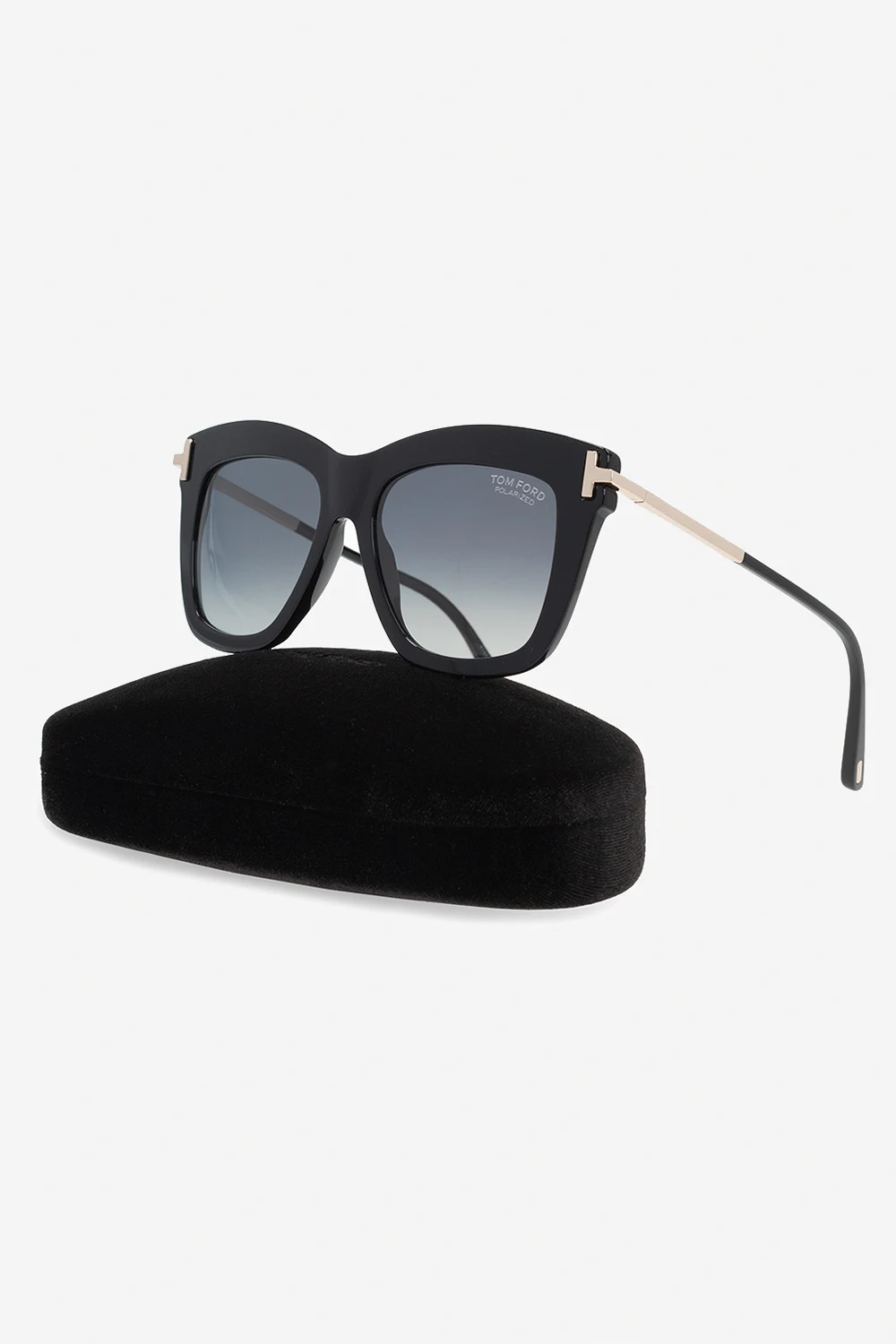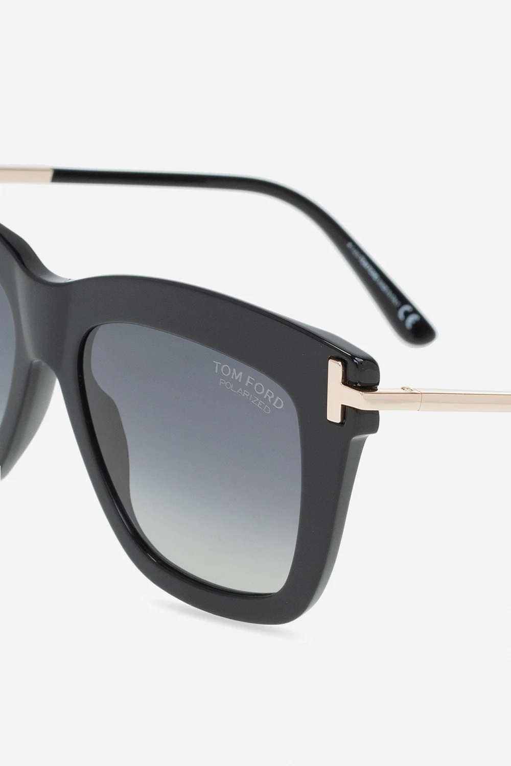 Black and silver-tone sunglasses from Tom Ford. This model features an embossed logo and black lenses with 100% UVA/UVB protection. Comes with a case.