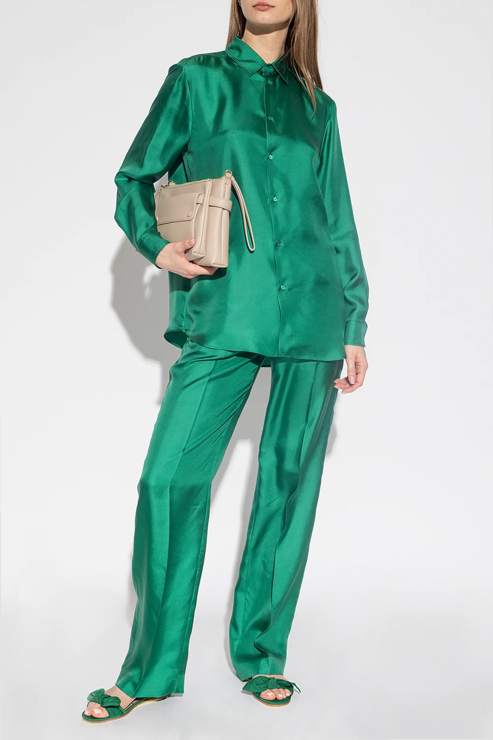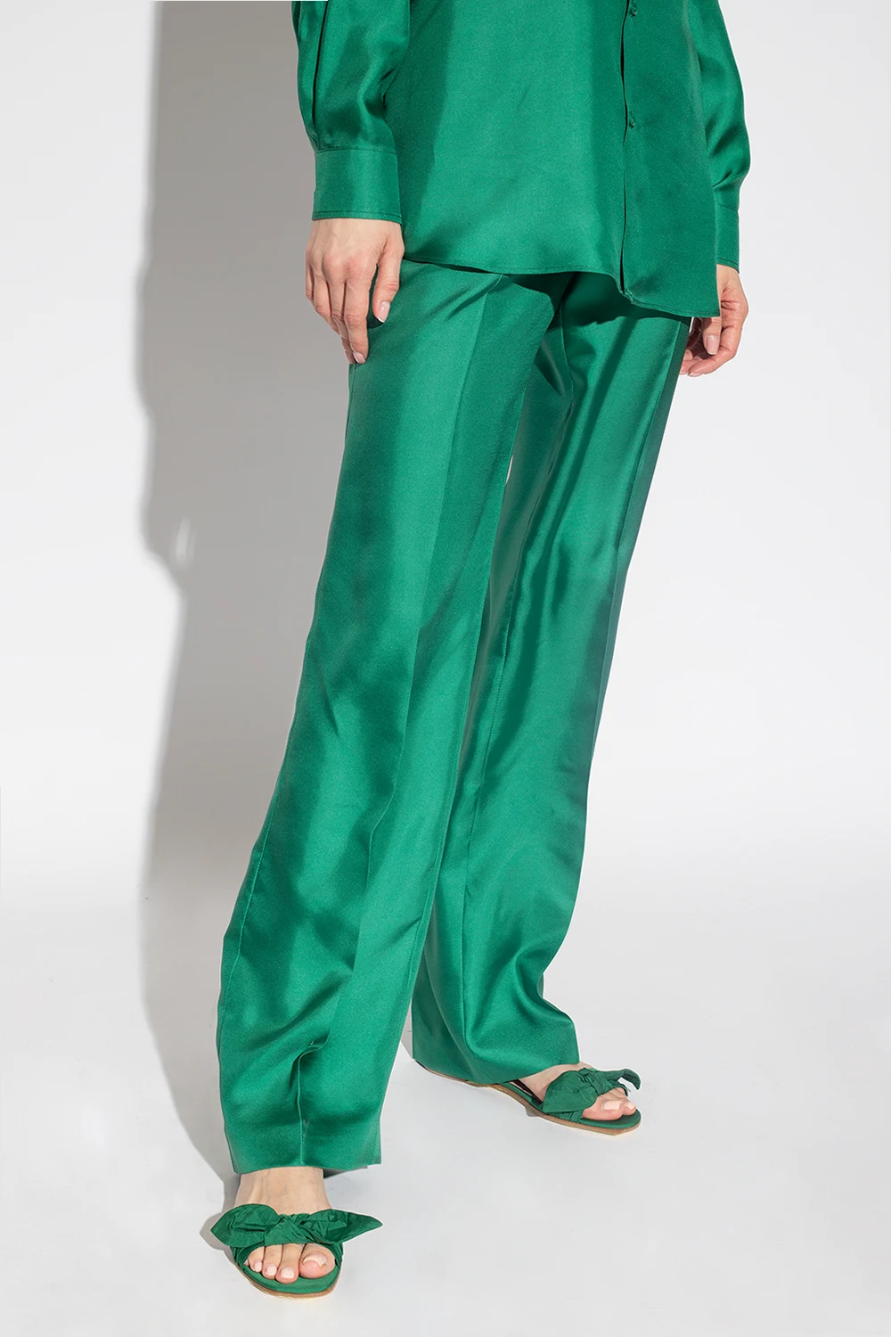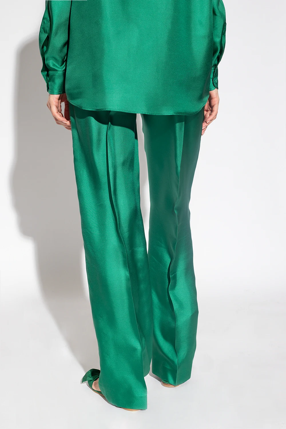 Green pleat-front trousers from Red Valentino. Made of silk, this pair falls with wide legs and features an elasticated waistband and two slip pockets.