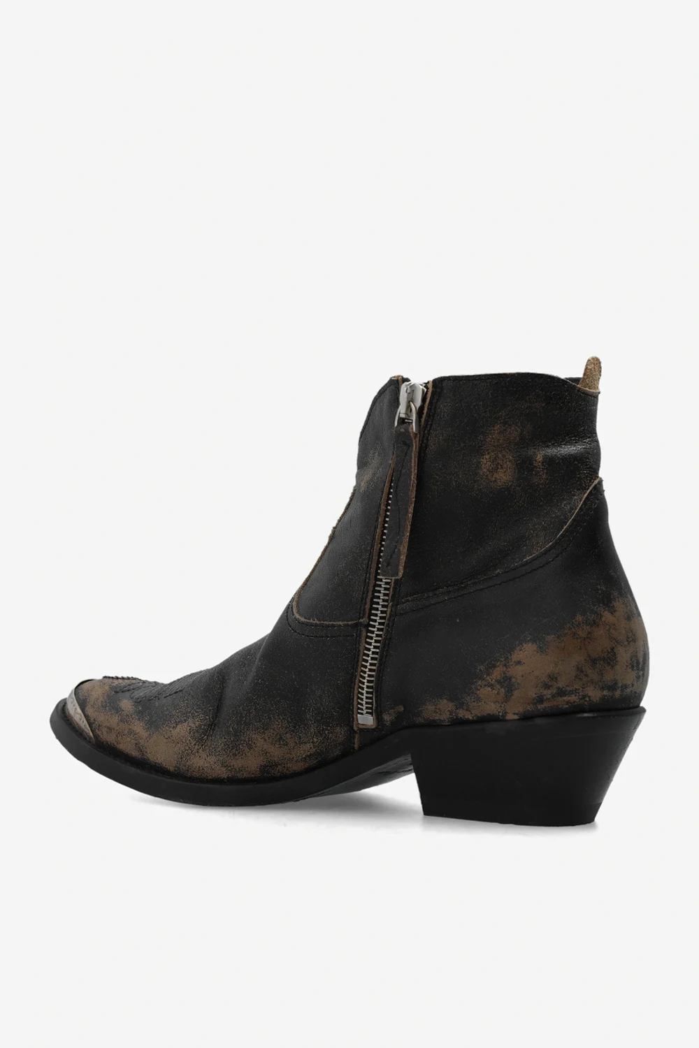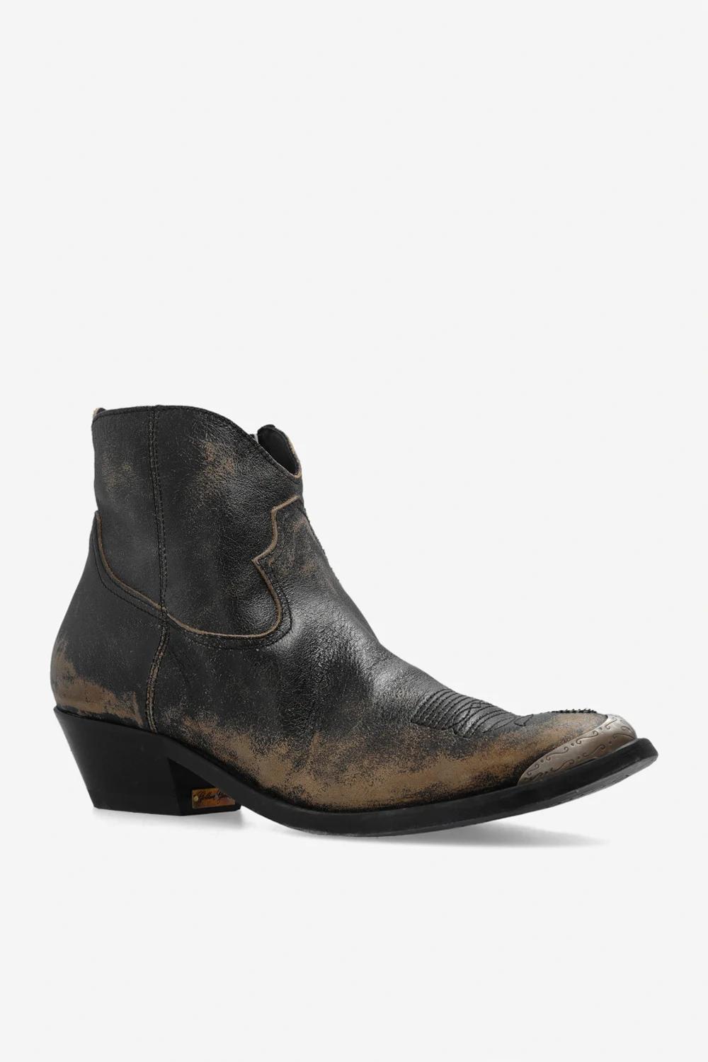 Brown ‘Young’ heeled ankle boots from Golden Goose. Crafted from leather, this model sits on a black leather sole and features a side zipper, exposed stitching detail and a round toe with antiqued silver-tone hardware.