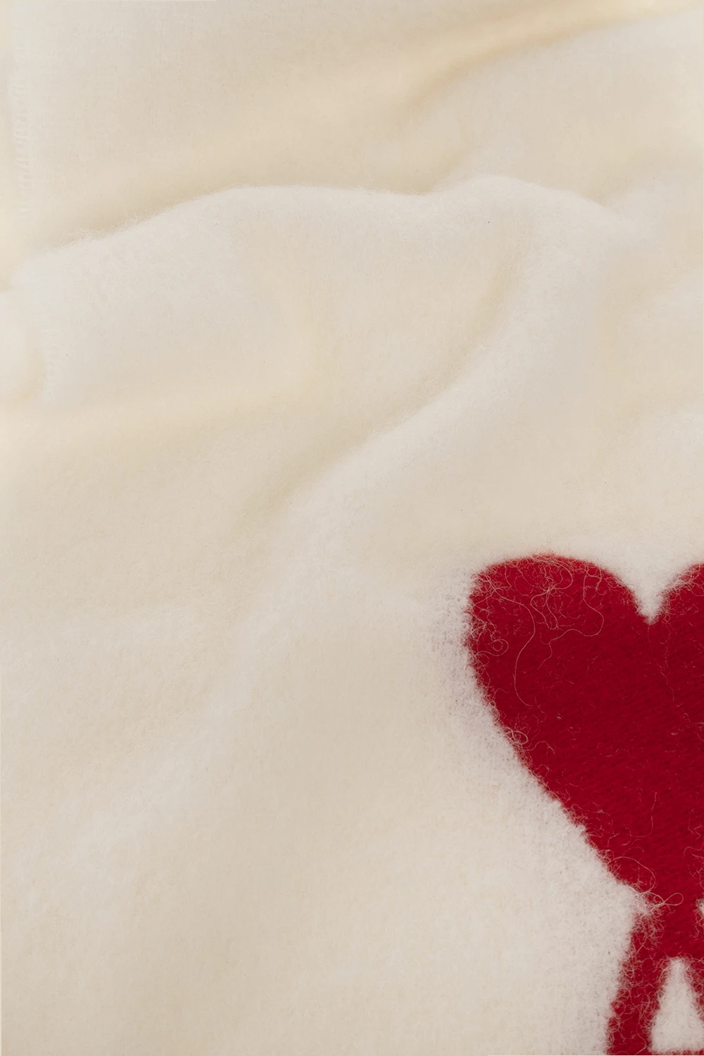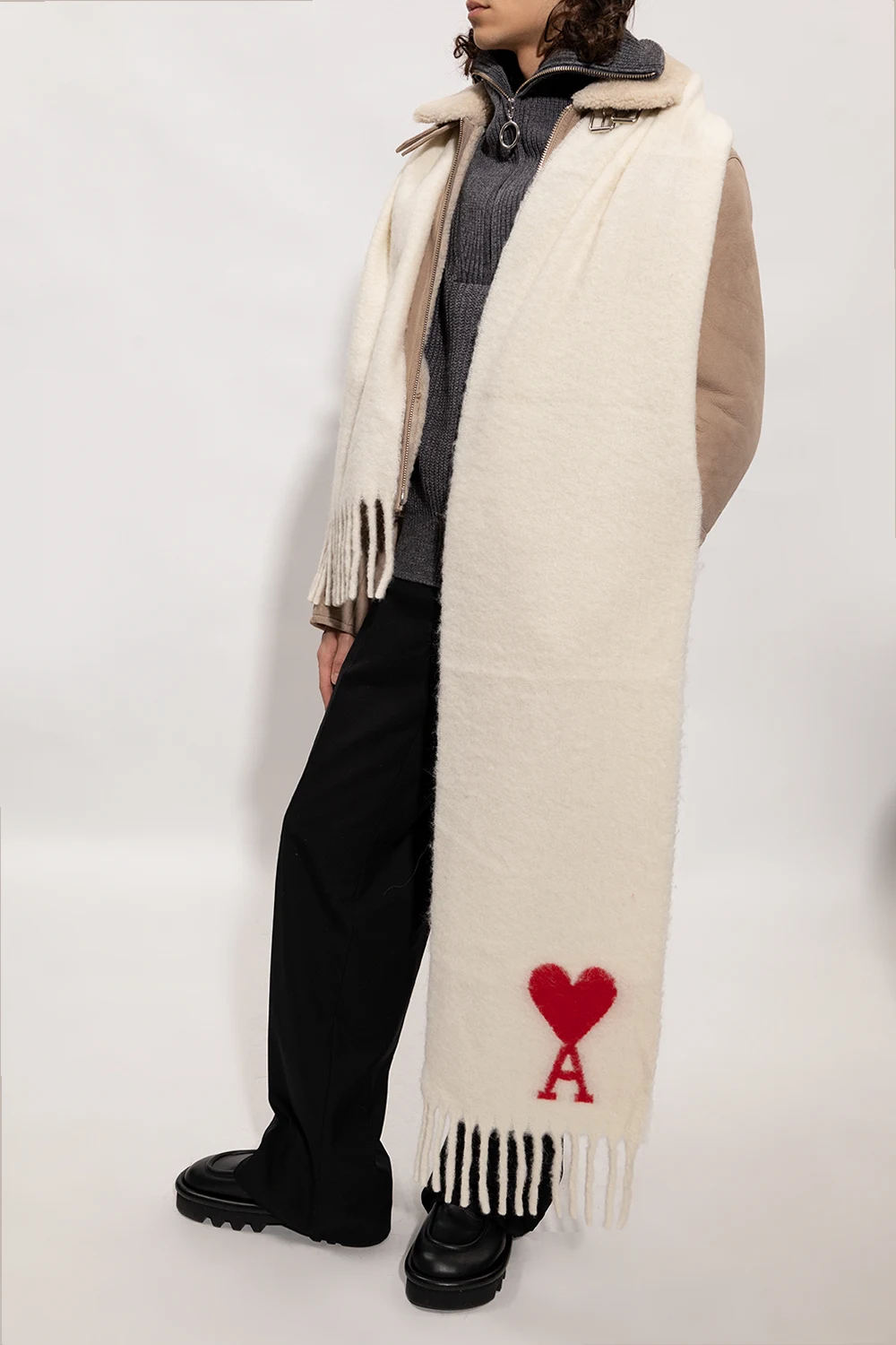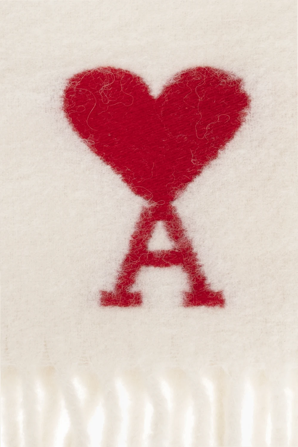 Cream scarf from Ami Alexandre Mattiussi. Made of alpaca, this item is enriched by a red Ami de Coeur logo embroidery and fringe edges.