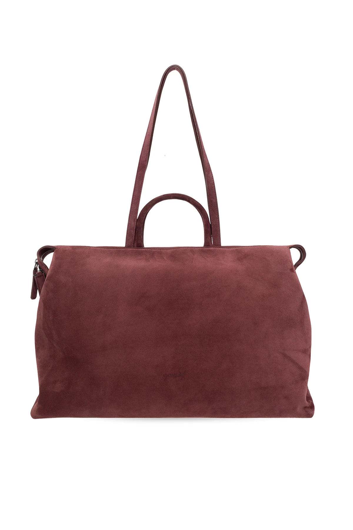 Maroon ‘4 In Orizzontale’ shoulder bag from Marsell. Crafted from suede, this design fastens via a two-way zip and showcases an embossed logo on the front. It is complete with two half-round handles, two half-round straps and one internal compartment with one zip pocket and one slip pocket.