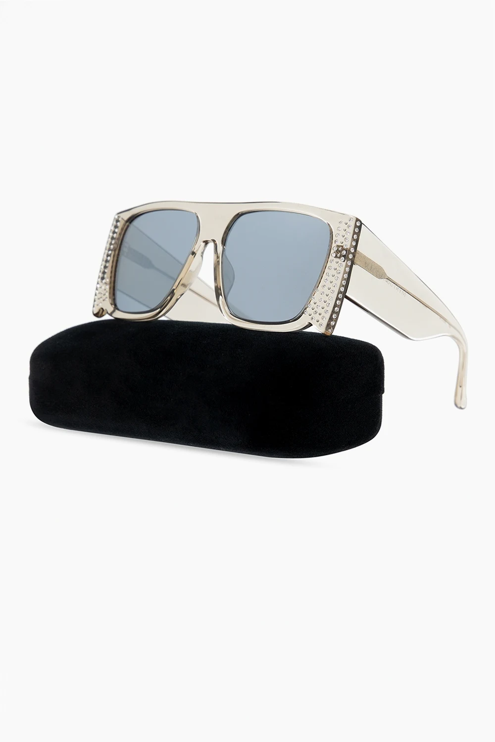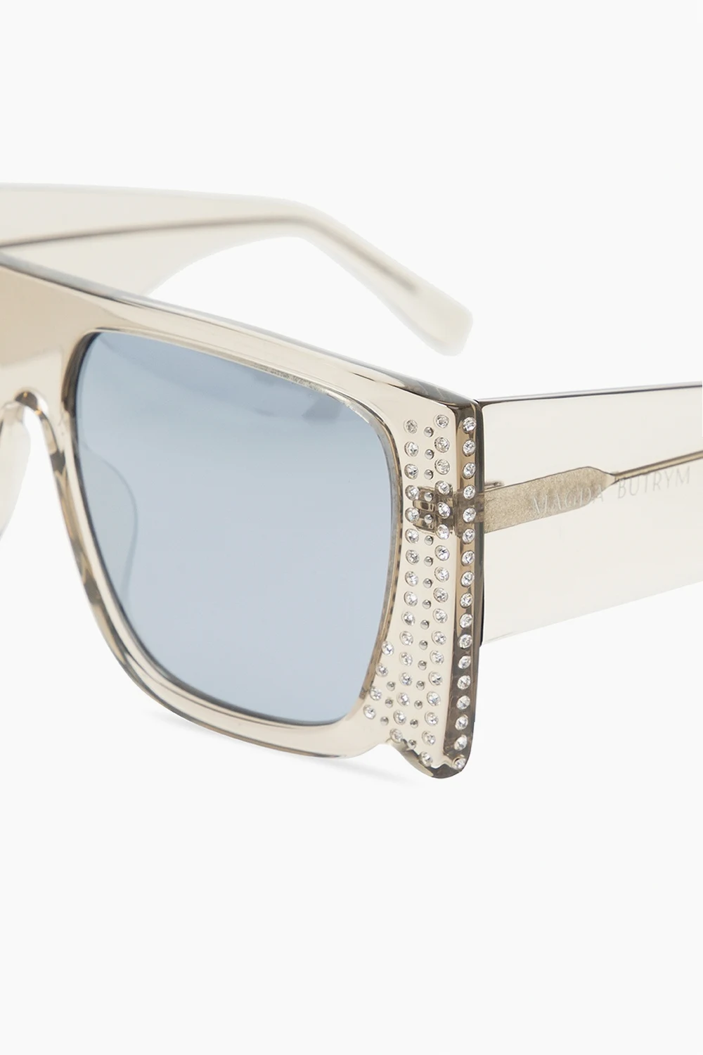 Light grey ‘I need a holiday’ sunglasses from Linda Farrow x Magda Butrym. Crafted from acetate, this attention-grabbing pair was encrusted with Swarovski crystals and detailed with gold-tone logo embossing. This pair comes with a protective case and employs certificated dark grey lenses, which ensure UVA/UVB protection.
