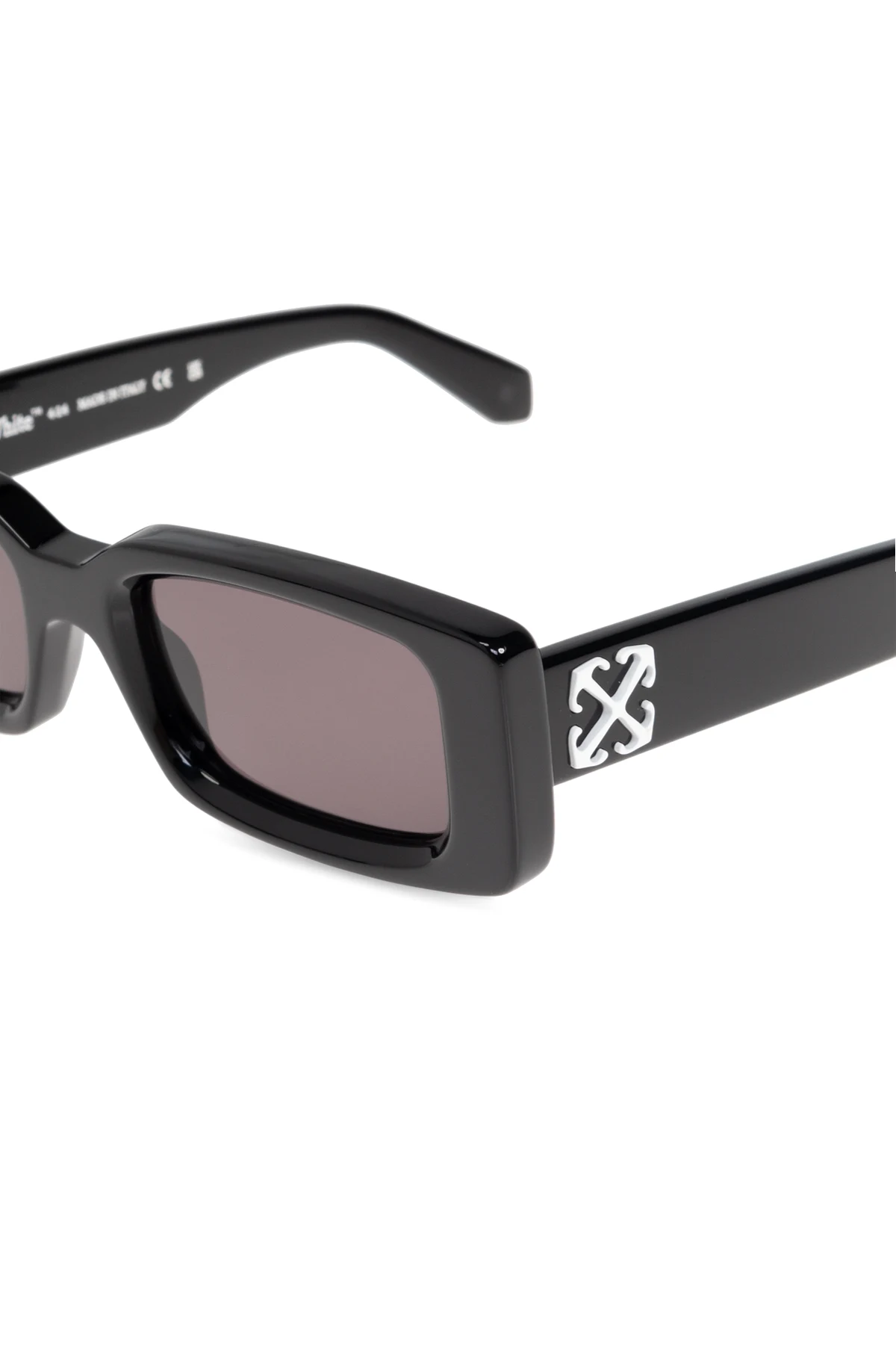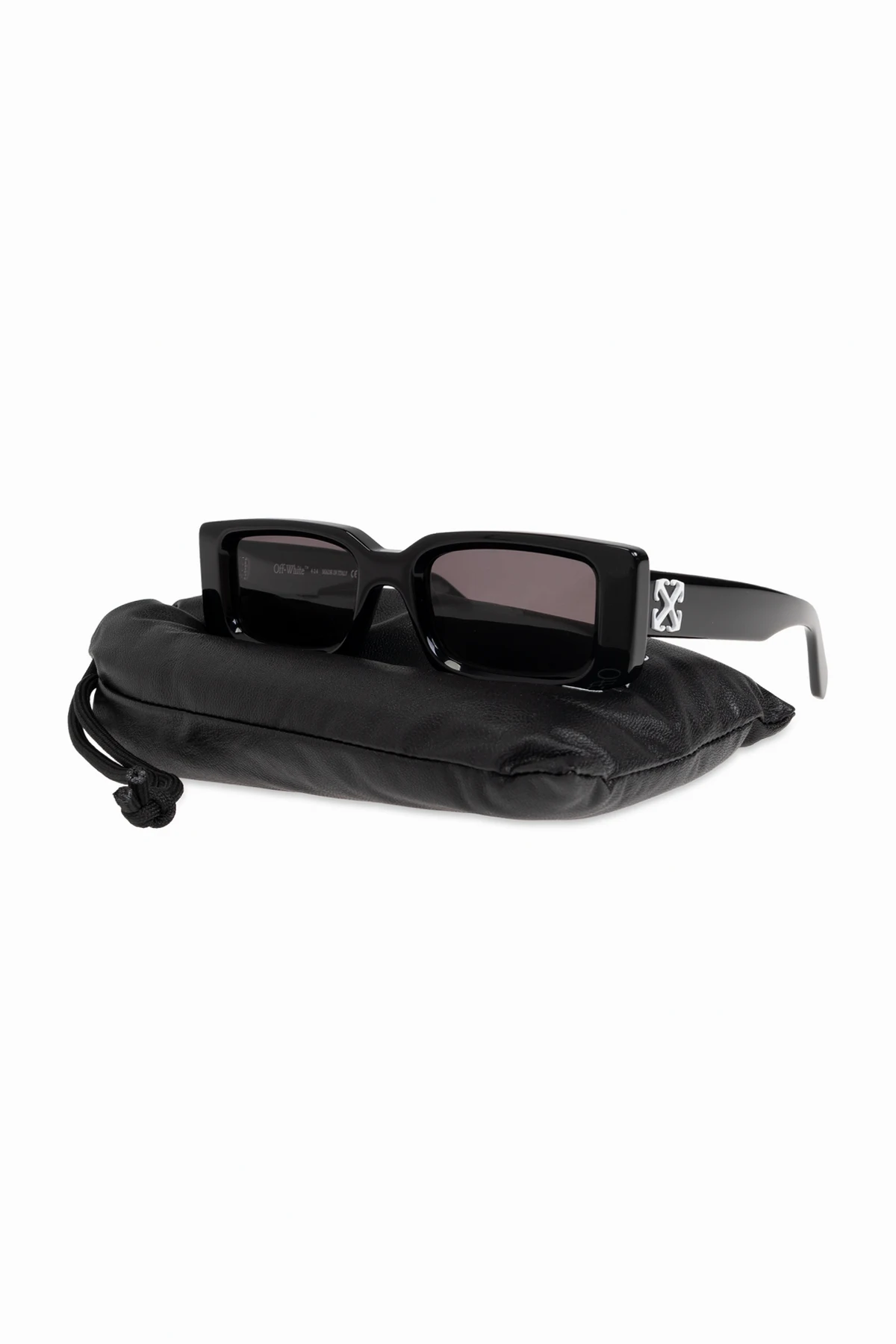 Wir präsentieren die Sonnenbrille "Arthur" der renommierten Marke Off White. Diese exklusiven Brillen bestechen durch ihre rechteckige Form und dicken Rahmen in dominierendem Schwarz, was ihnen ein modernistisches und stilvolles Aussehen verleiht. Hergestellt aus hochwertigem Acetat, garantieren sie Langlebigkeit und Tragekomfort.