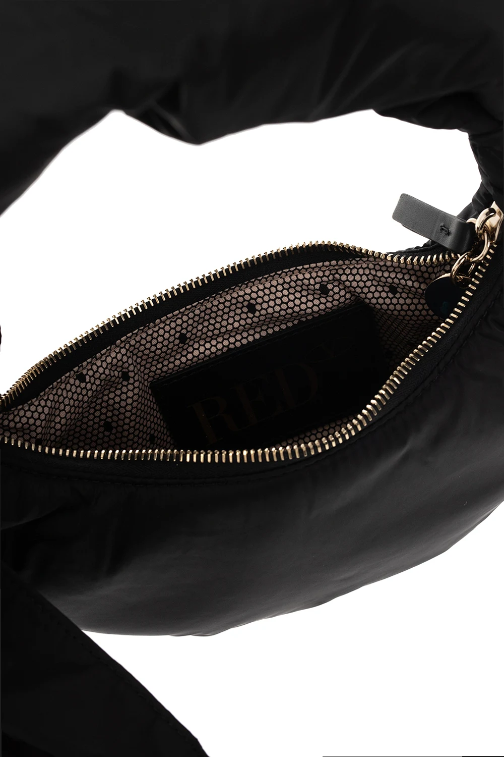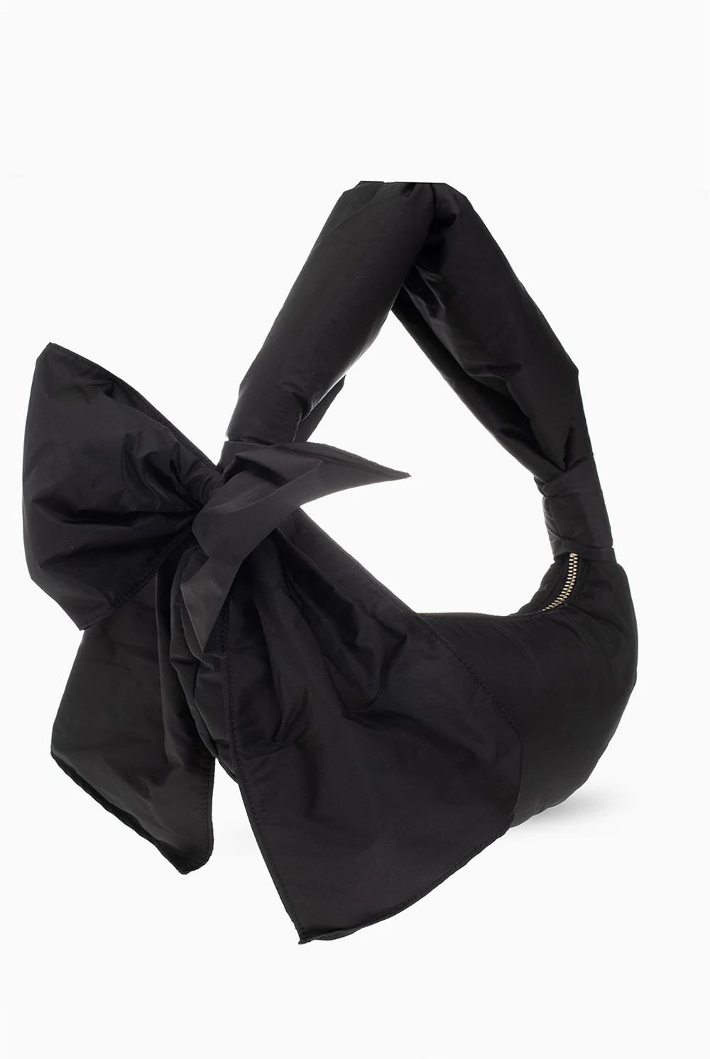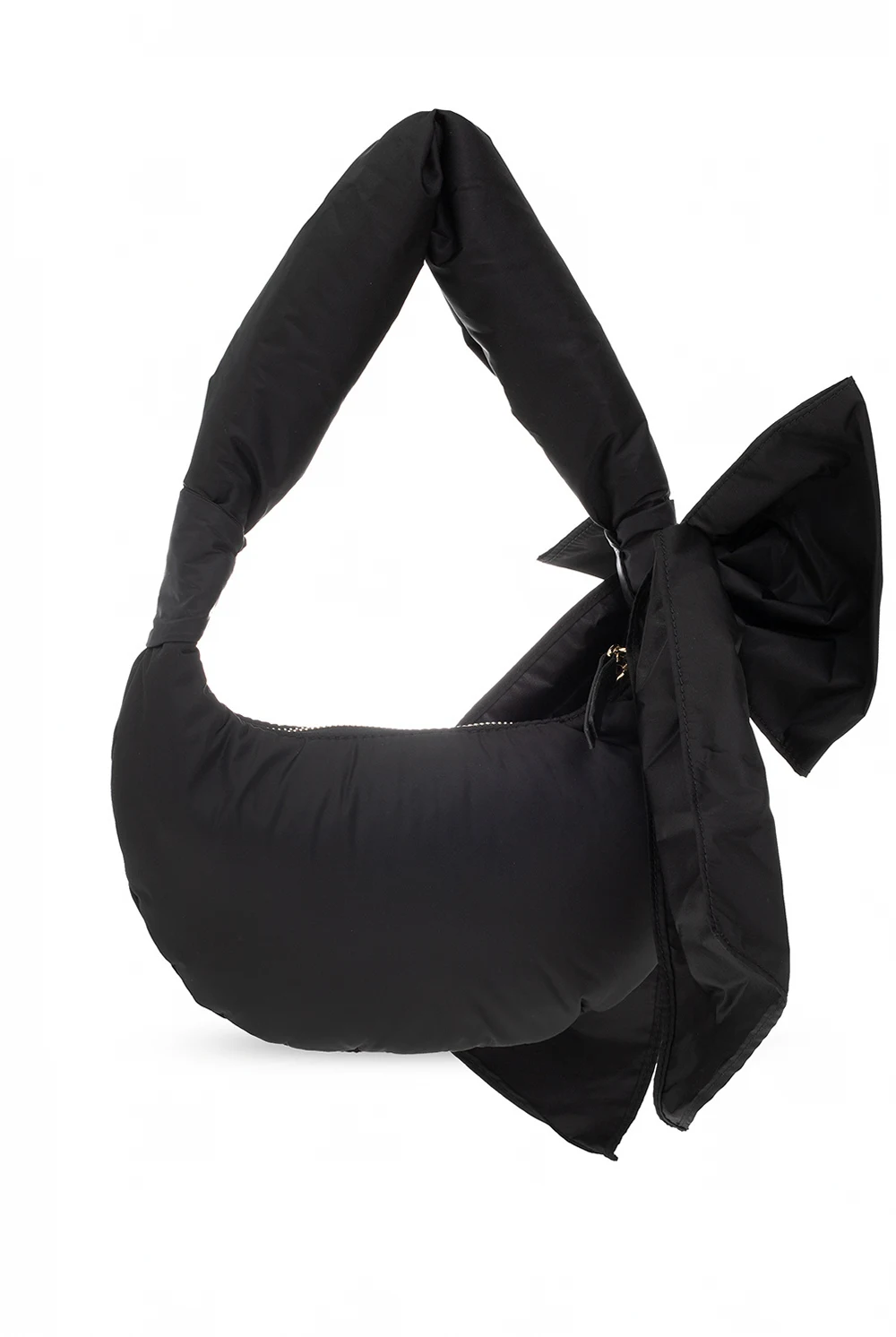 Black ‘Knot Me Up’ hobo bag from Red Valentino. Distinguished by a decorative bow, this design features a zip fastening, a fabric handle and one internal compartment. It comes with a light gold-tone pendant engraved with the brand's logo.