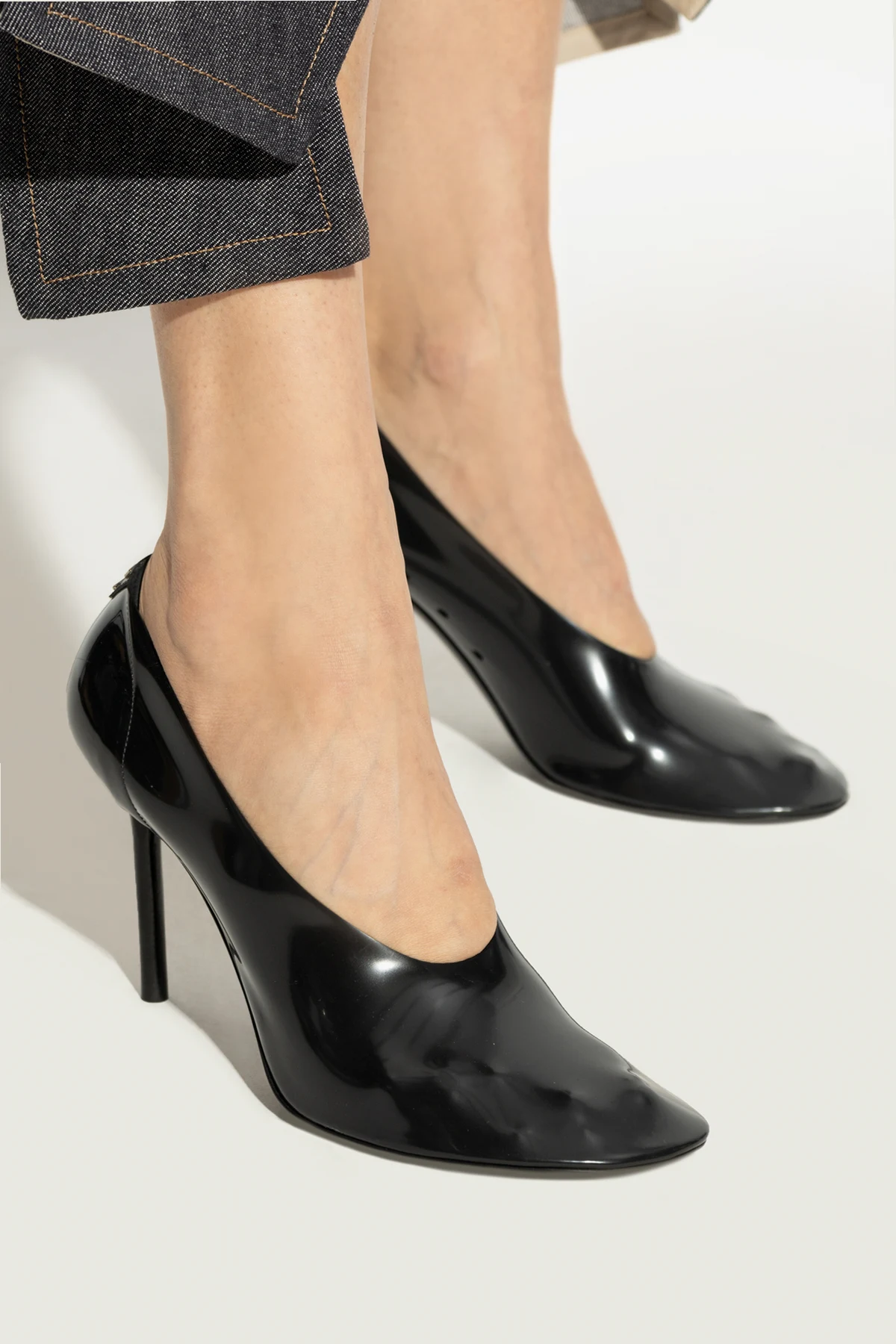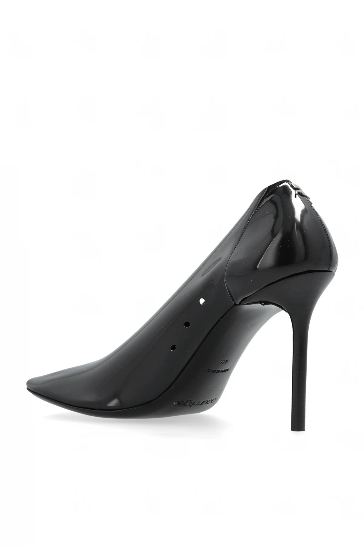 Gefertigt aus lackiertem Leder , bieten sie ein glänzendes Finish, das die Blicke auf sich zieht. Die Stilettos zeichnen sich durch das dezente Designer-Logo auf der Oberseite des Schuhs und eine elegante Schrift im Inneren aus.