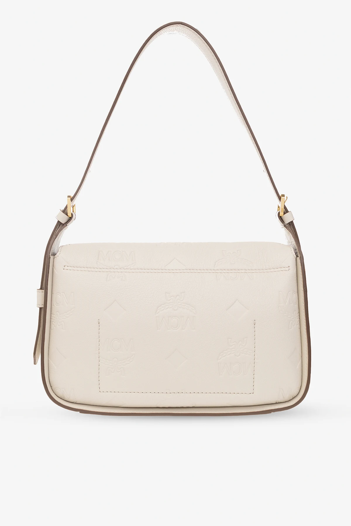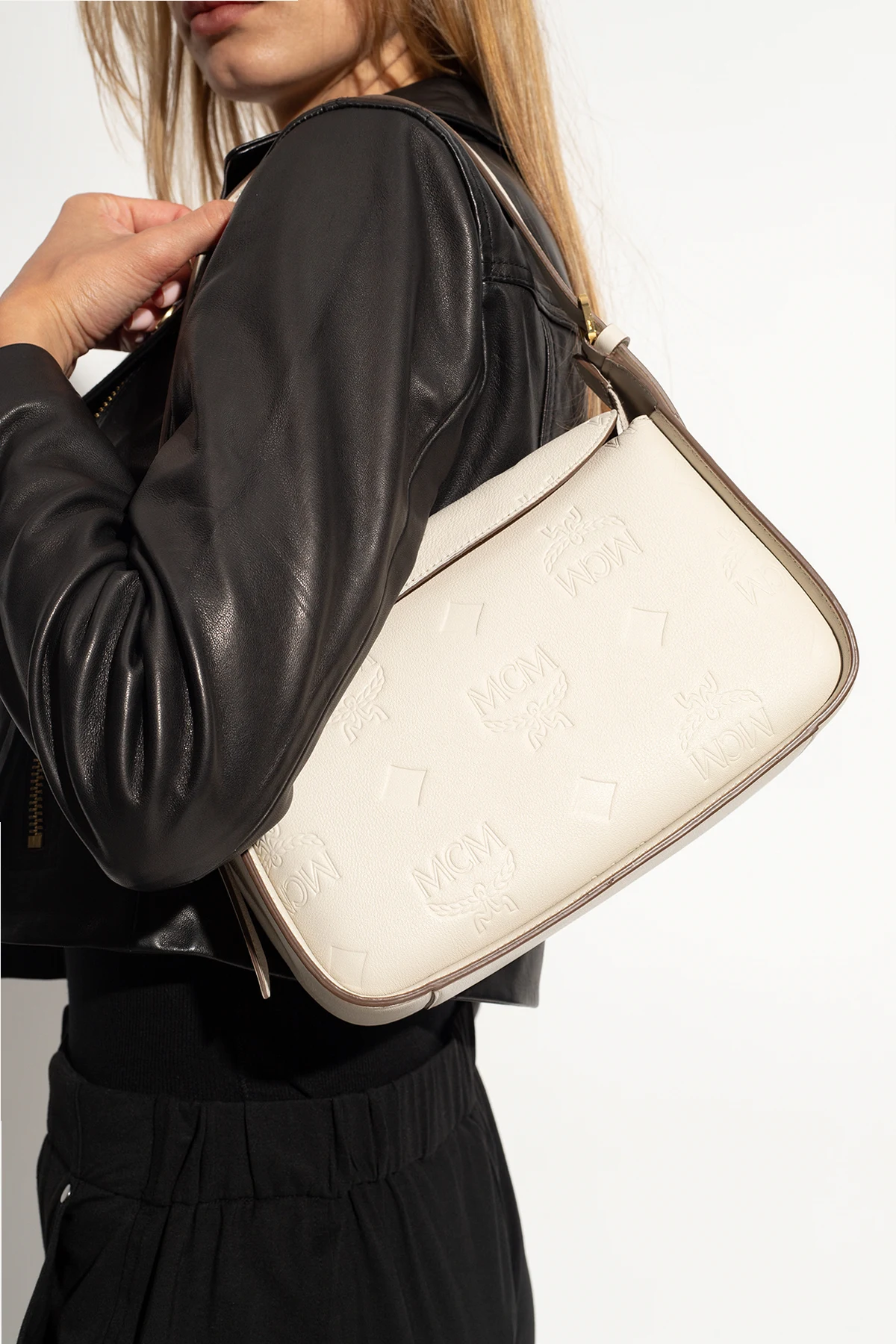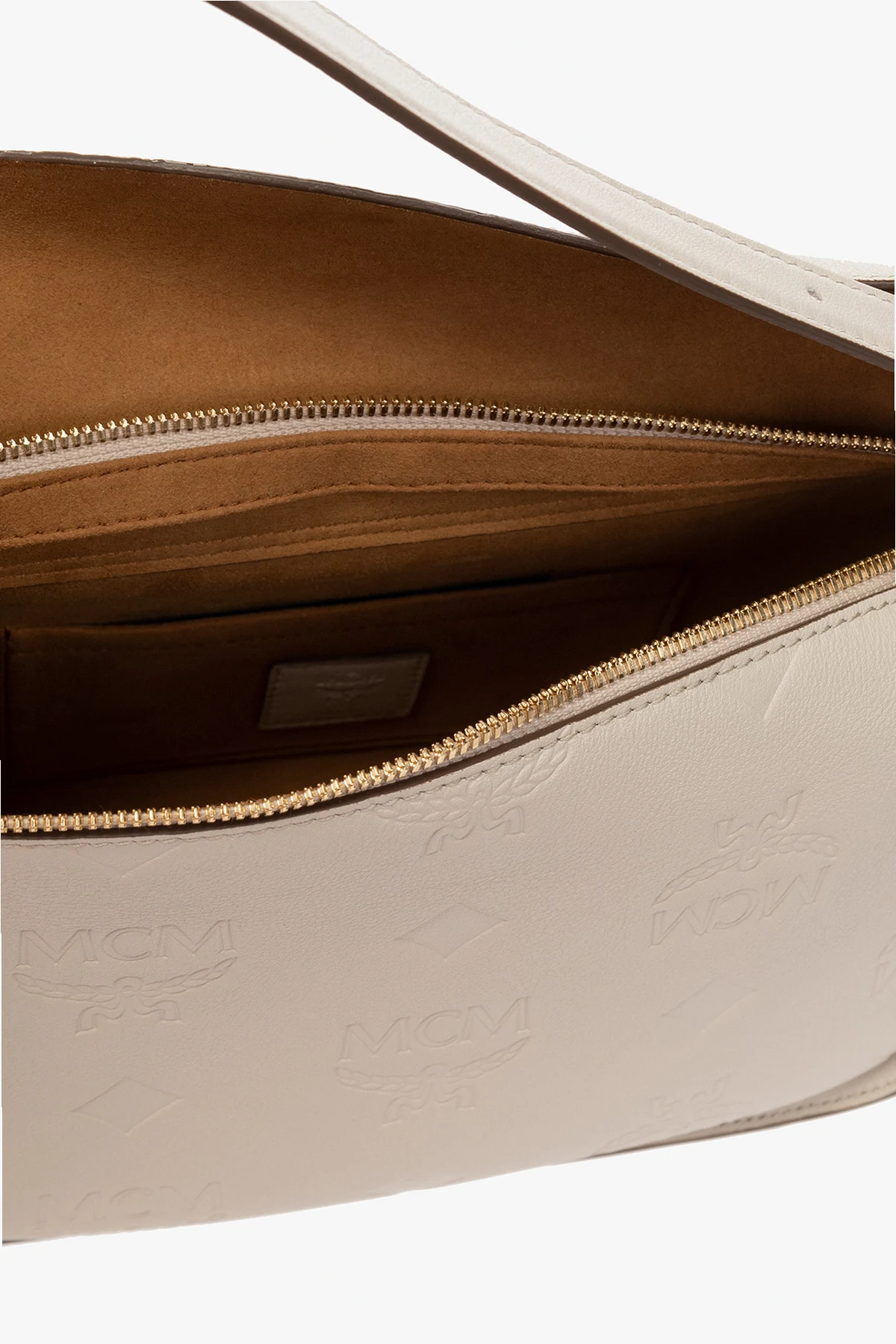 Cream ‘Aren’ hobo bag from MCM. Made of leather, this design features a zip fastening, embossed Visetos pattern, detachable and adjustable shoulder strap, gold-tone metal hardware and one internal compartment with one slip pocket.
