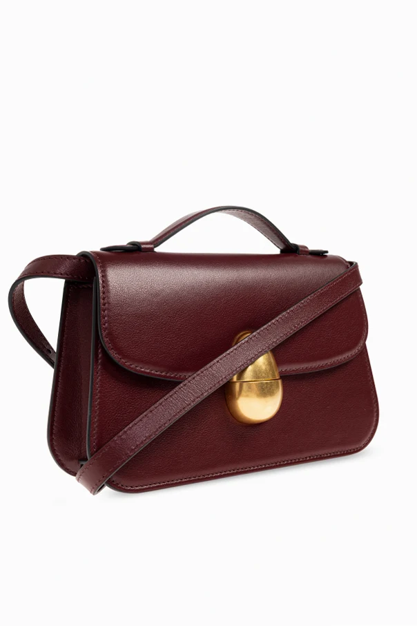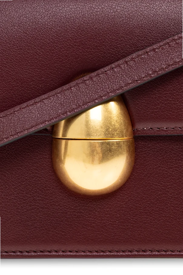 Moderner Minimalismus zeigt sich durch das Fehlen äußerer Applikationen, und das Gesamtbild wird durch einen einzigartigen, ovalen Verschluss in Goldnuance abgerundet, der einen kunstvollen Designakzent setzt. Das Innere verbirgt ein sorgfältig geprägtes, goldenes Designerlogo, das für höchste Produktqualität steht.