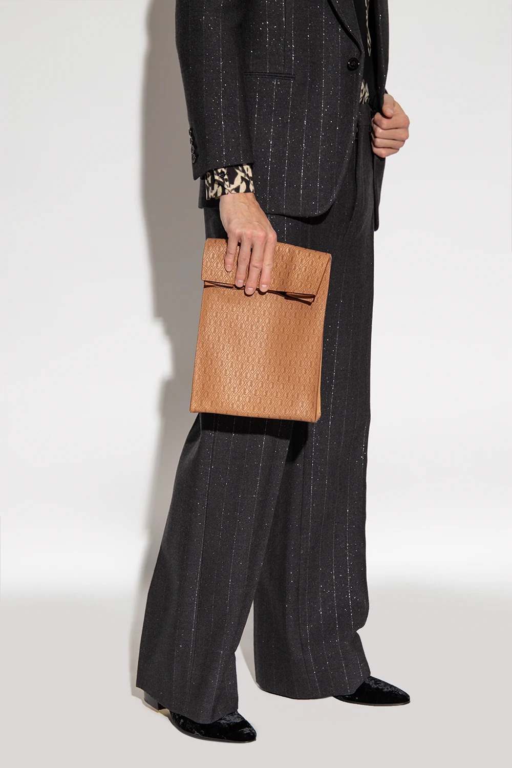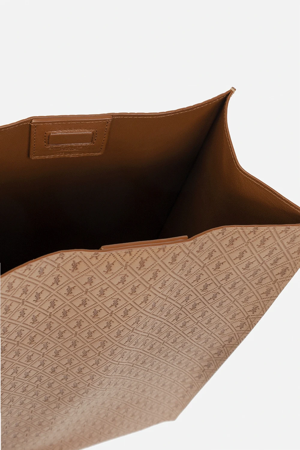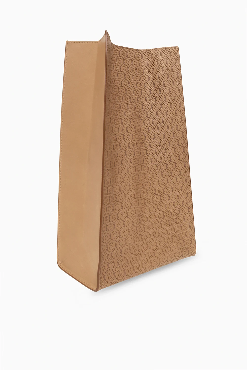 Brown ‘Deli Paper Bag’ shoulder bag from Saint Laurent. Crafted from leather with an embossed monogram pattern, this design features a magnetic fastener and one internal compartment.
