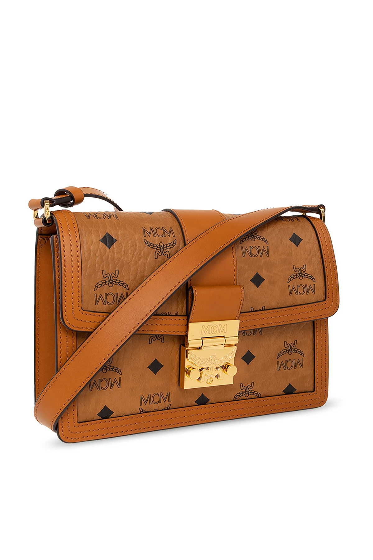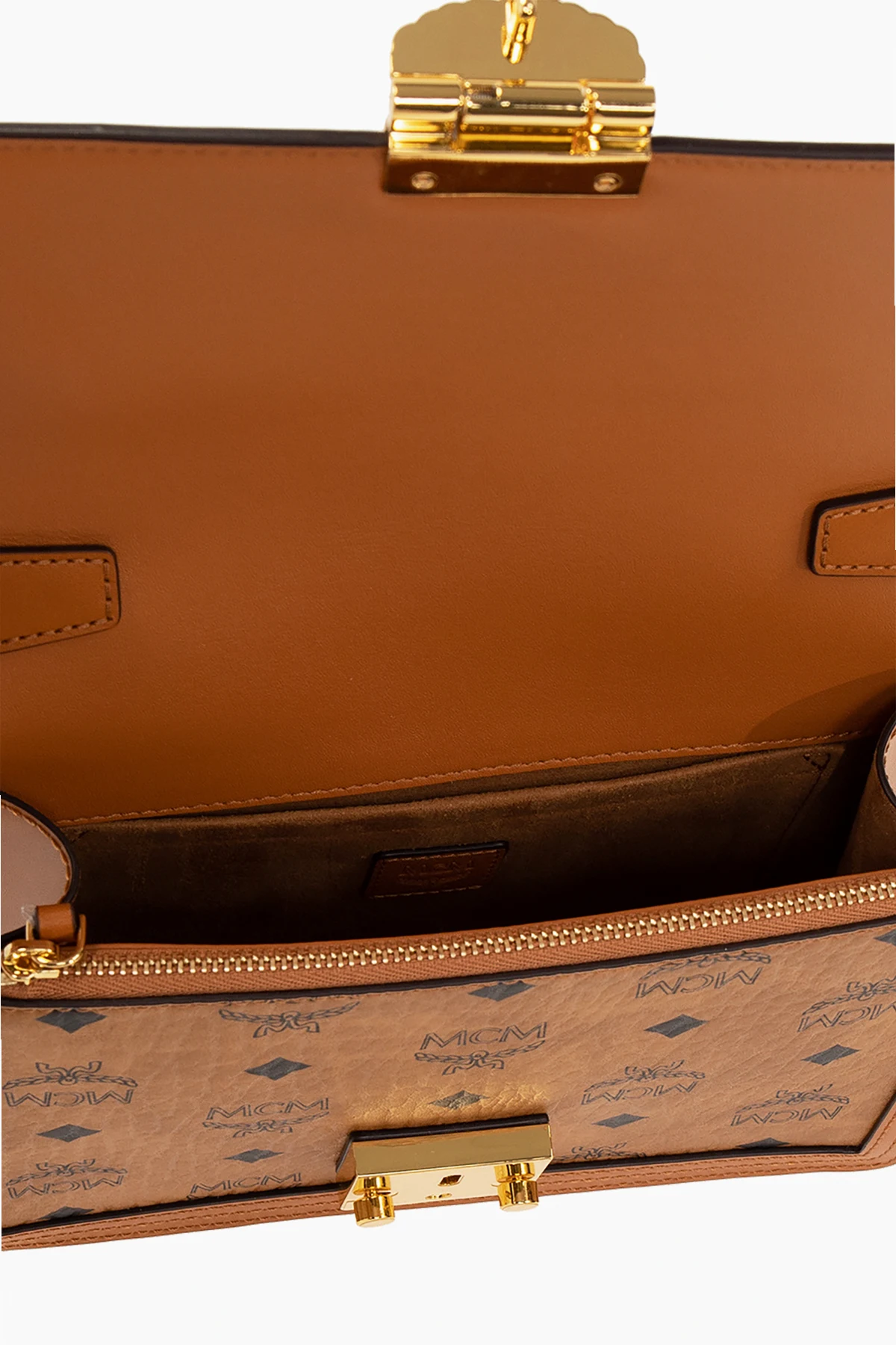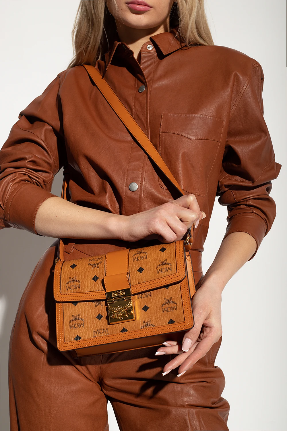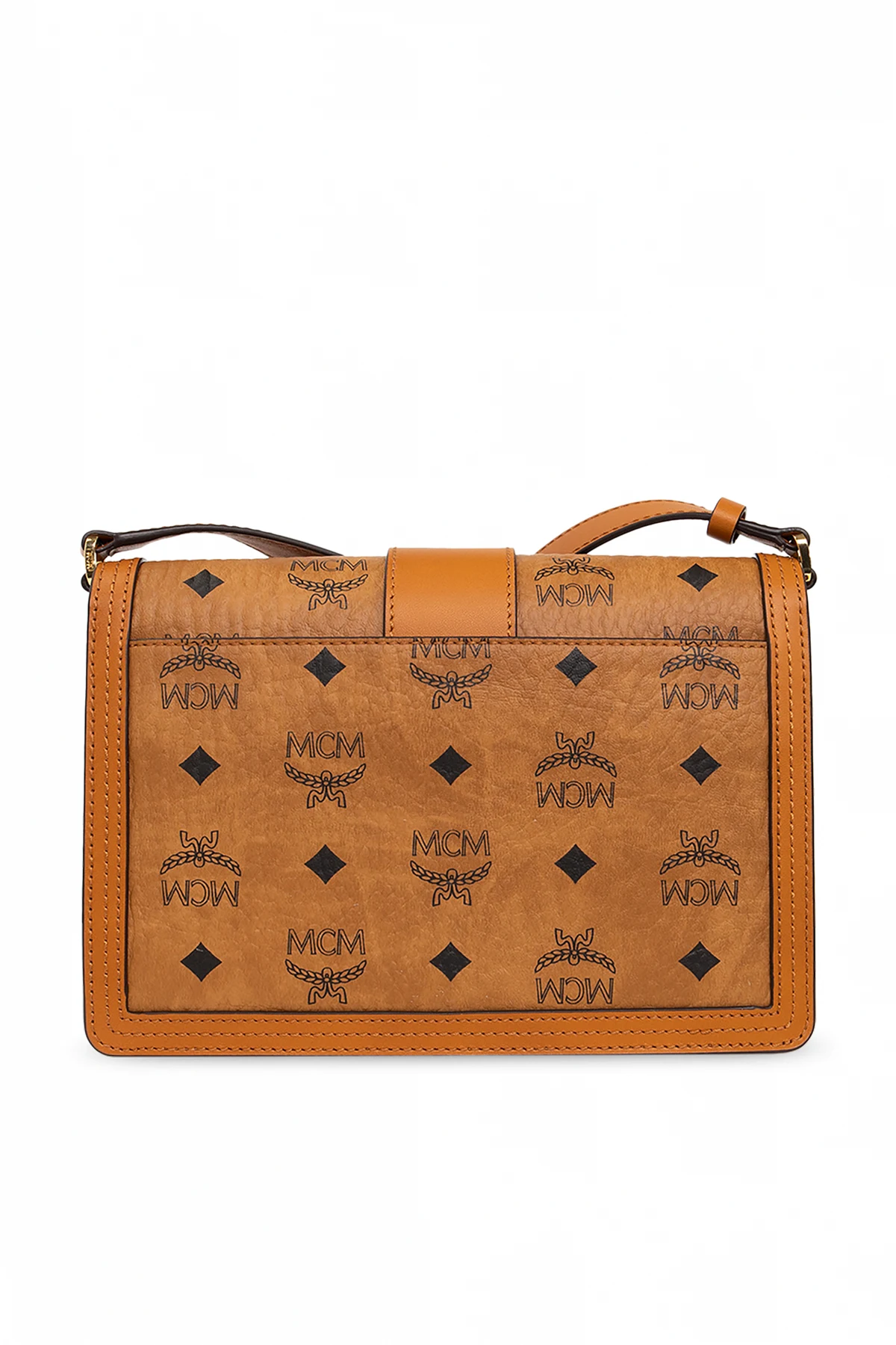 Wir präsentieren die Schultertasche ‘Tracy’ von der renommierten Marke MCM, deren Designs durch Eleganz und Luxus beeindrucken. Diese braune Tasche in rechteckiger Form ist ein perfektes Beispiel für raffinierten Stil. Verziert mit schwarzen Mustern, einschließlich des MCM-Logos und Rauten, bringt sie ein Element raffinierter Avantgarde.