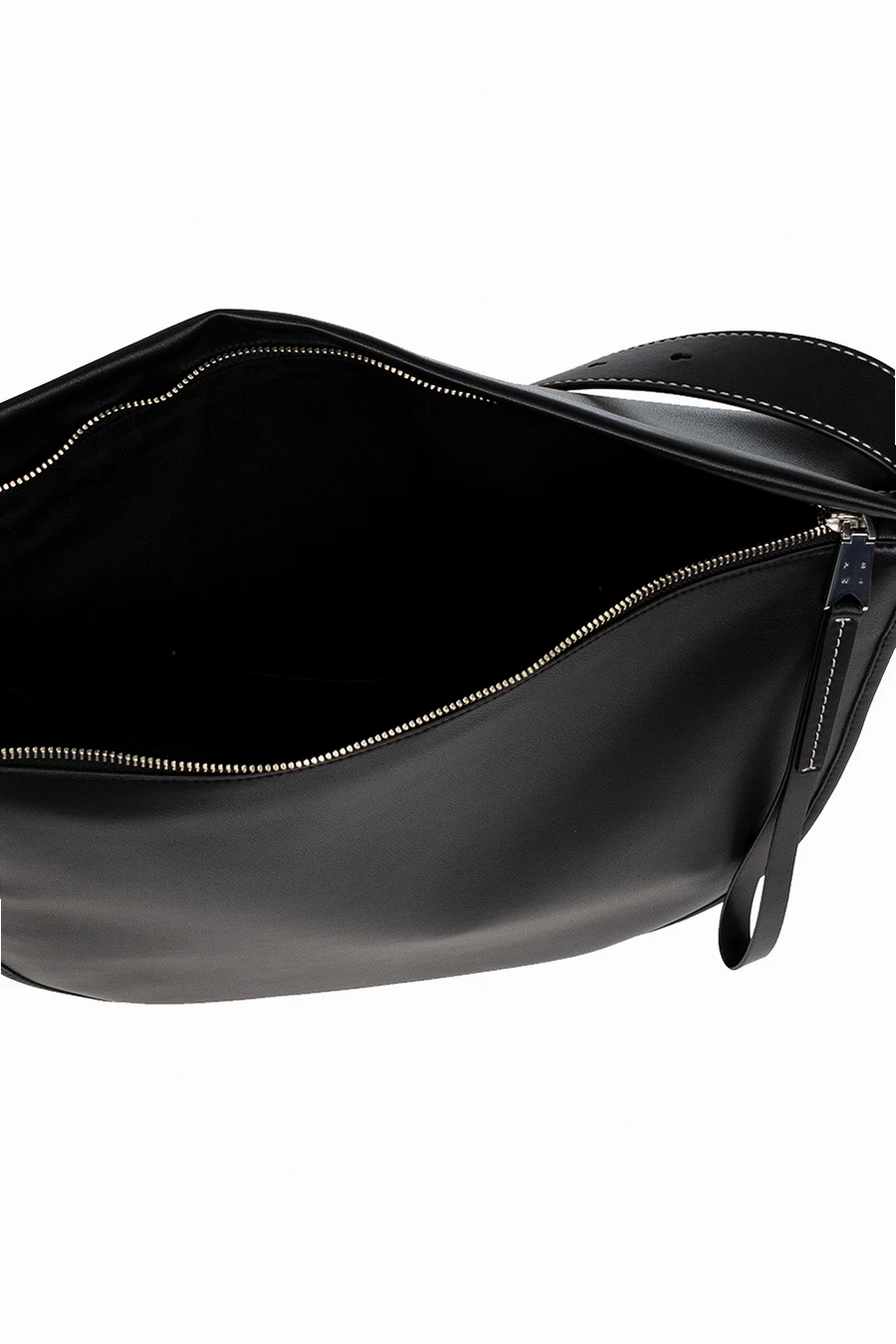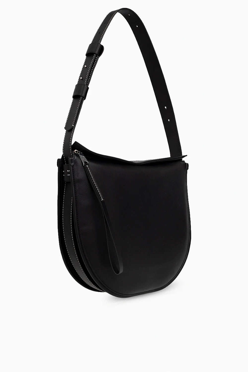 Black ‘Baxter’ shoulder bag from Proenza Schouler White Label. Crafted from calf leather, this model features a zip fastening, white logo print, decorative straps on the sides, adjustable shoulder straps, silver-tone metal hardware and one internal compartment with one slip pocket and a detachable zipped pouch.