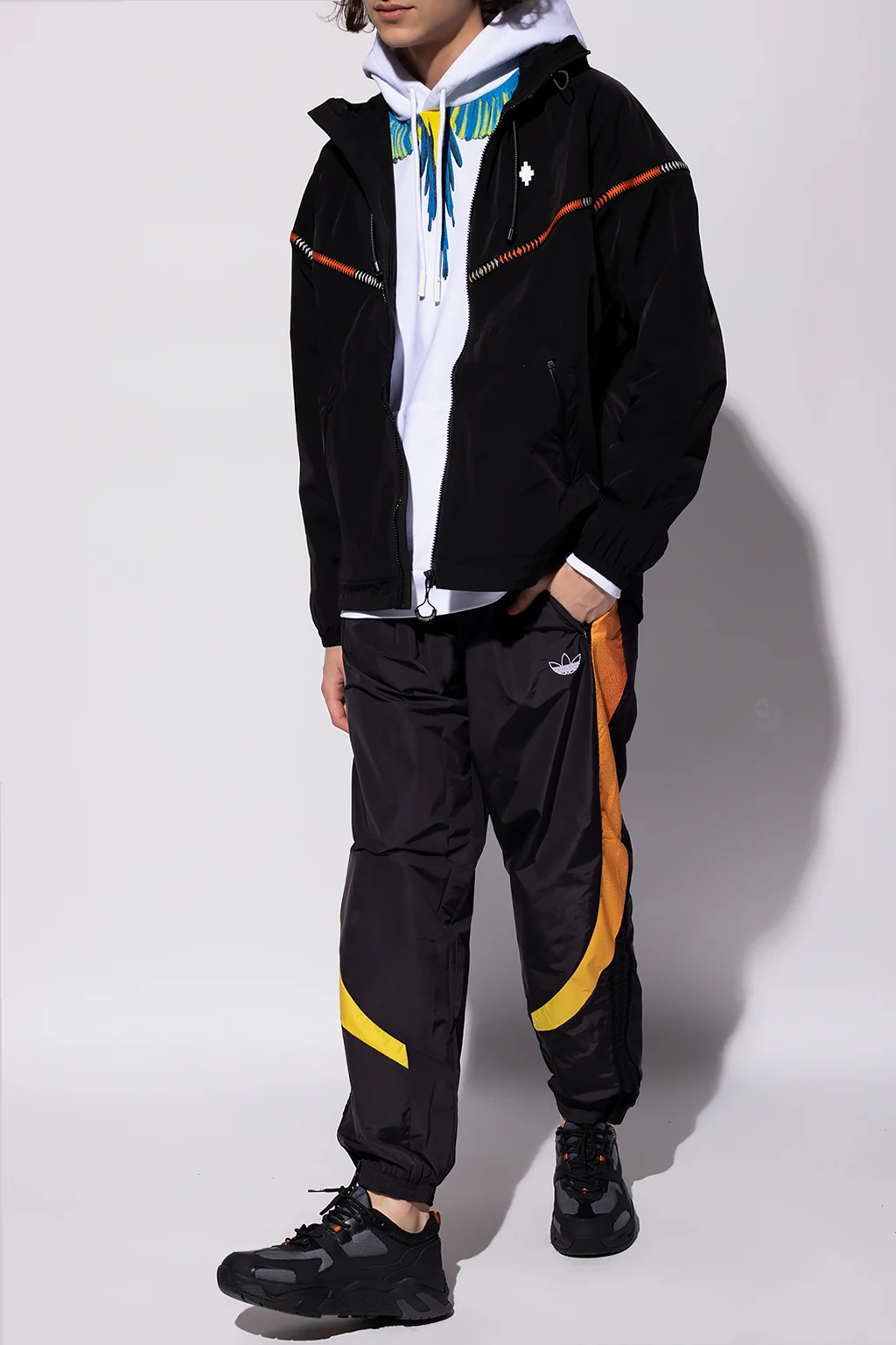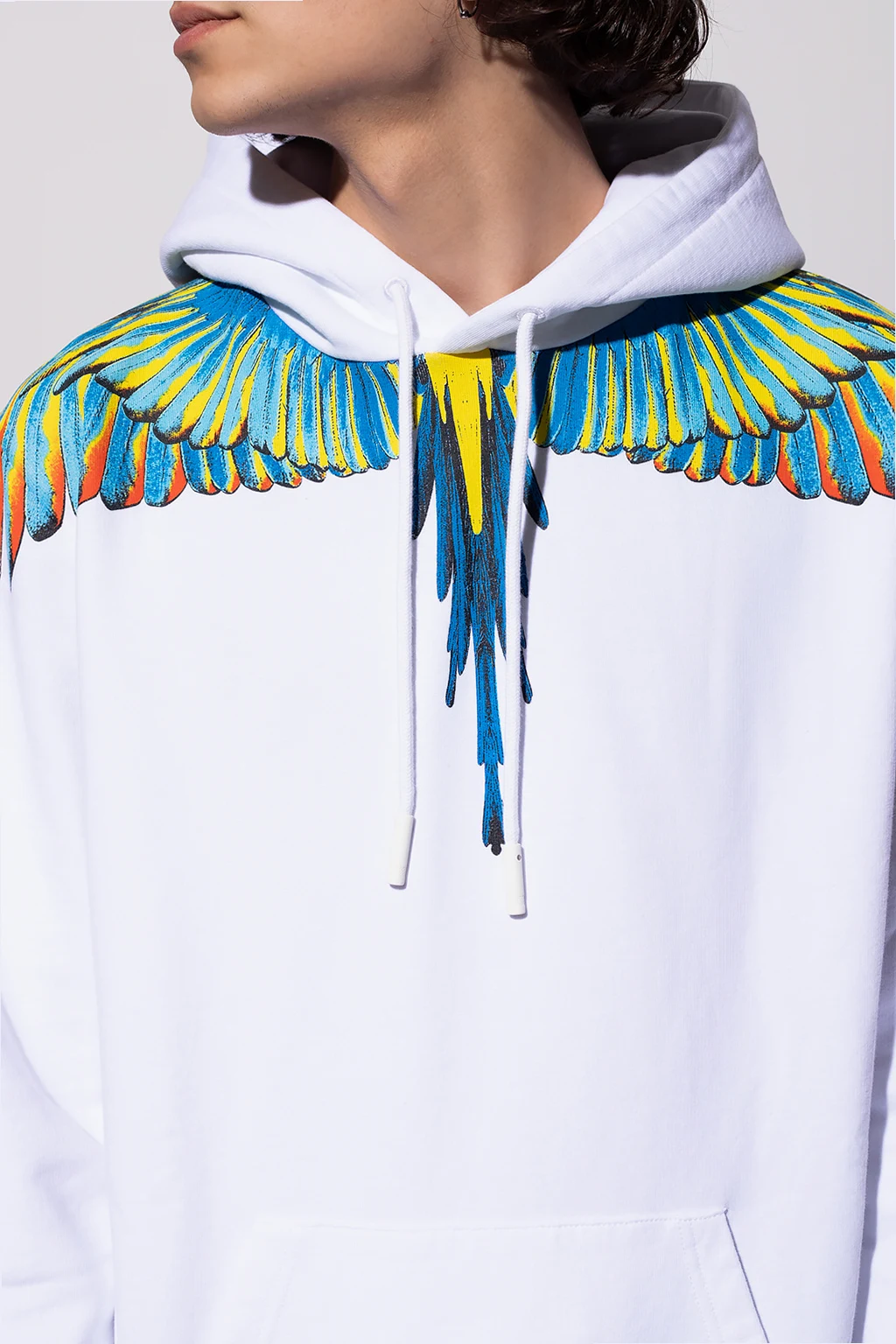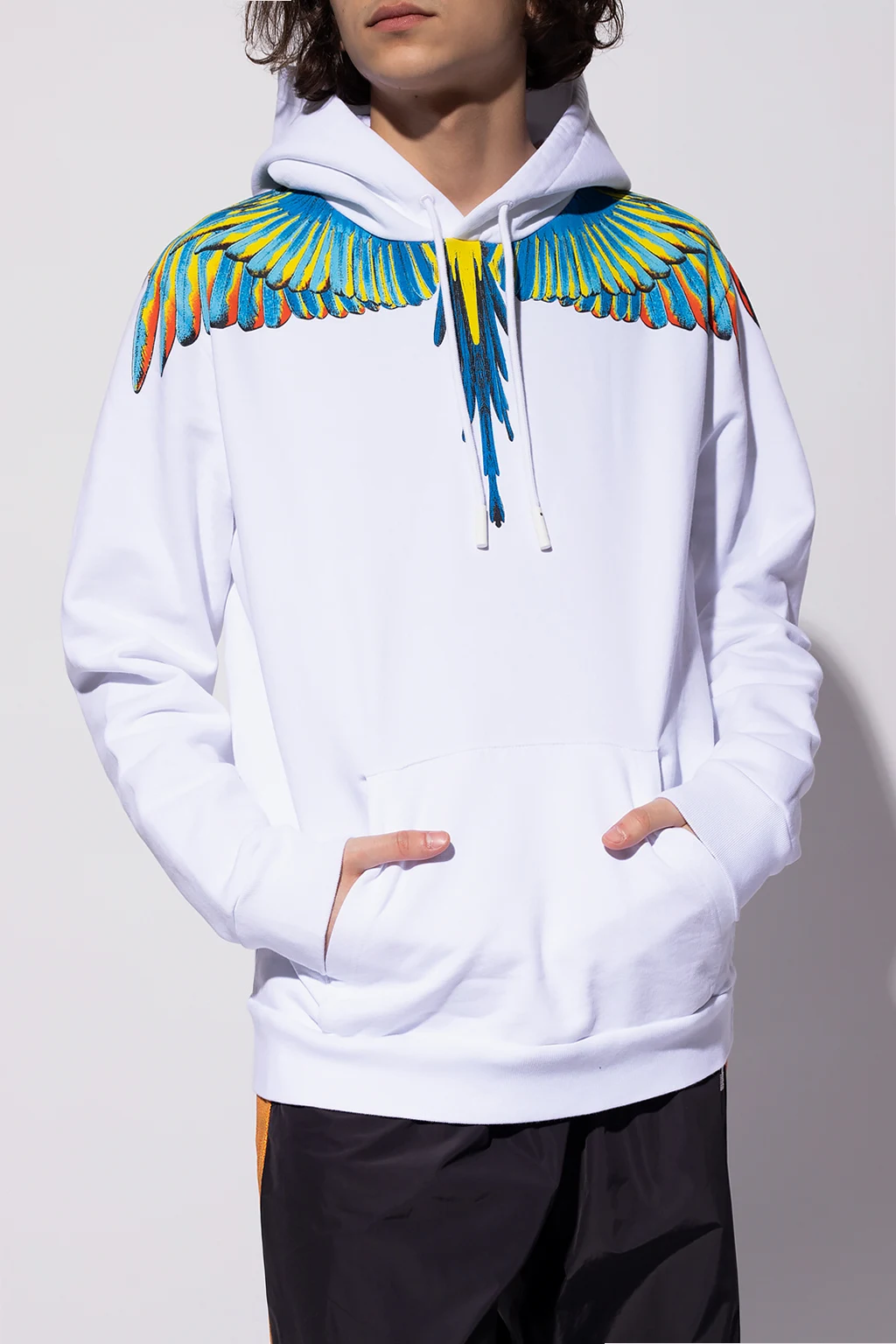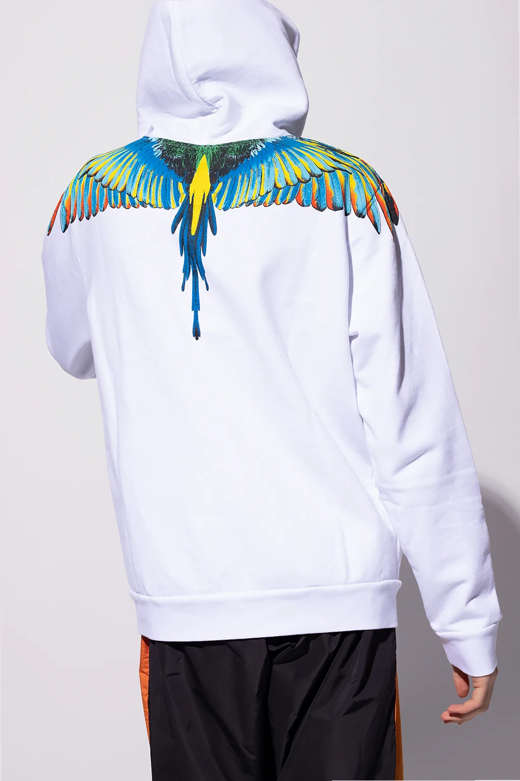 White sweatshirt with a drawcord-adjustable hood from Marcelo Burlon. Crafted from cotton jersey, this hoodie showcases a colourful graphic print with the brand's logo, a kangaroo pocket and a ribbed bottom hem and cuffs.