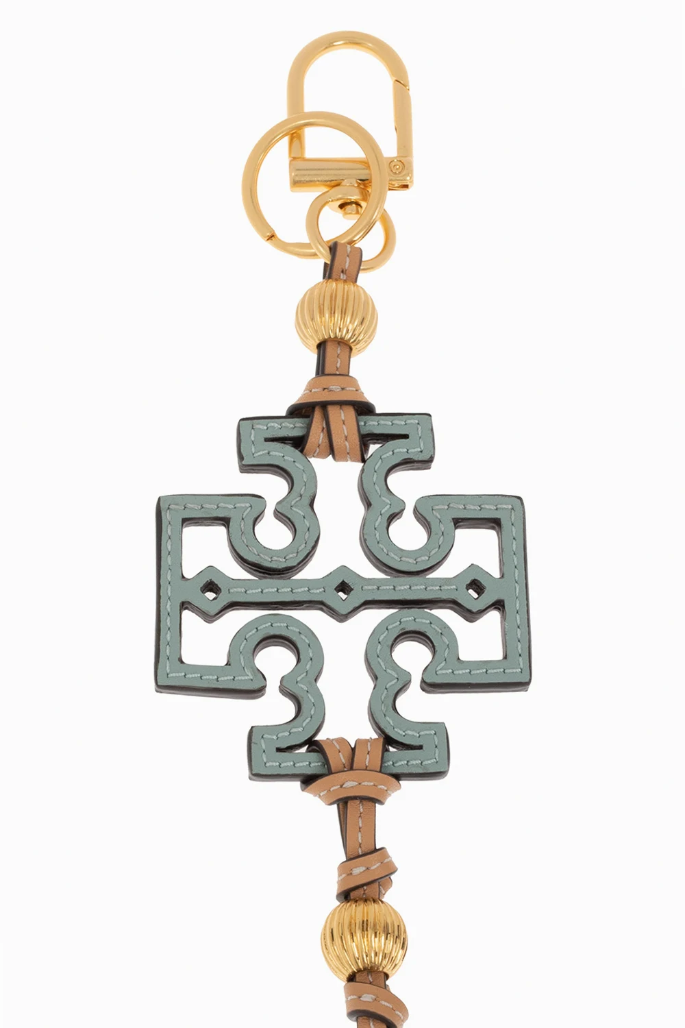 Multicoloured keyring from Tory Burch. Made of cow leather, this item showcases an iconic ‘Double T’ motif, a lobster clasp fastening, two gold-tone applications and a leather tie strap.