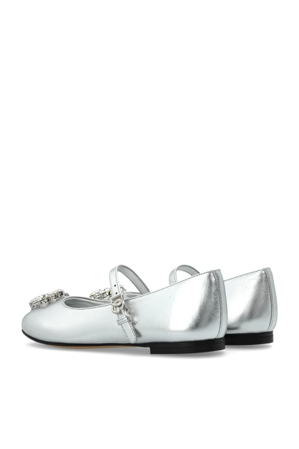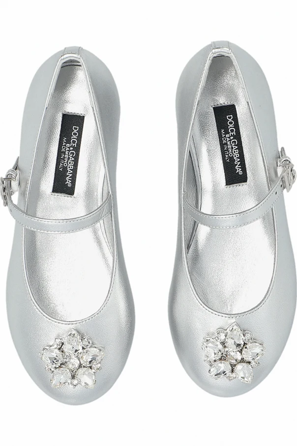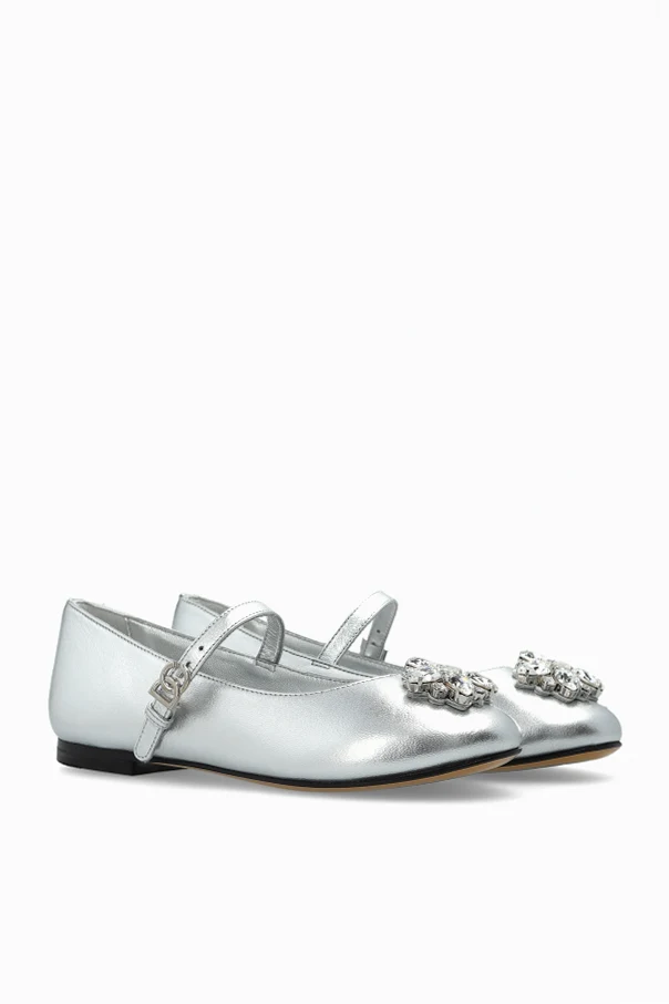 Ballerinas mit glänzender Applikation von Dolce & Gabbana Kids sind die Essenz kindlicher Eleganz, inspiriert von Klassik und modernem Minimalismus. Der auffällige, silberne Glanz der lackierten Oberfläche unterstreicht das Prestige und die außergewöhnliche Liebe zum Detail, die für Kollektionen der höchsten Klasse typisch ist.
