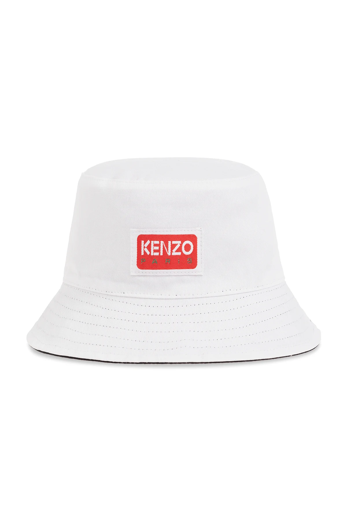 Reversible bucket hat in white and black from Kenzo. Made of cotton, this item showcases an embroidered logo and a logo patch.