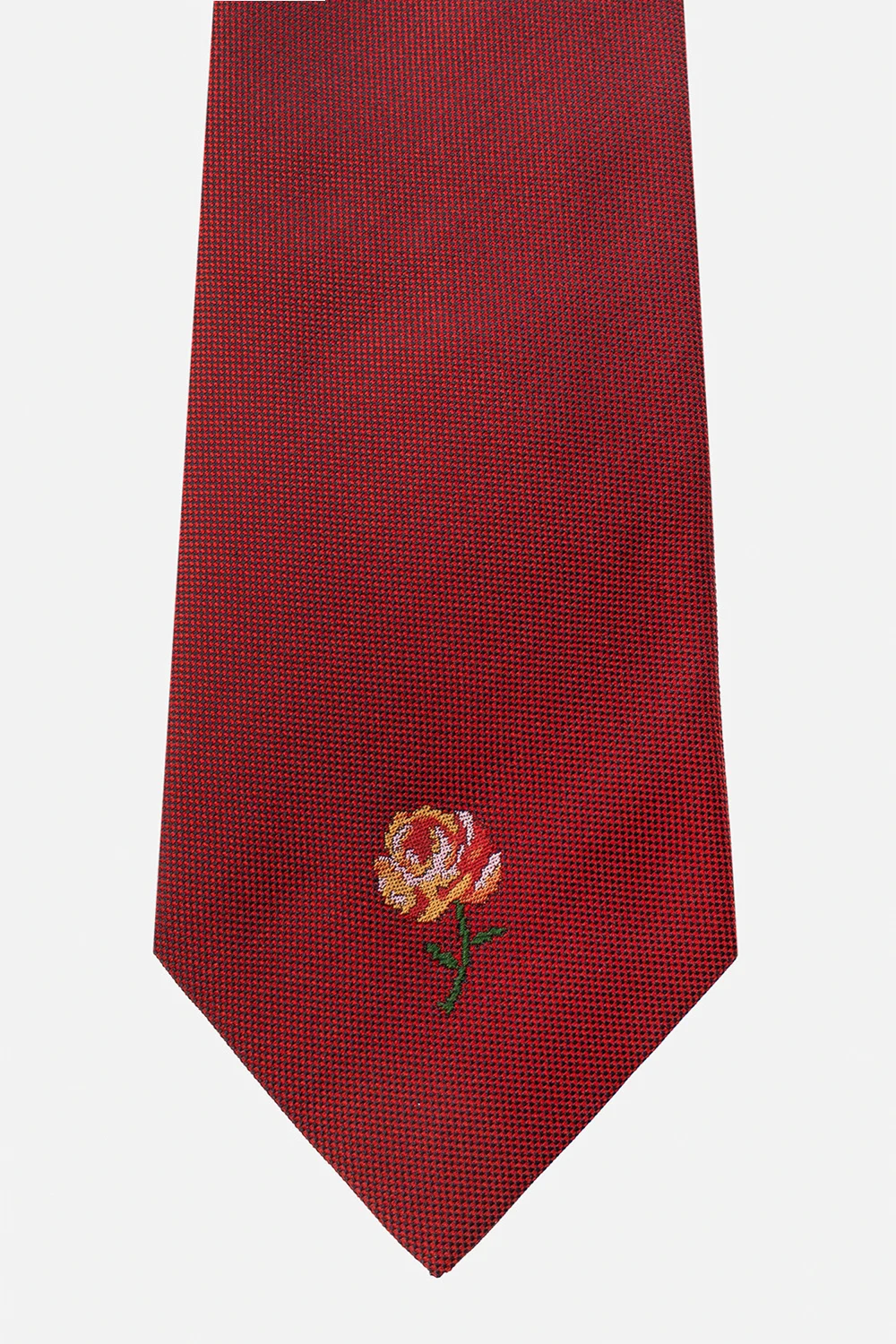 Red tie from Kenzo. Made of silk, this item is decorated with a rose embroidery in red, yellow and green.