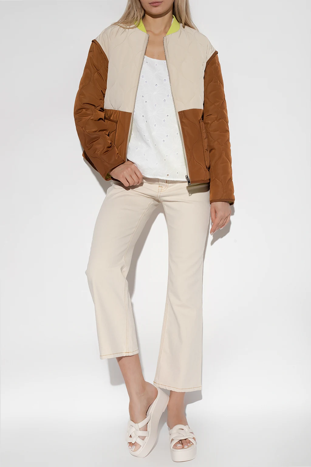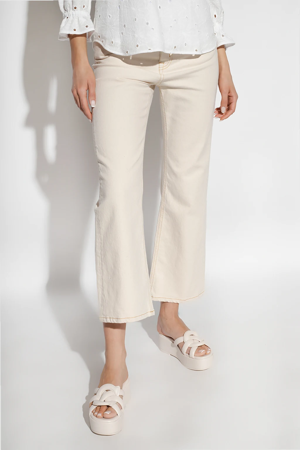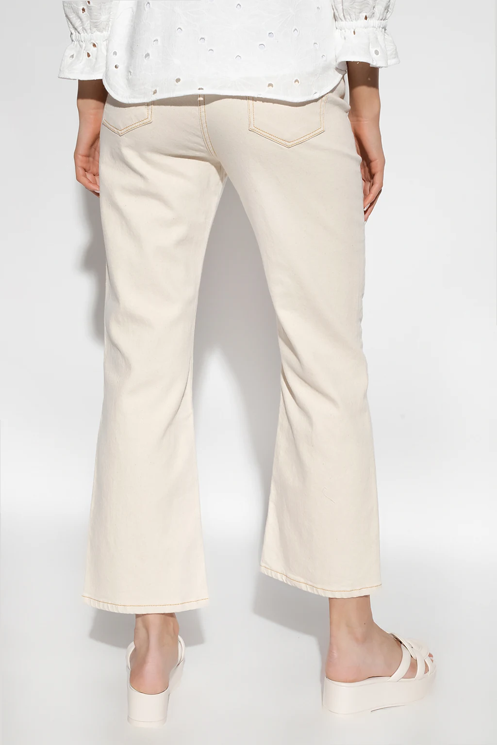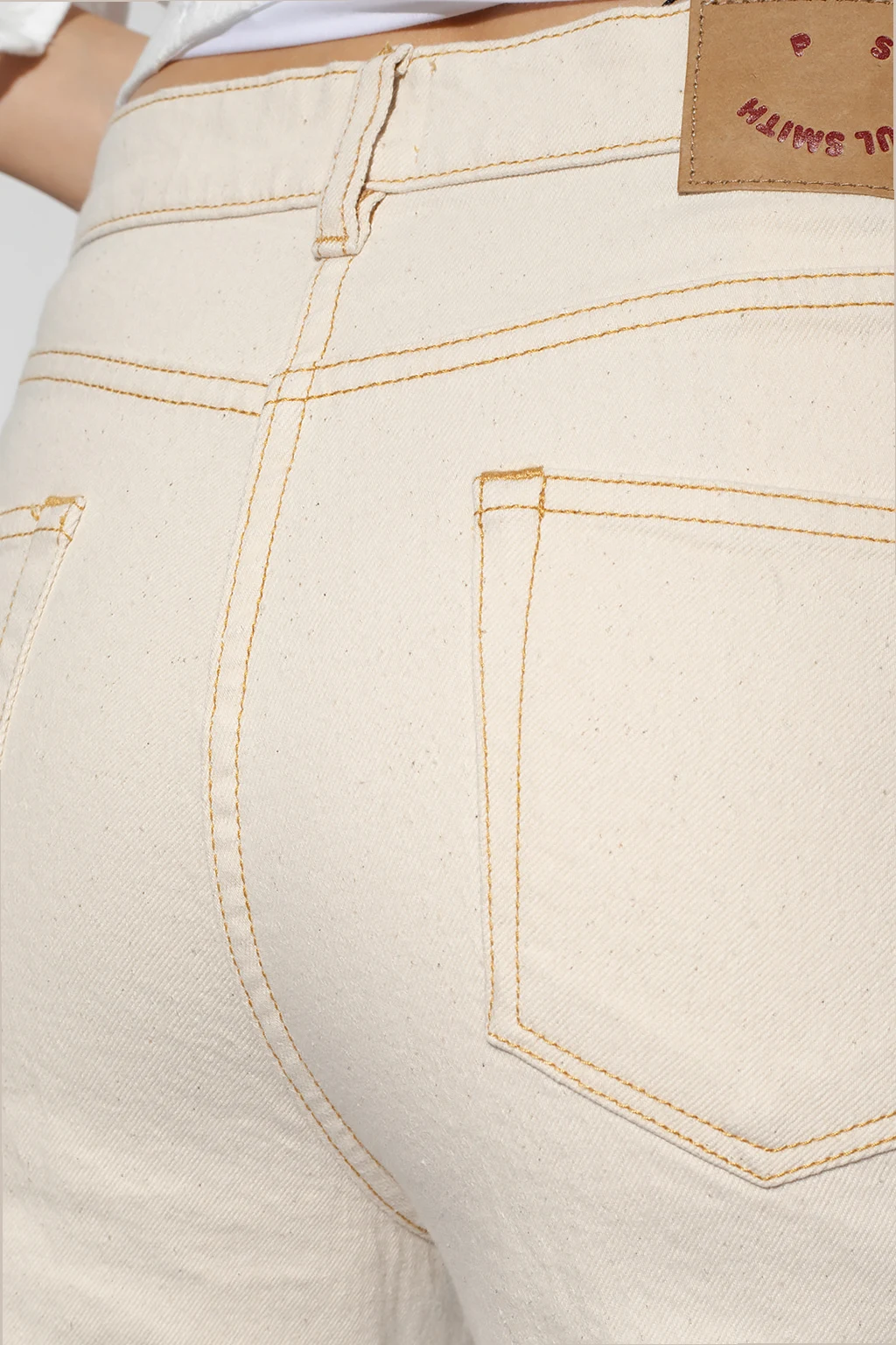 Cream high-waisted jeans from PS Paul Smith. Crafted from organic cotton, this pair features a button and zip closure, brown logo patch at the back, three front pockets, two back pockets, stitching details and kick flare legs.