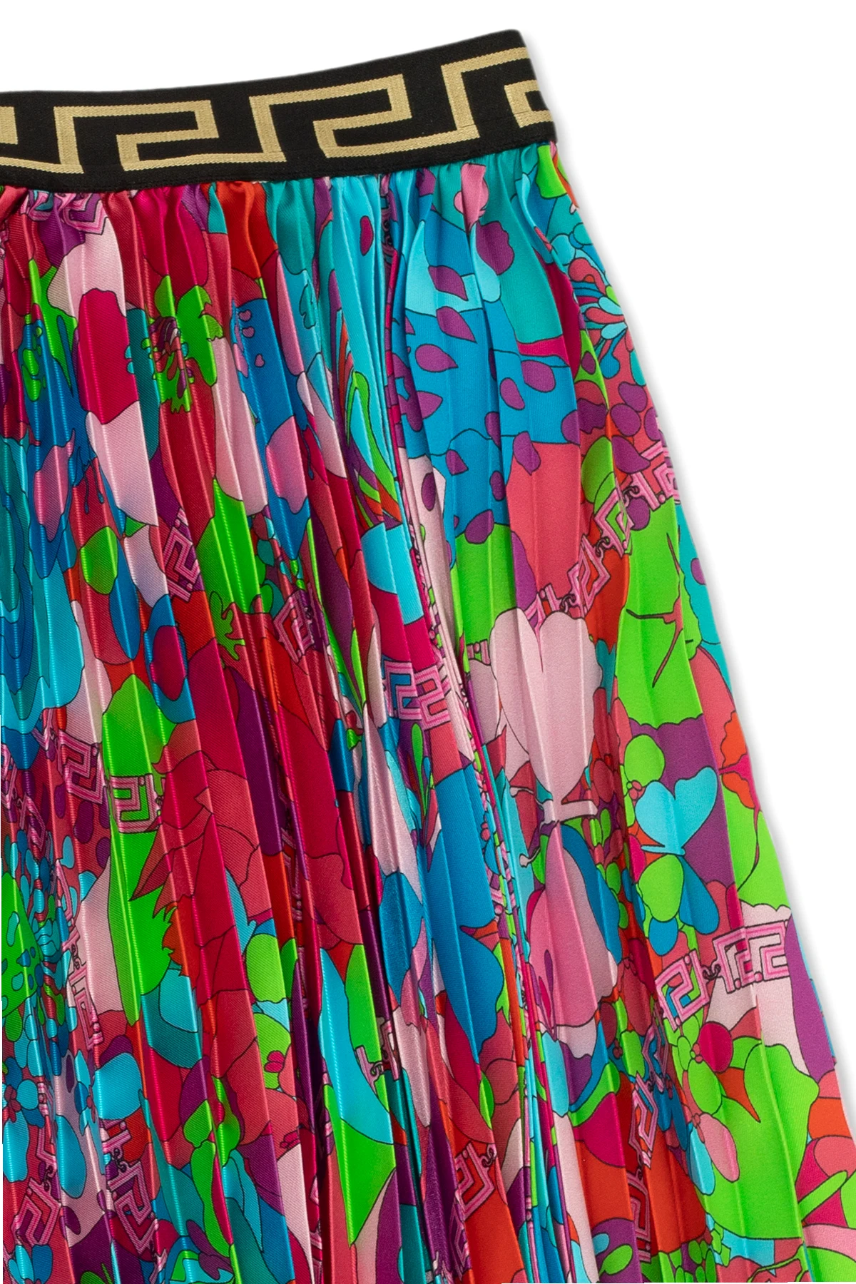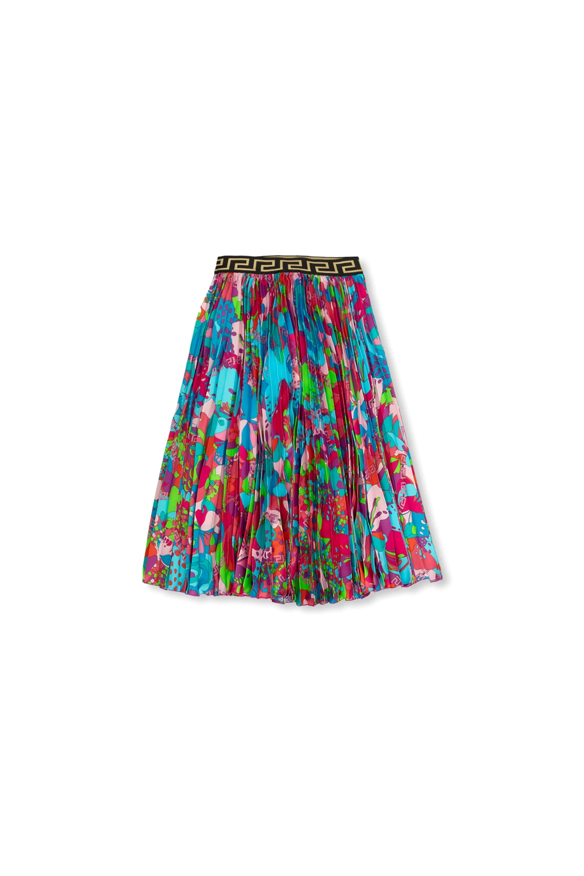 Multicolored pleated skirt from Versace Kids. This pair features an elastic waistband and a Floral Summer logo pattern.