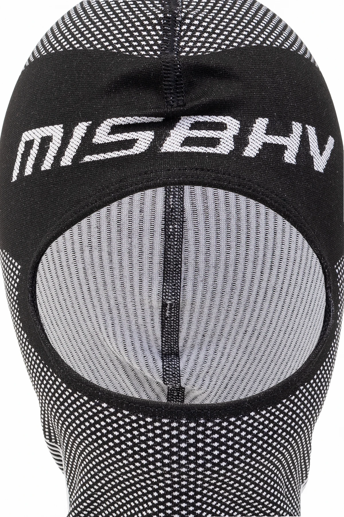 Black and white balaclava from MISBHV, the ‘Sport’ collection. Embellished with a logo pattern, this item features an elasticized hem and cutout eyes.