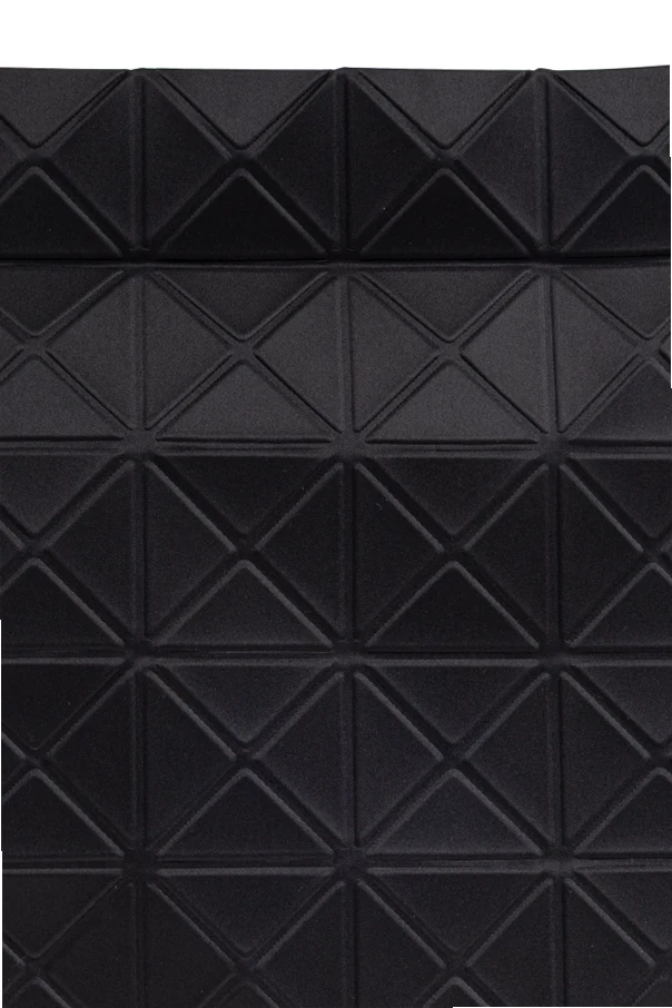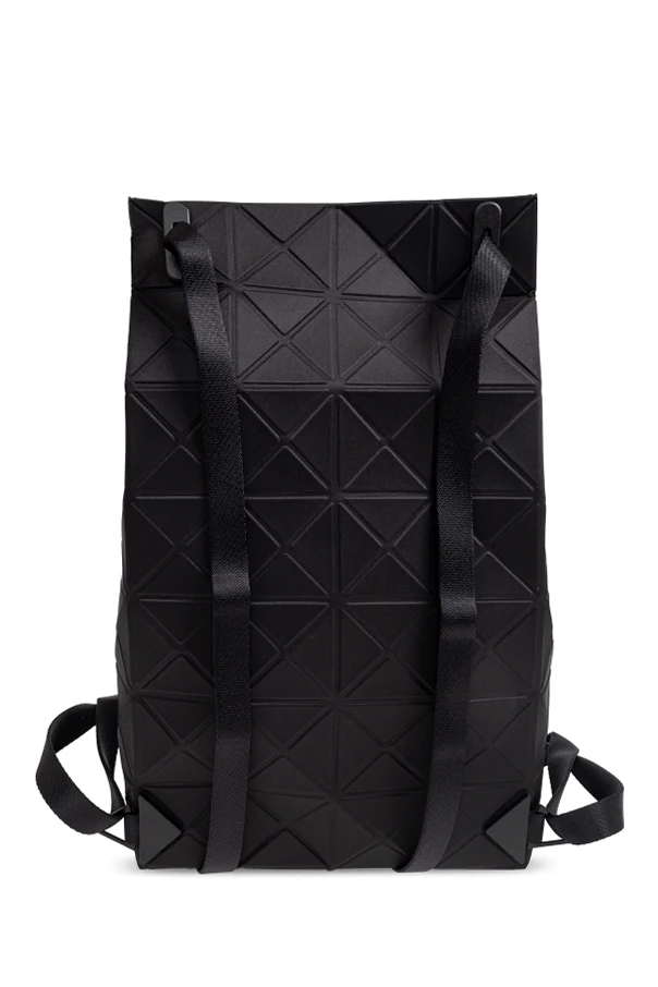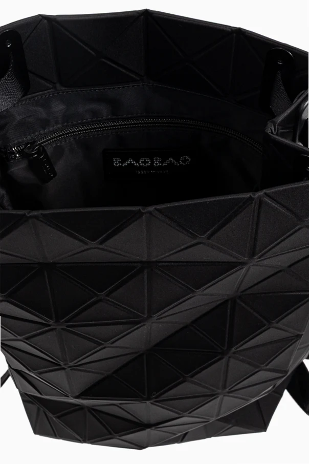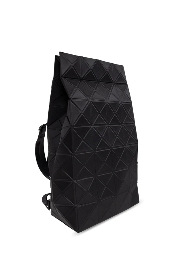 Rucksack mit Muster der Marke Bao Bao Issey Miyake ist die Quintessenz moderner Eleganz und eines experimentellen Ansatzes an die Formgebung. Das Modell besticht durch die schwarze Farbe sowie die geometrische, rechteckige Silhouette mit präzise definierten, scharfen Kanten. Ein raffinierter, dreidimensionaler Dreieck-Rhombus-Muster bedeckt die gesamte Oberfläche und erzeugt einen Effekt, der an ein modernes Mosaik erinnert.