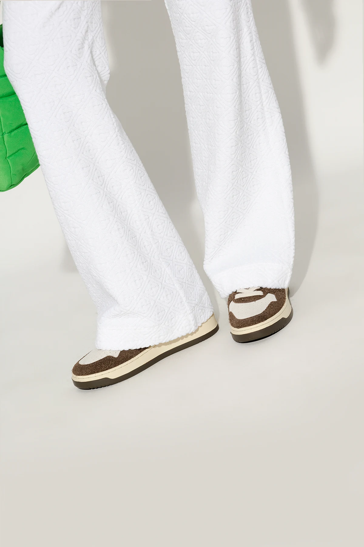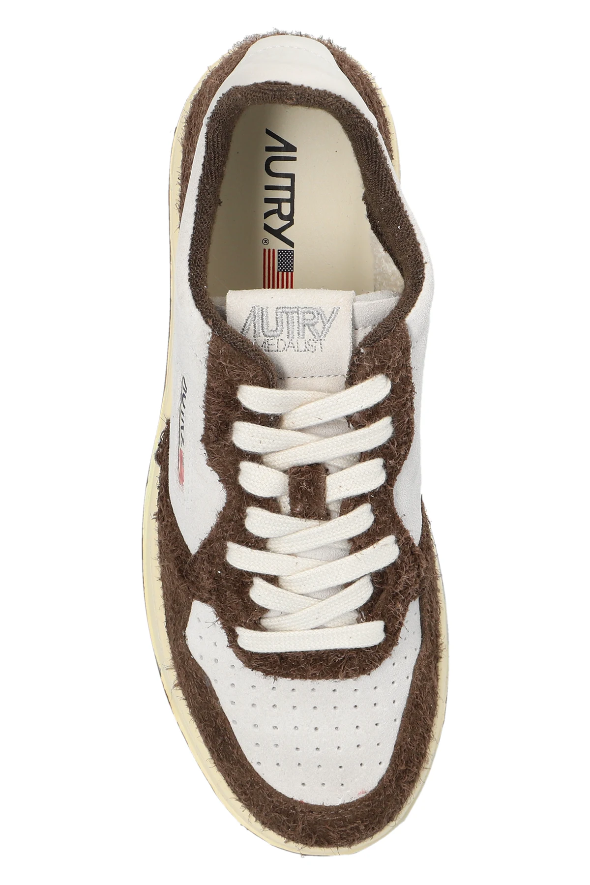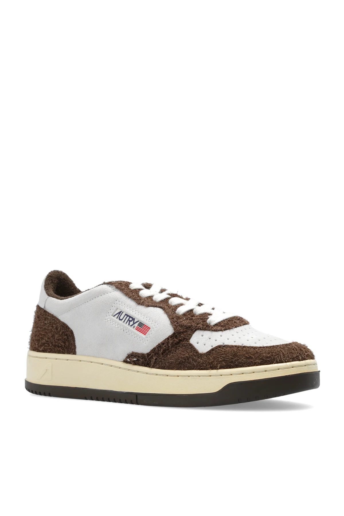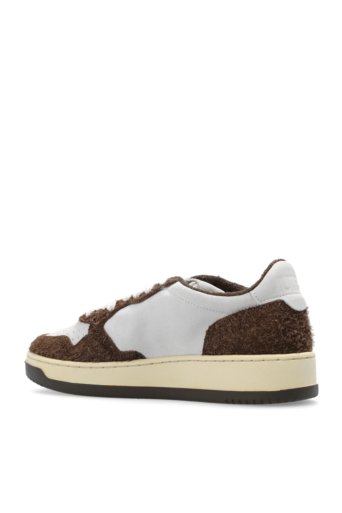 Brown and light grey ‘AUMM’ sneakers from Autry. Crafted from suede and textured suede, this lace-up model sits on a cream and brown rubber sole and showcases the brand's logo and perforations on the toe.