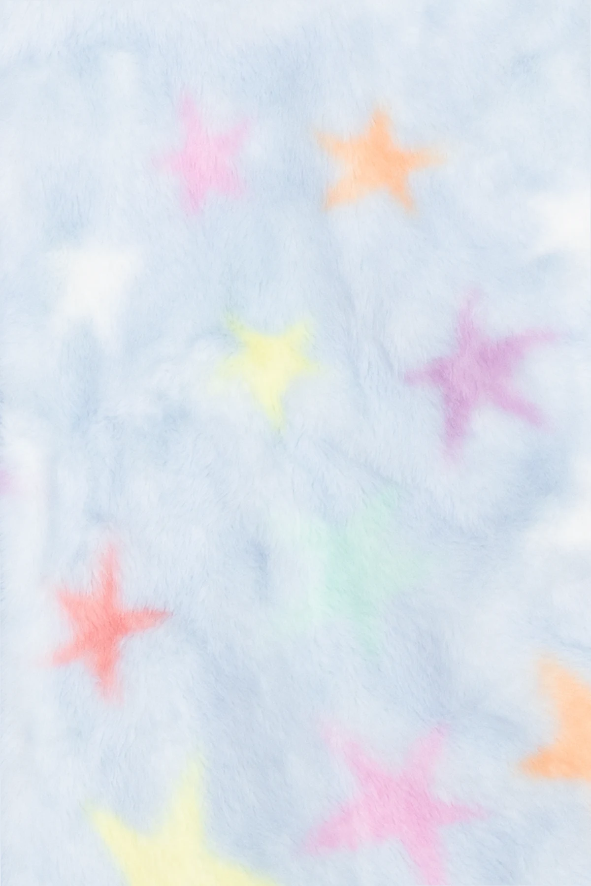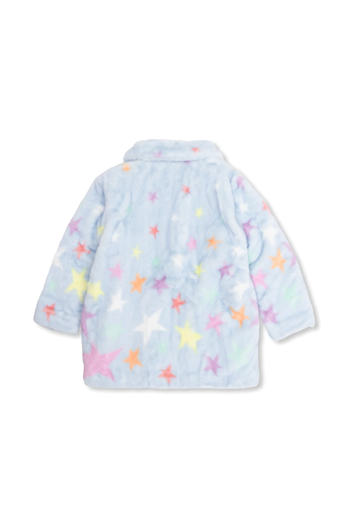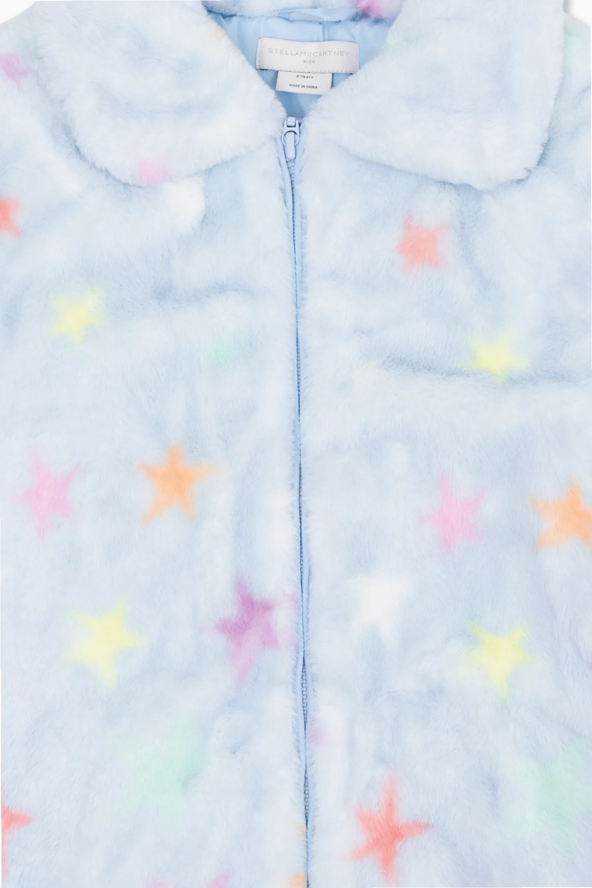 Light blue jacket from Stella McCartney Kids. Made of faux fur, this garment features a zip fastening, multicolored star pattern and two slip pockets.