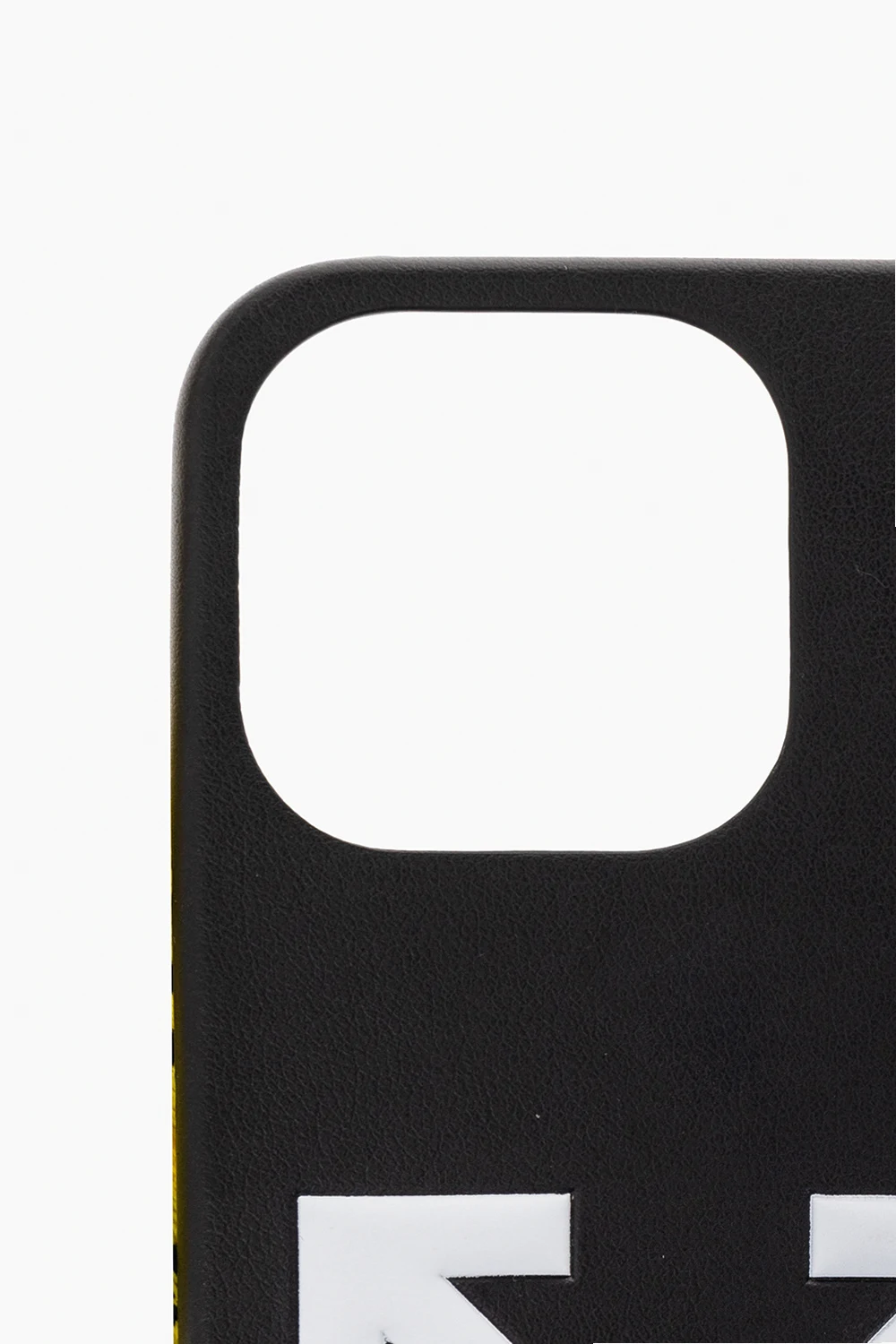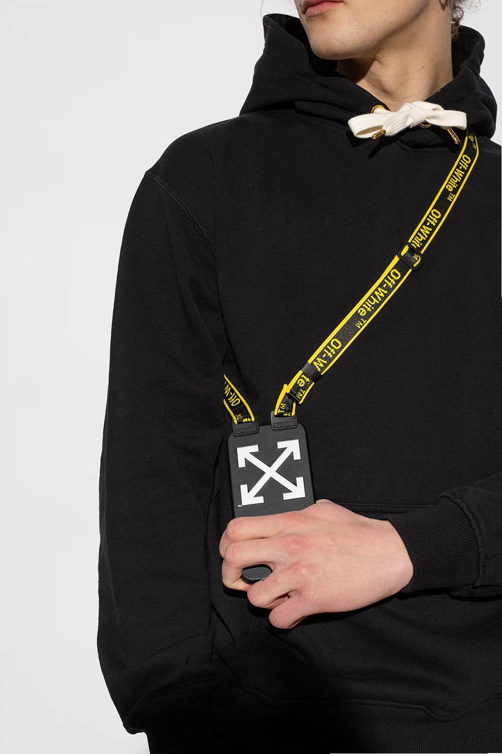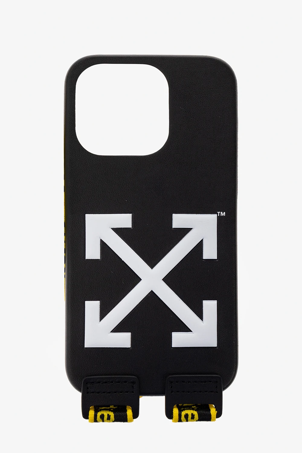 Black iPhone 14 Pro case from Off-White. Decorated with a white logo, this design features an adjustable strap with a logo embroidery.