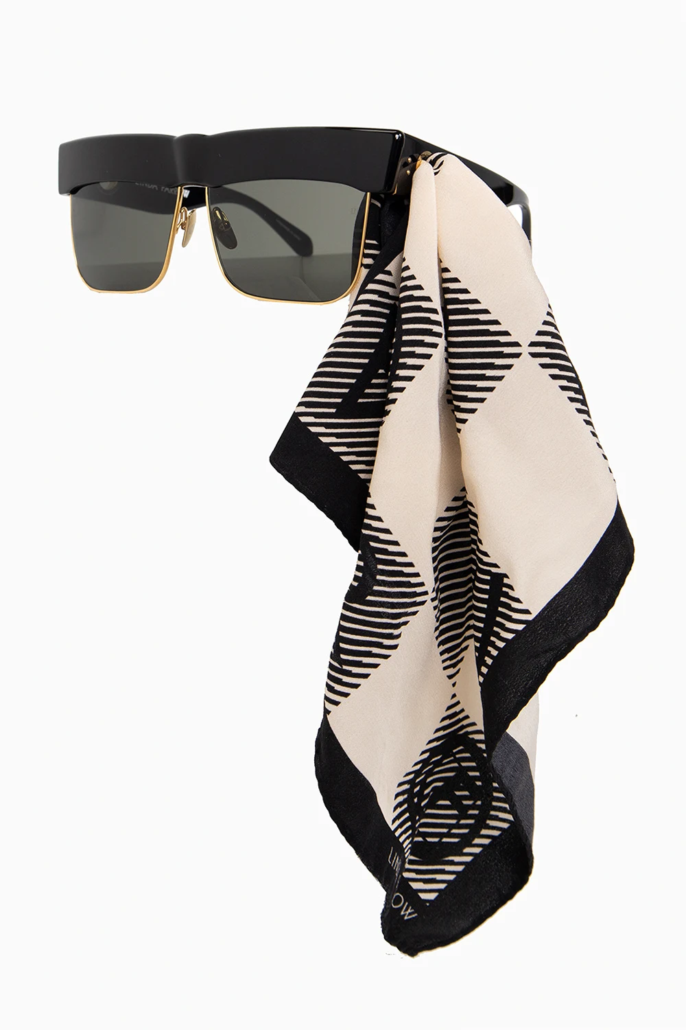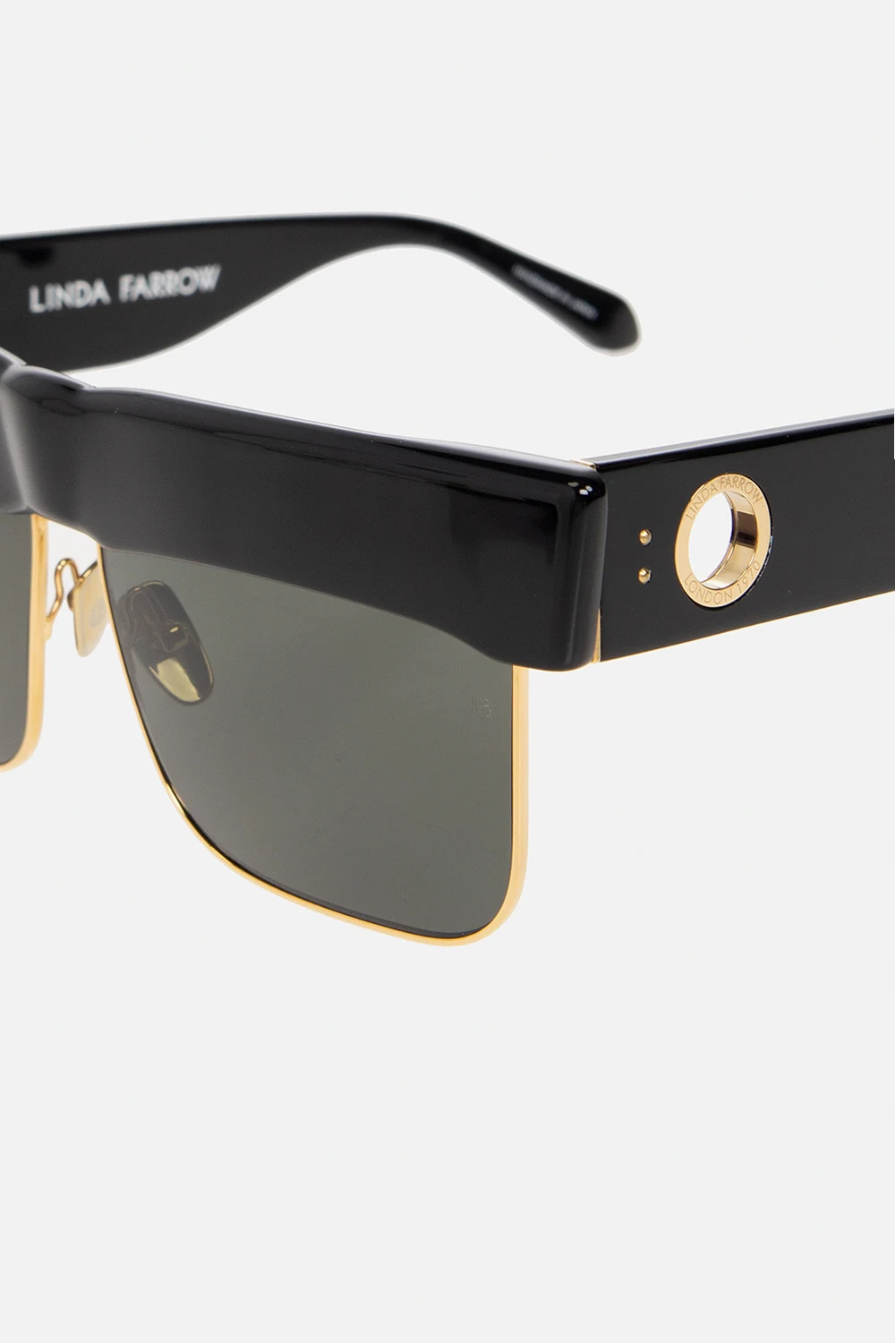 Black, brown and yellow ‘Rosalie’ sunglasses from Linda Farrow. This pair is complete with a metal logo-engraved eyelet in gold-tone and grey lenses with 100% UV protection. Comes with a case. Handcrafted in Japan.